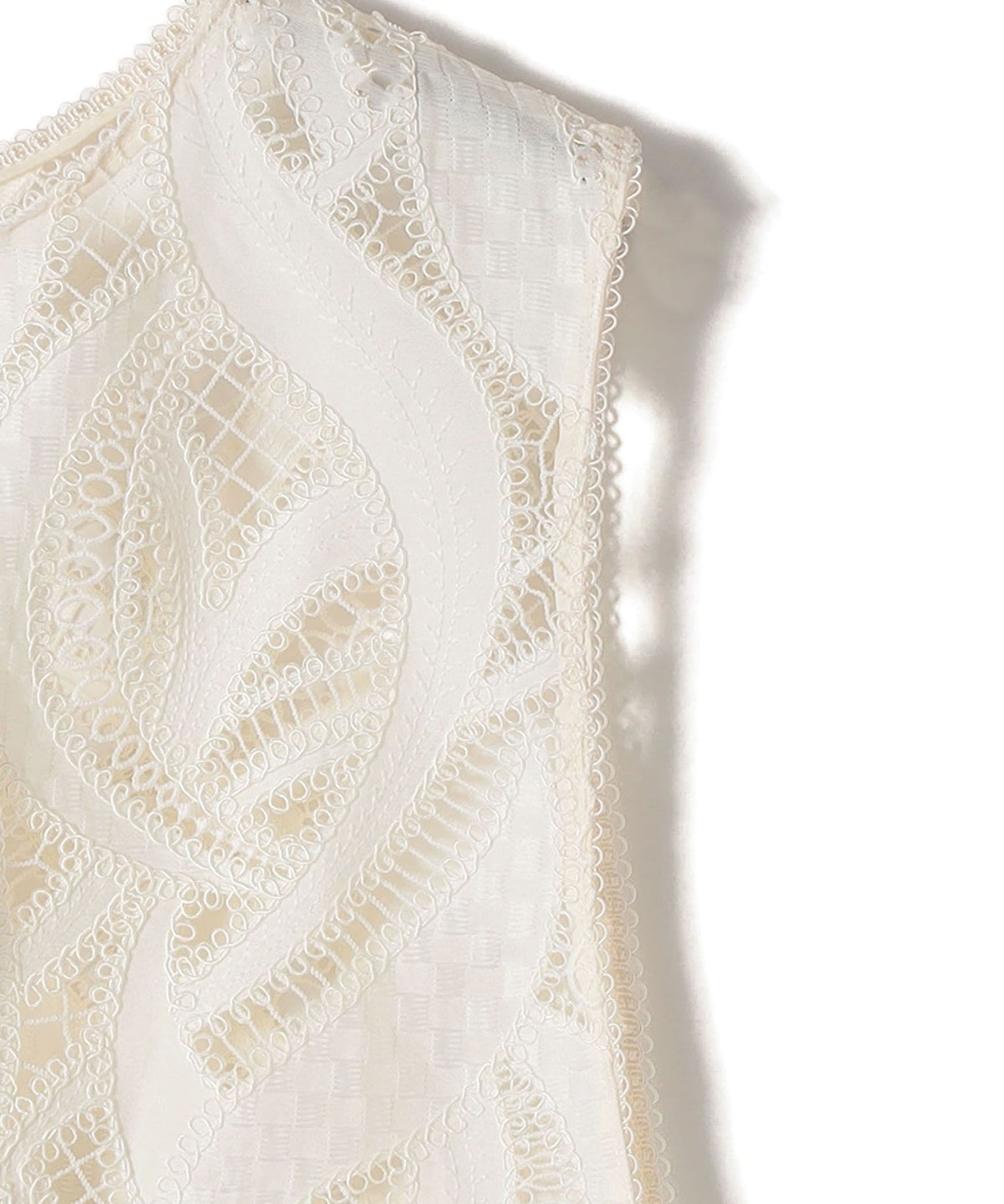 《予約》〈手洗い可能〉刺繍 スカラップ レース ノースリーブ プルオーバー