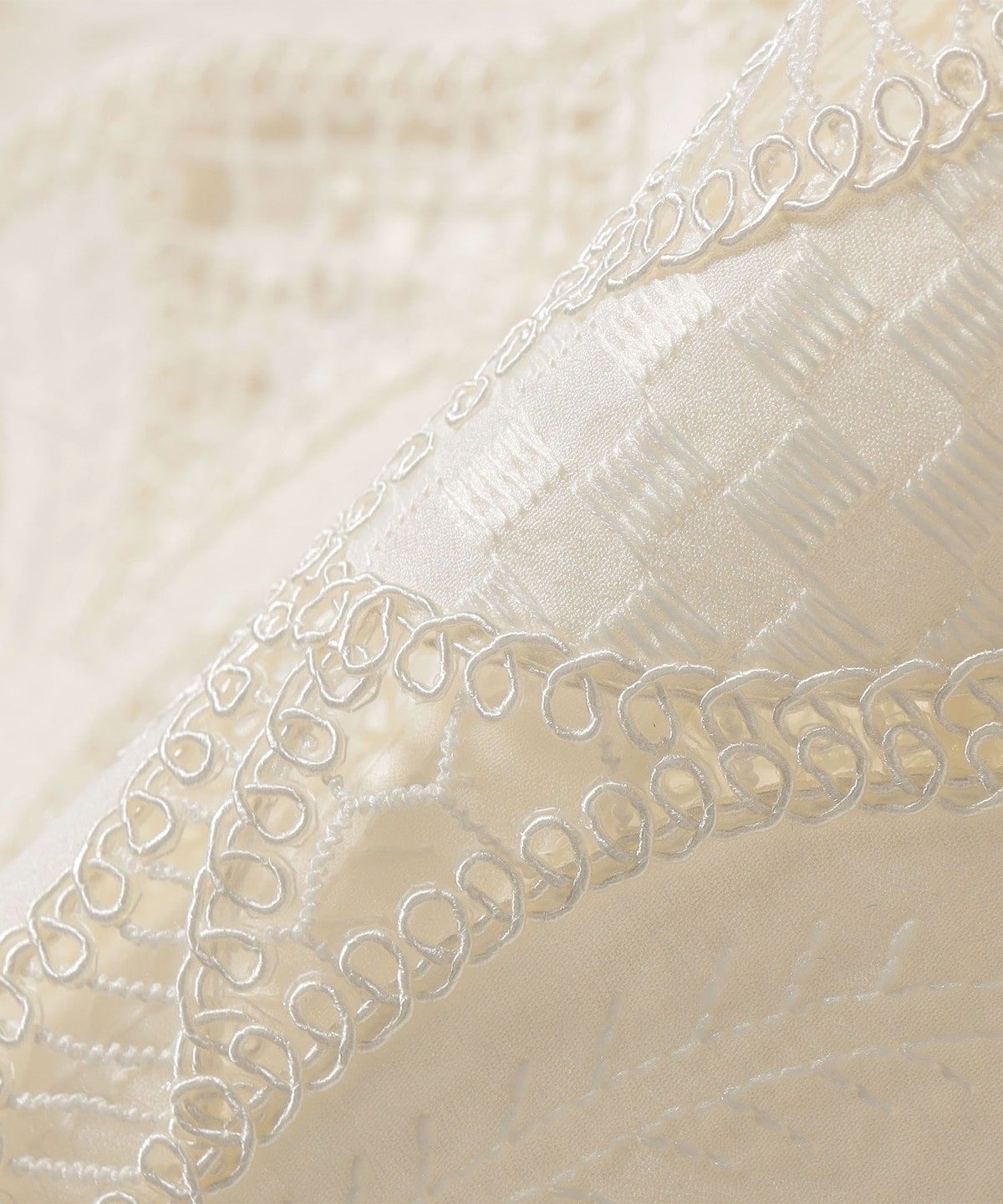 素材:基布: ポリエステル100%, 刺繍糸: ポリエステル100%, 別布: ポリエステル80%, コットン20%, レース: レーヨン100%