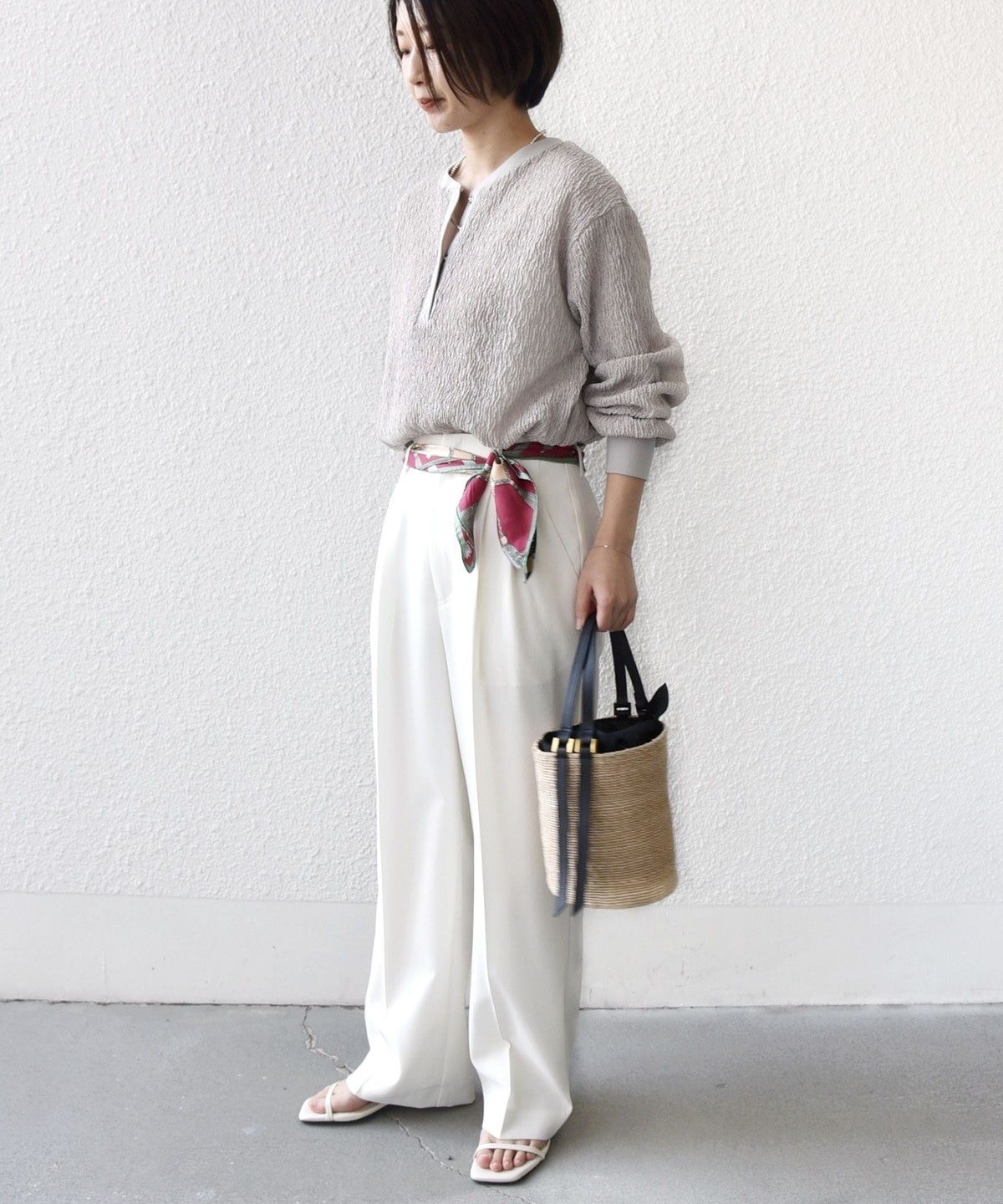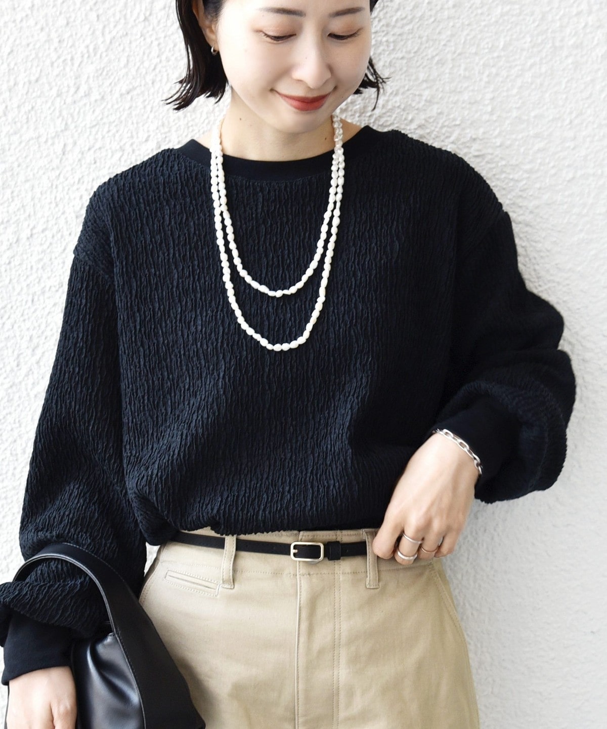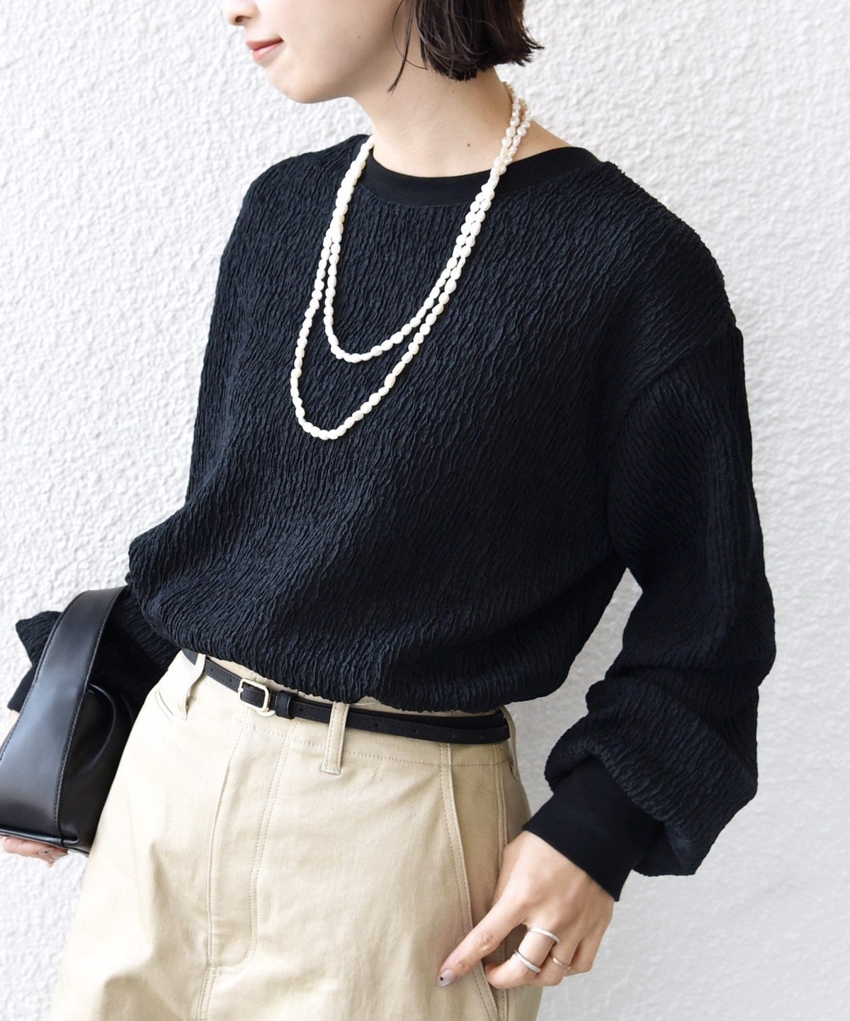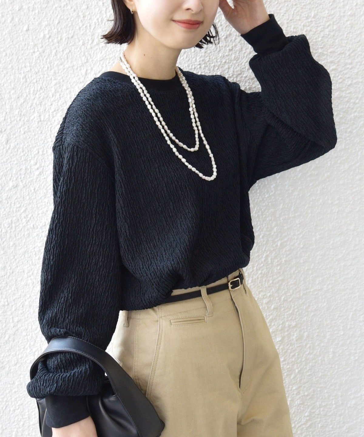 立体感のある素材が柔らかい印象にしてくれる2WAYプルオーバー