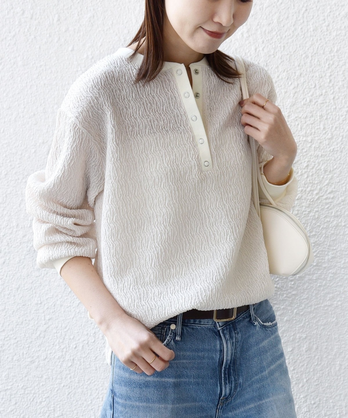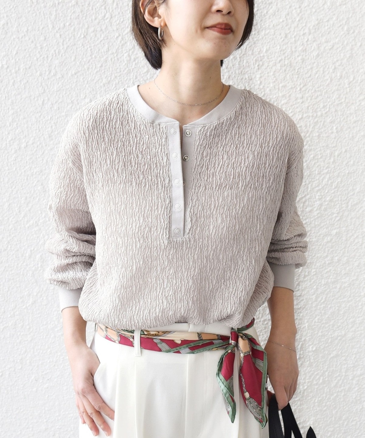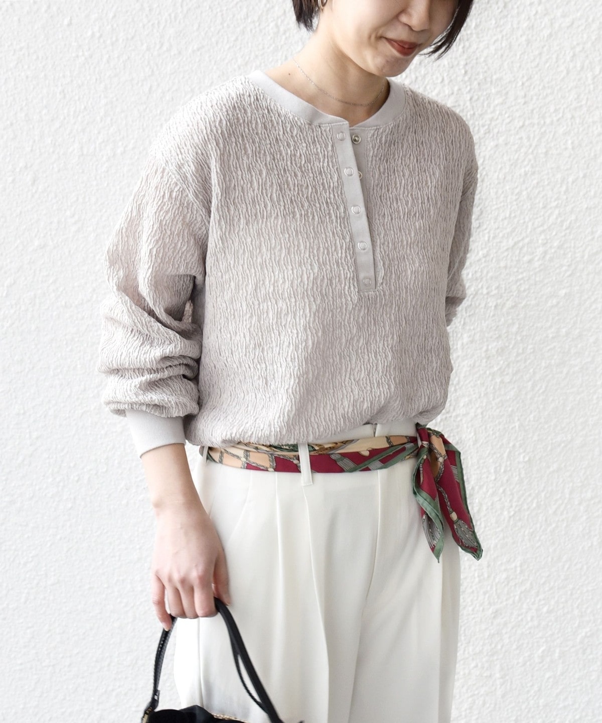 《予約》【WEB限定】〈手洗い可能〉ウェーブ クレープ ヘンリー 2WAY プルオーバー