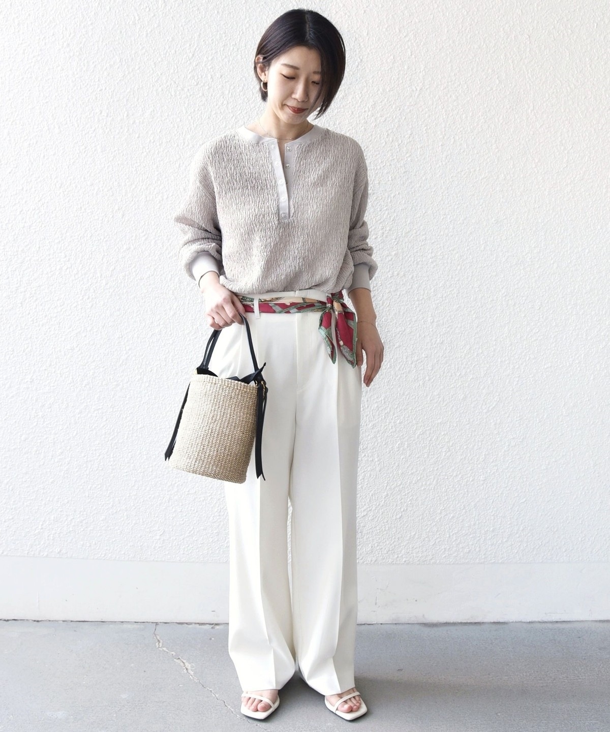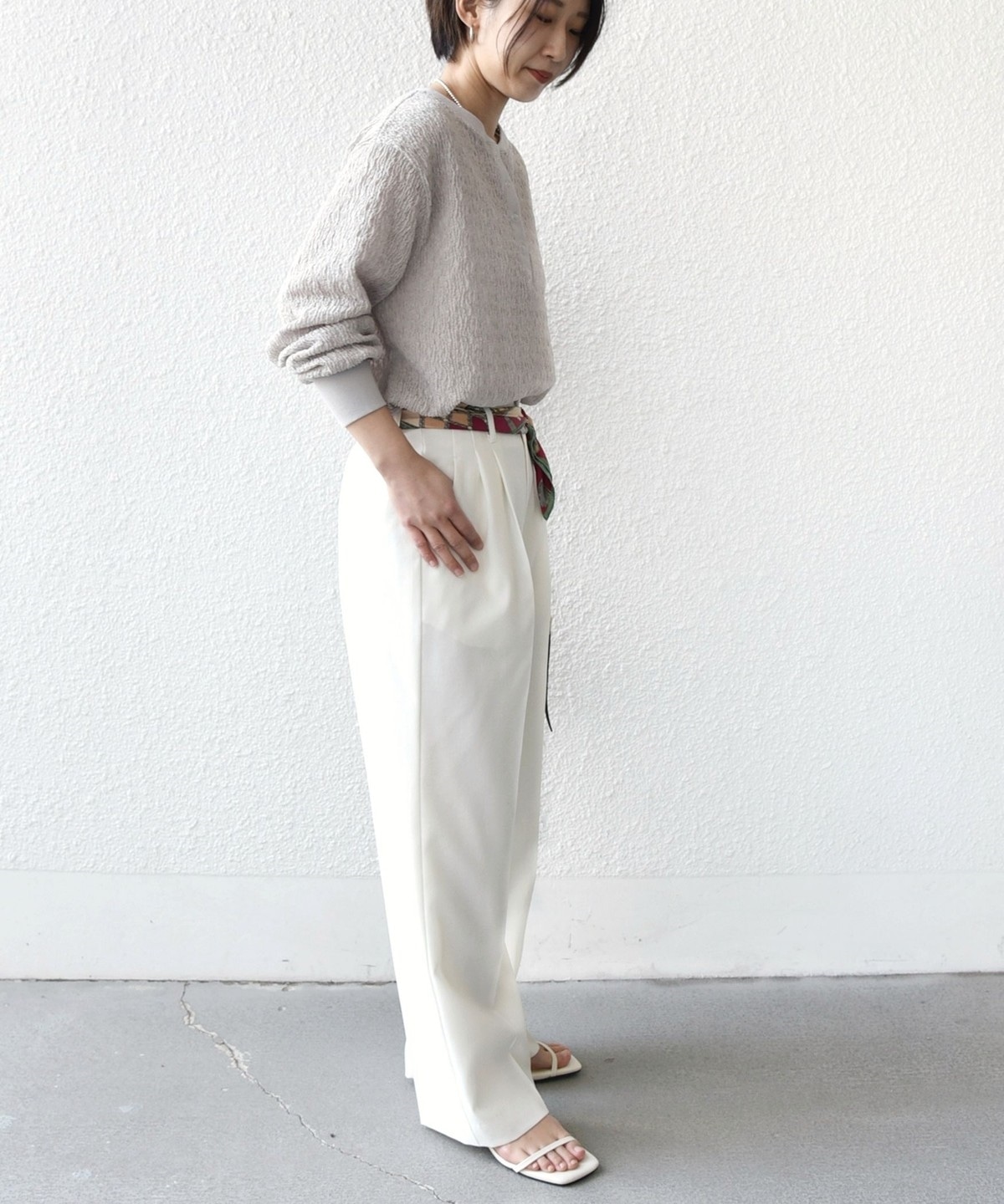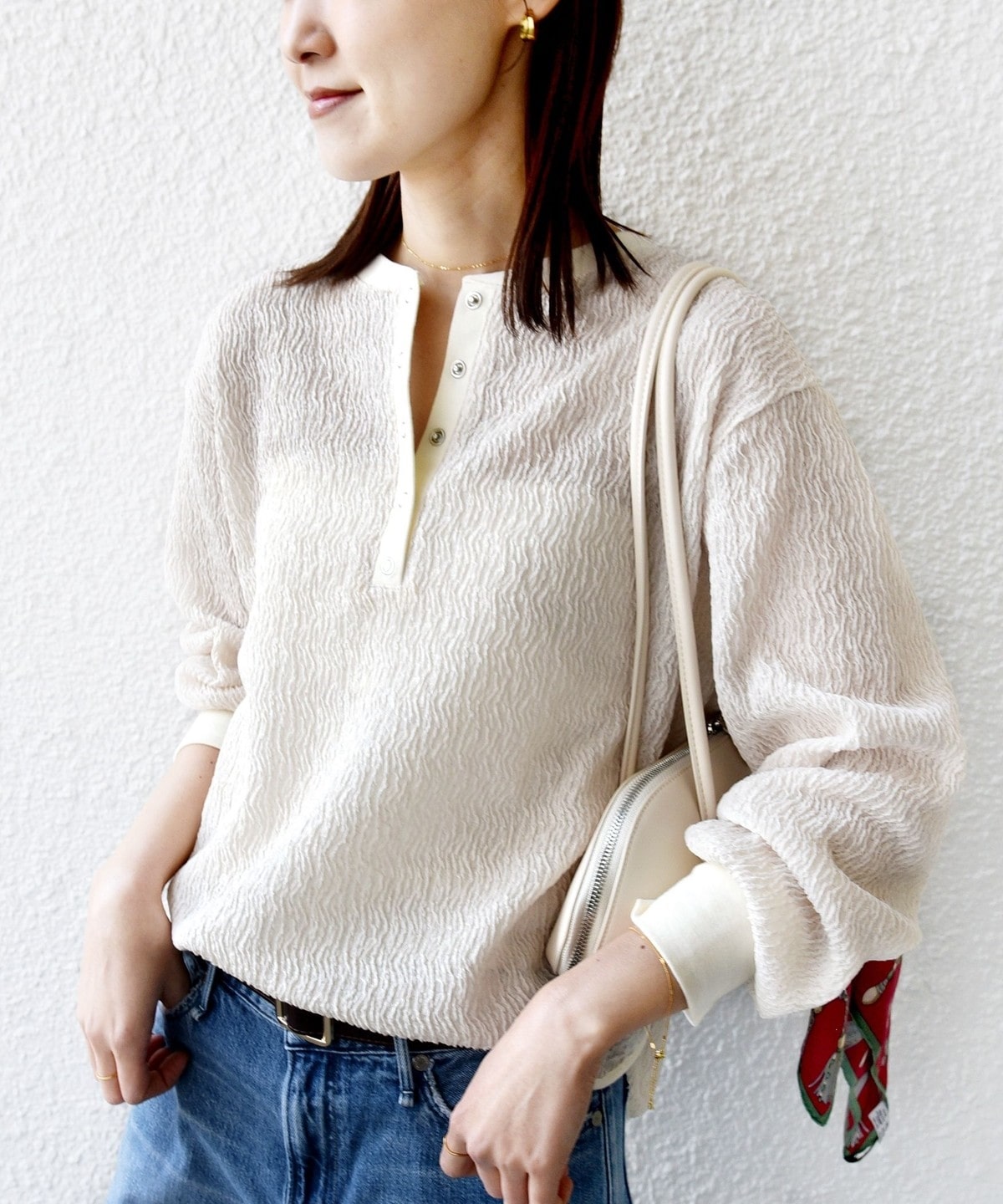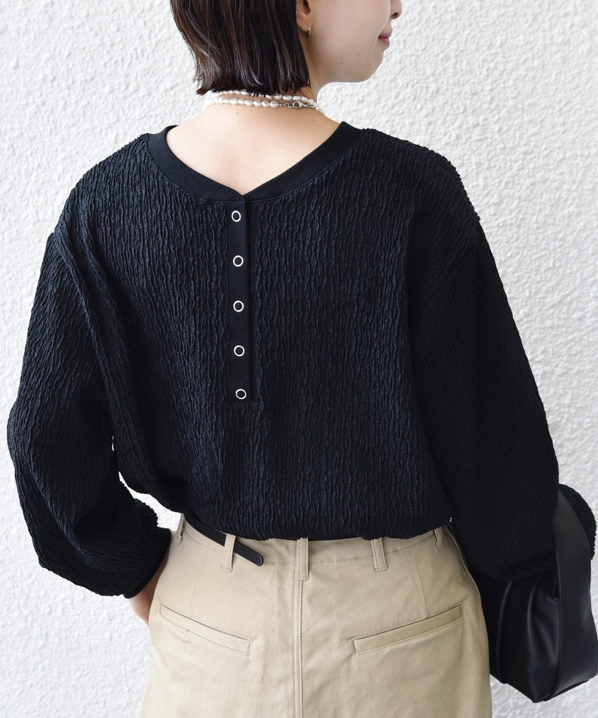 《予約》【WEB限定】〈手洗い可能〉ウェーブ クレープ ヘンリー 2WAY プルオーバー
