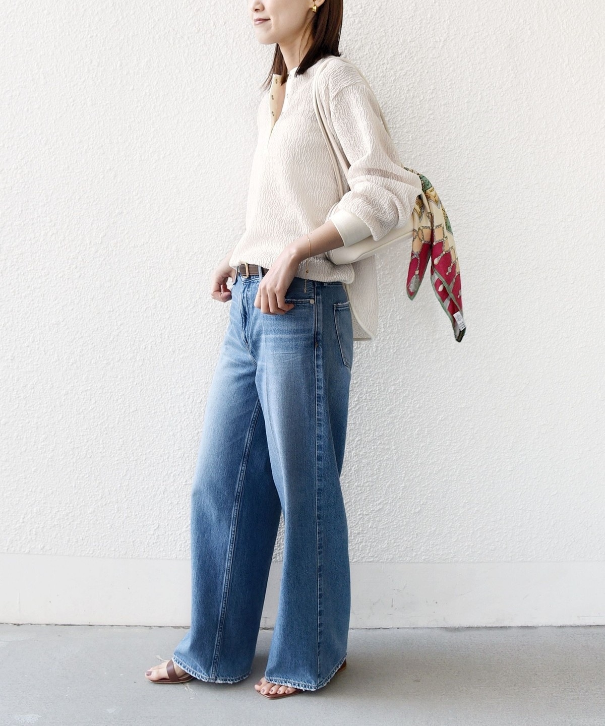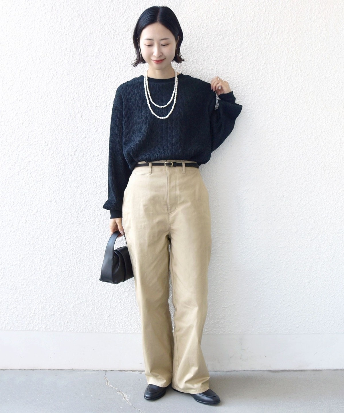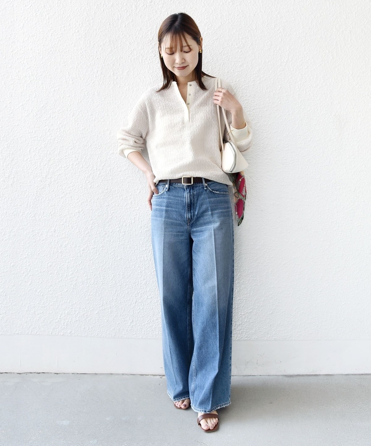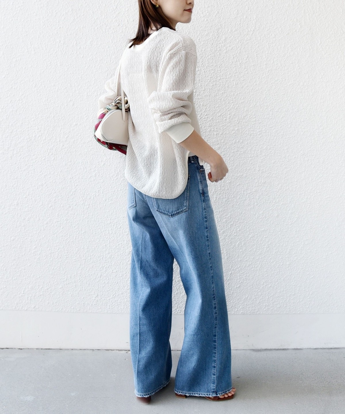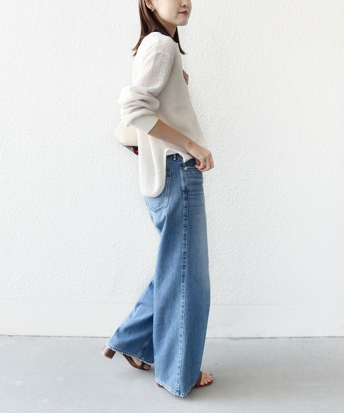 ゆったりとしたシルエットの袖リブ、裾はラウンドで、シンプルなボトムにさらっと着るだけで決まります。