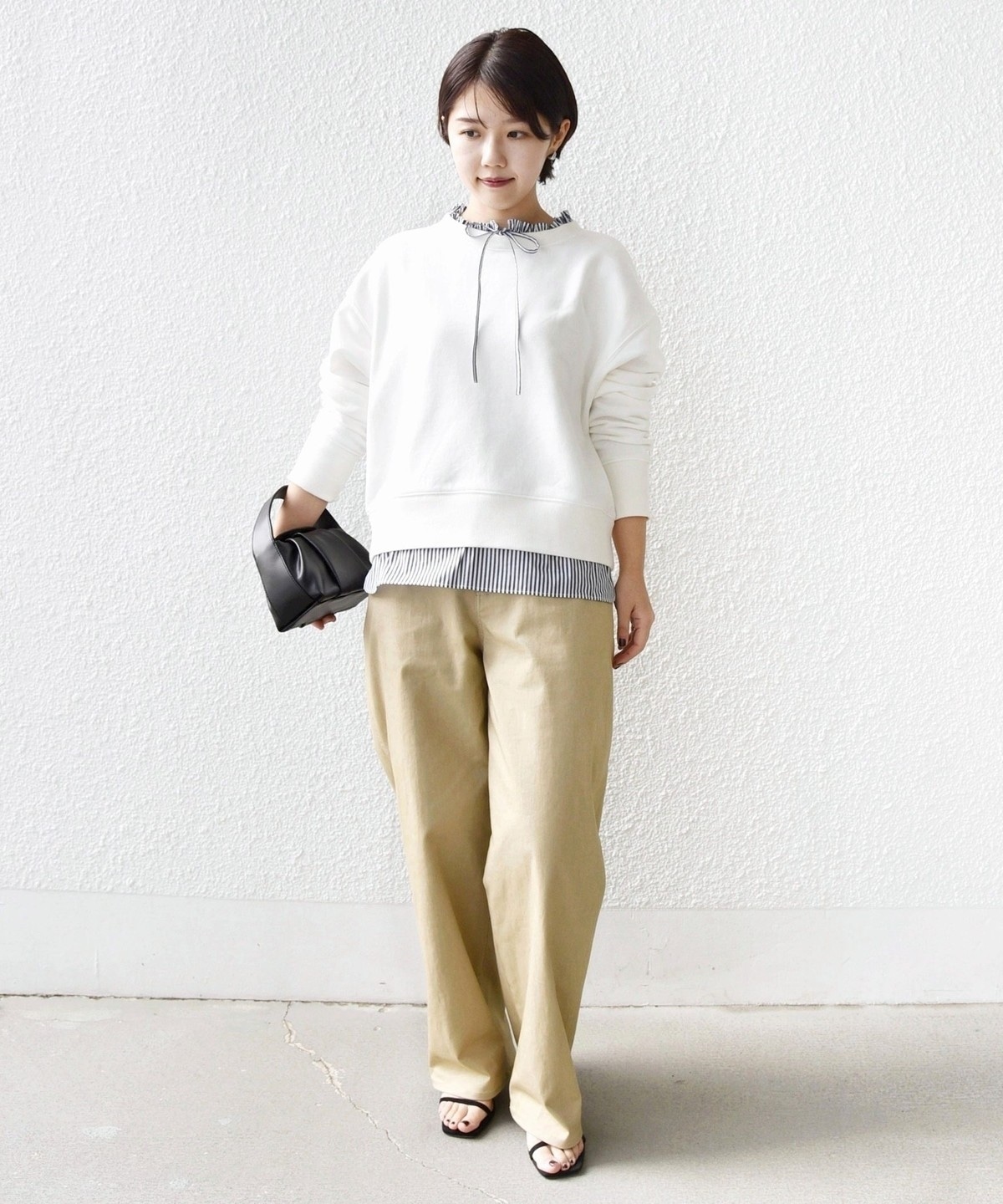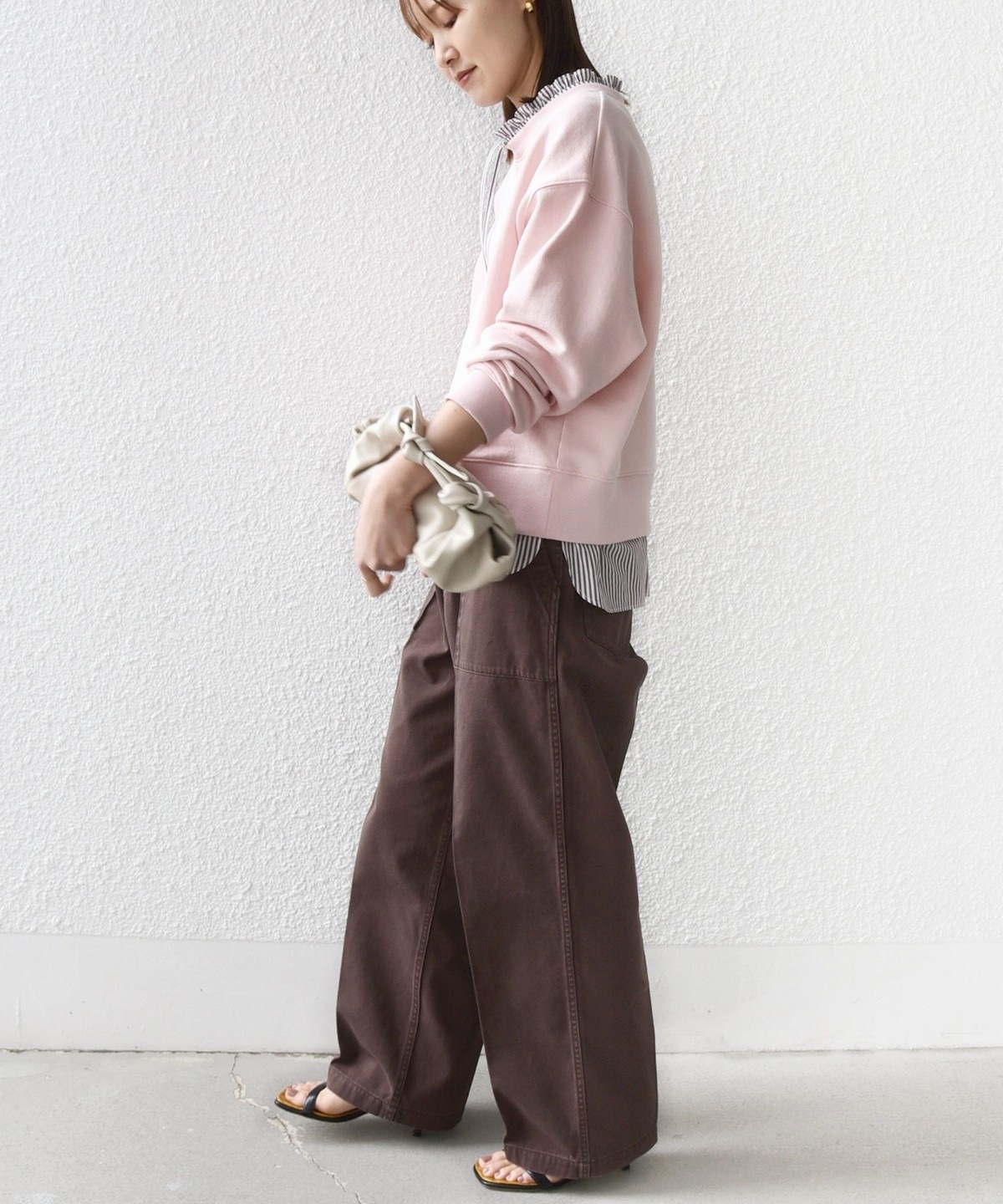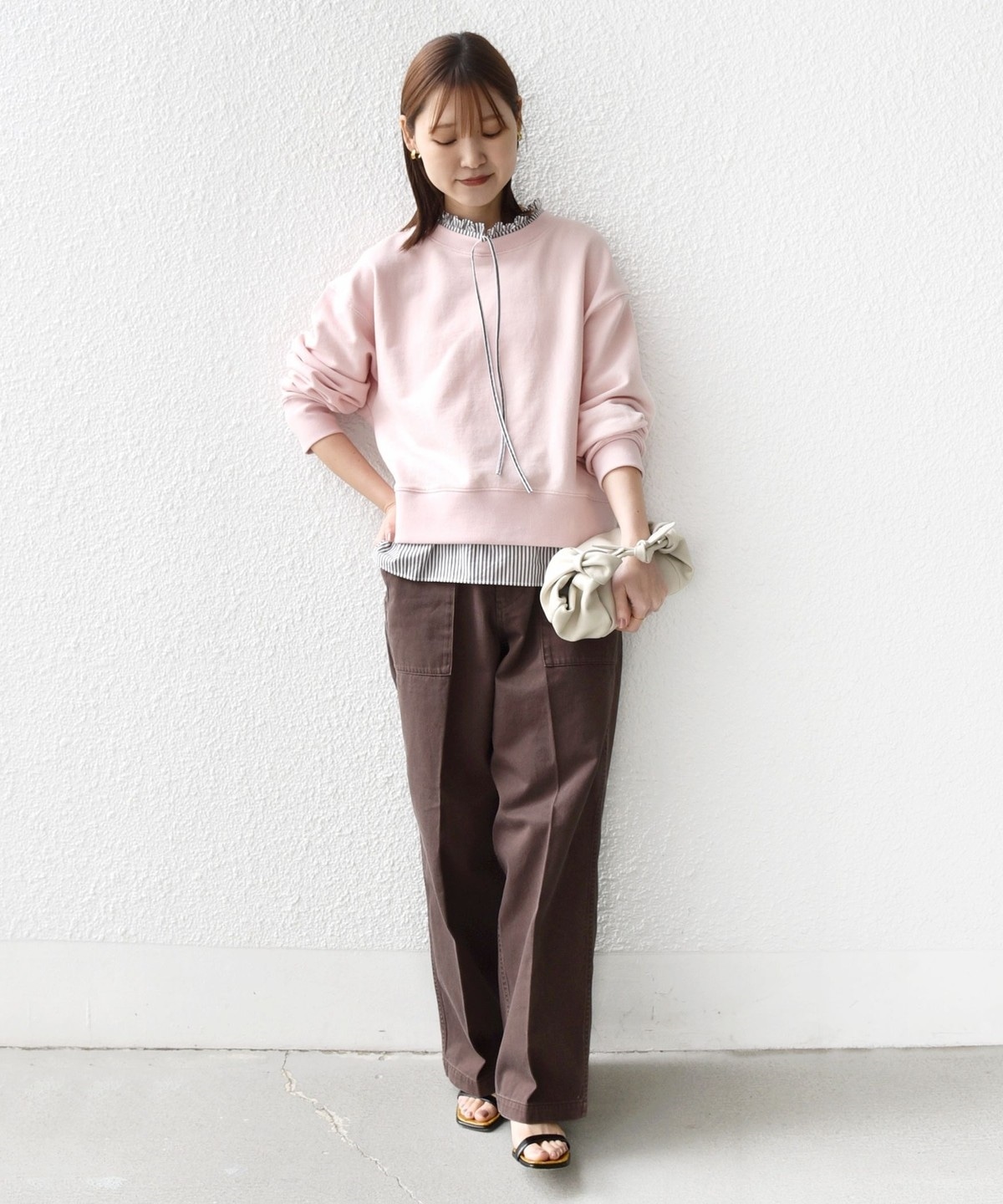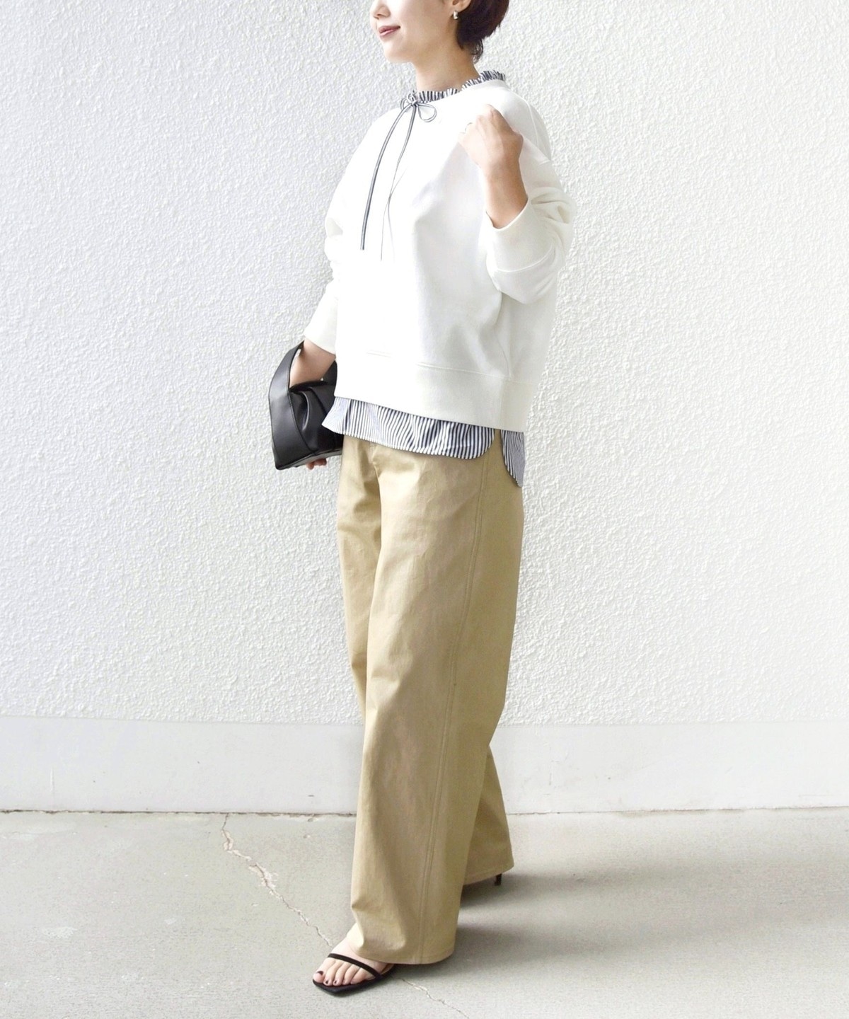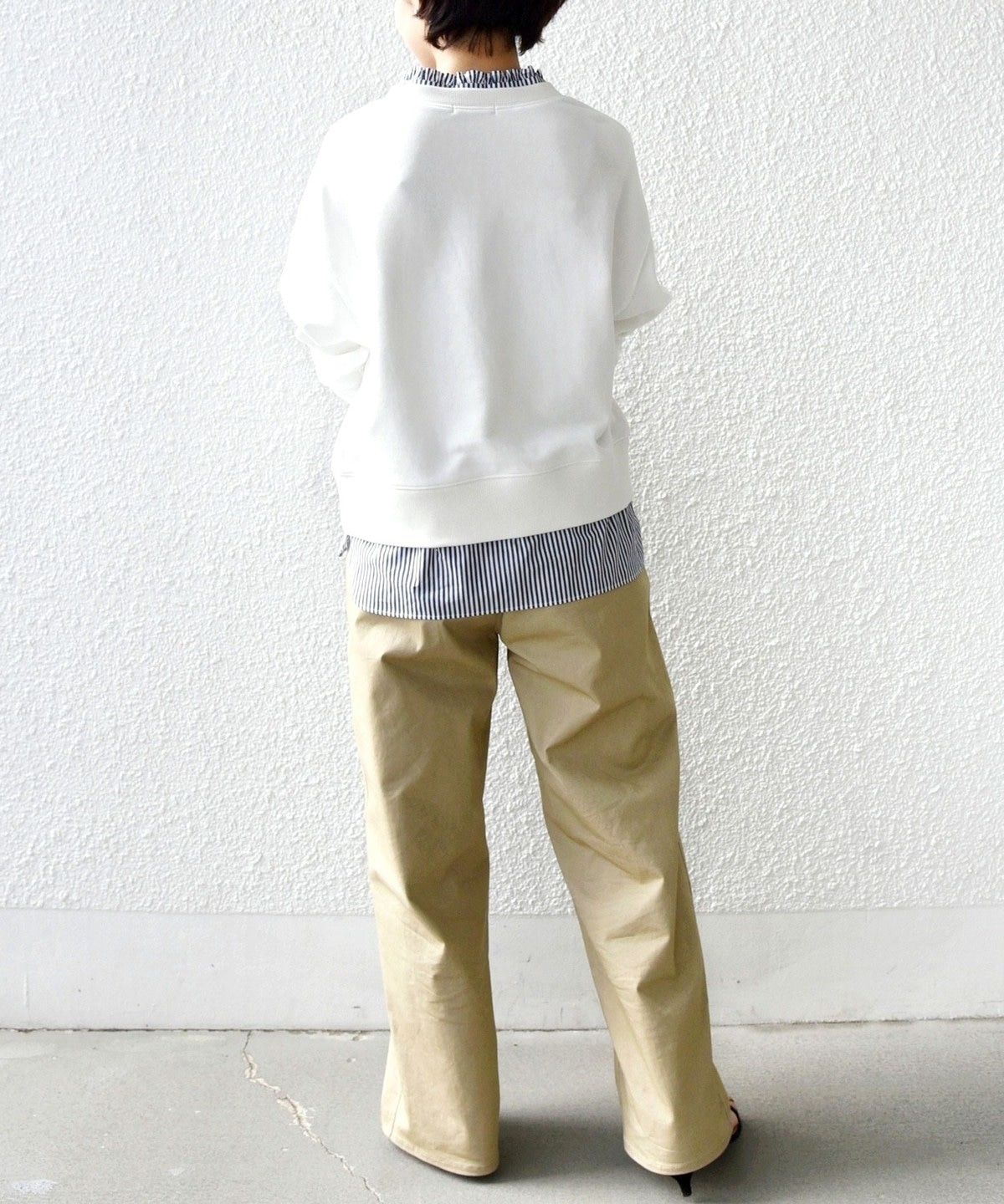デニムやチノパン、カーゴパンツなどカジュアルなボトムとも相性抜群です。