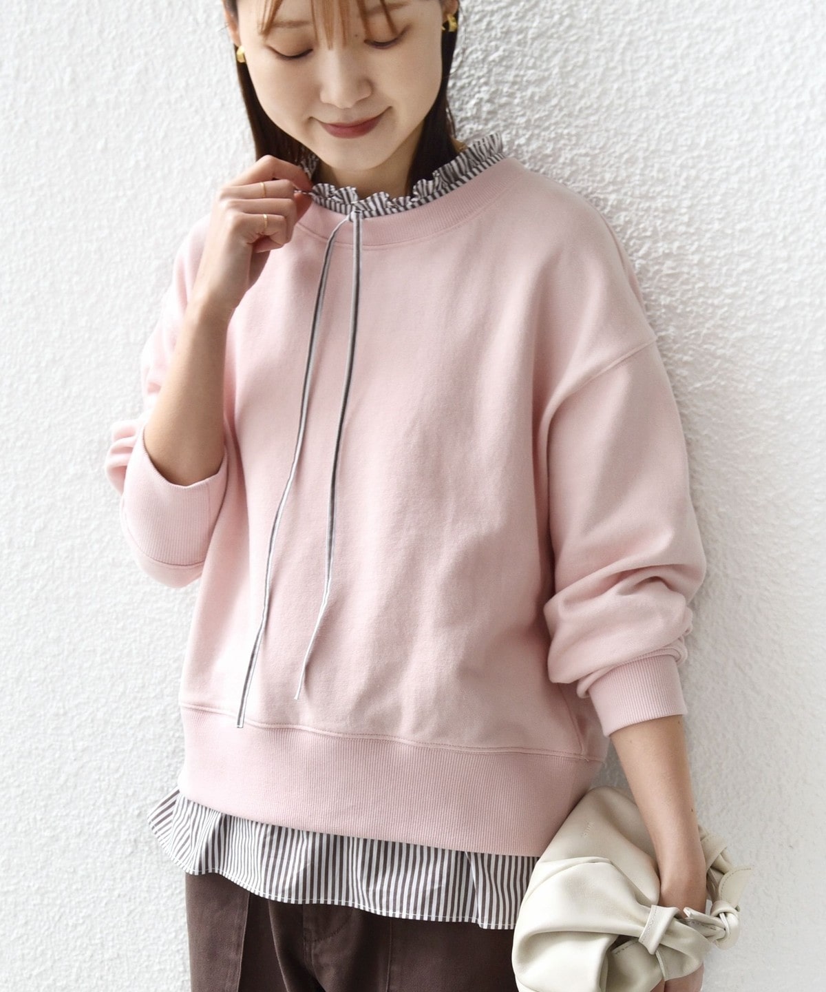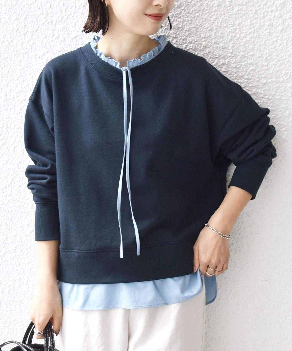 すっきり着こなせるレイヤード風デザインのプルオーバー