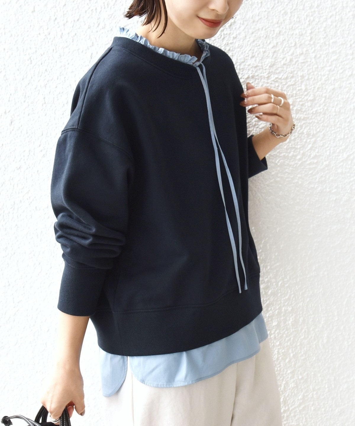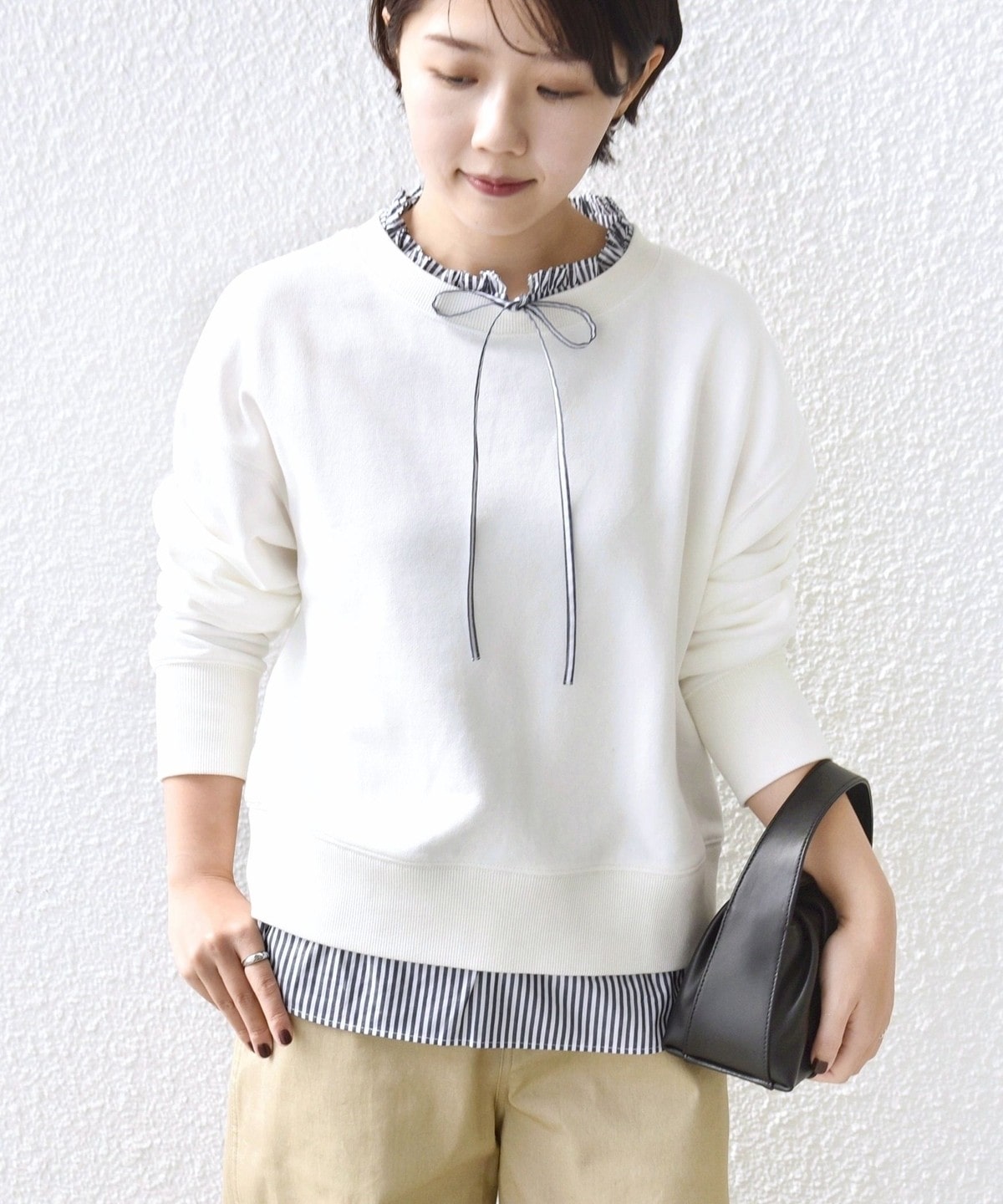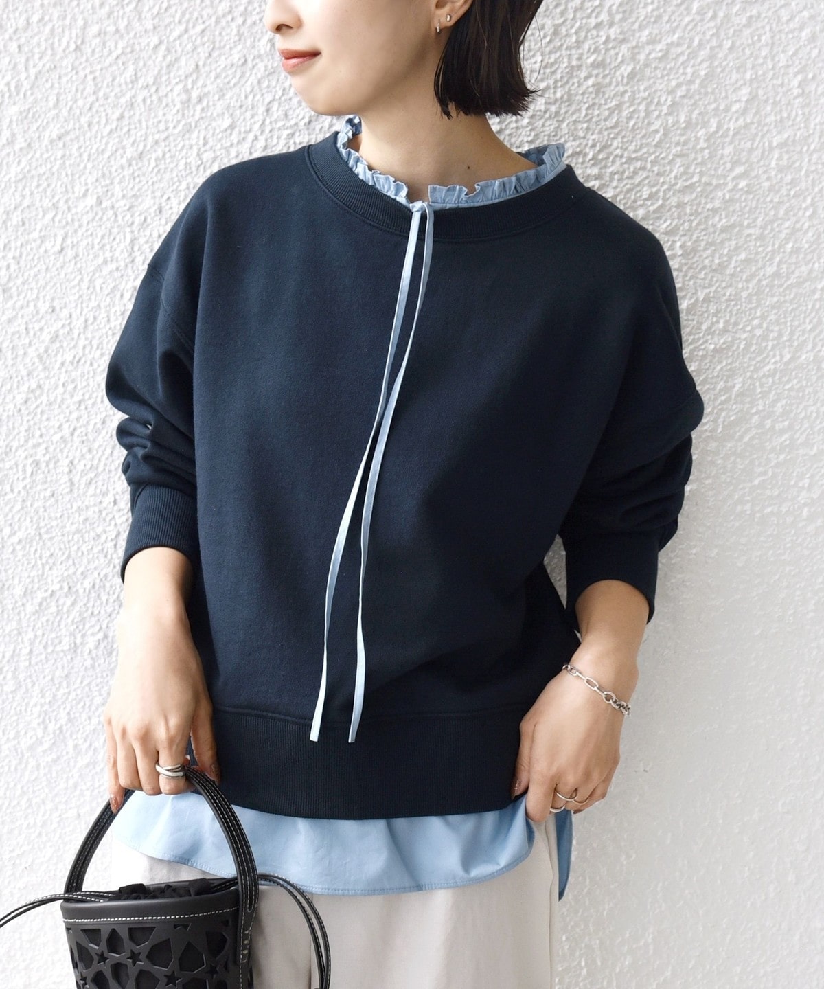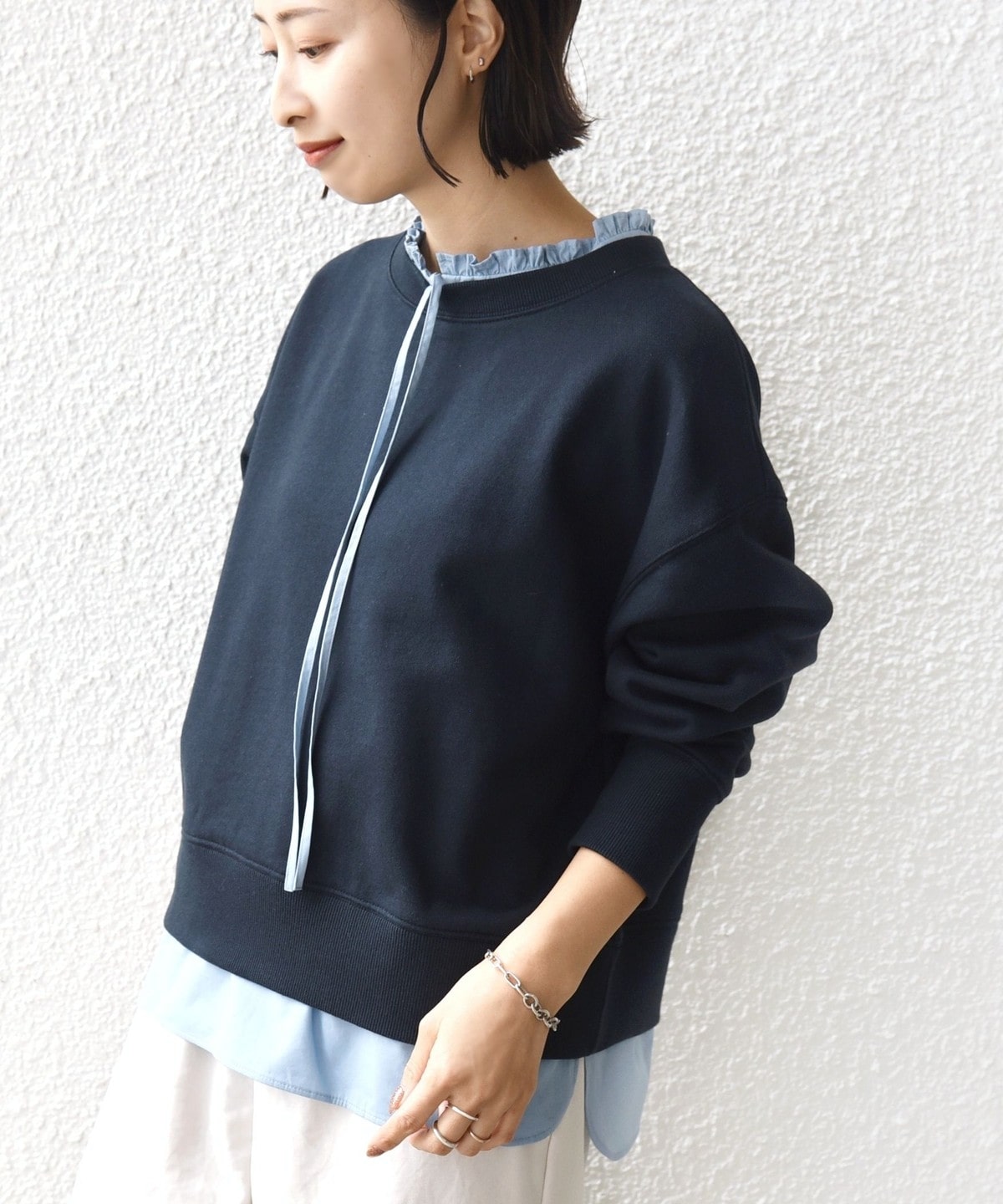 《予約》【WEB限定】〈手洗い可能〉ブラウス コンビ スウェット プルオーバー