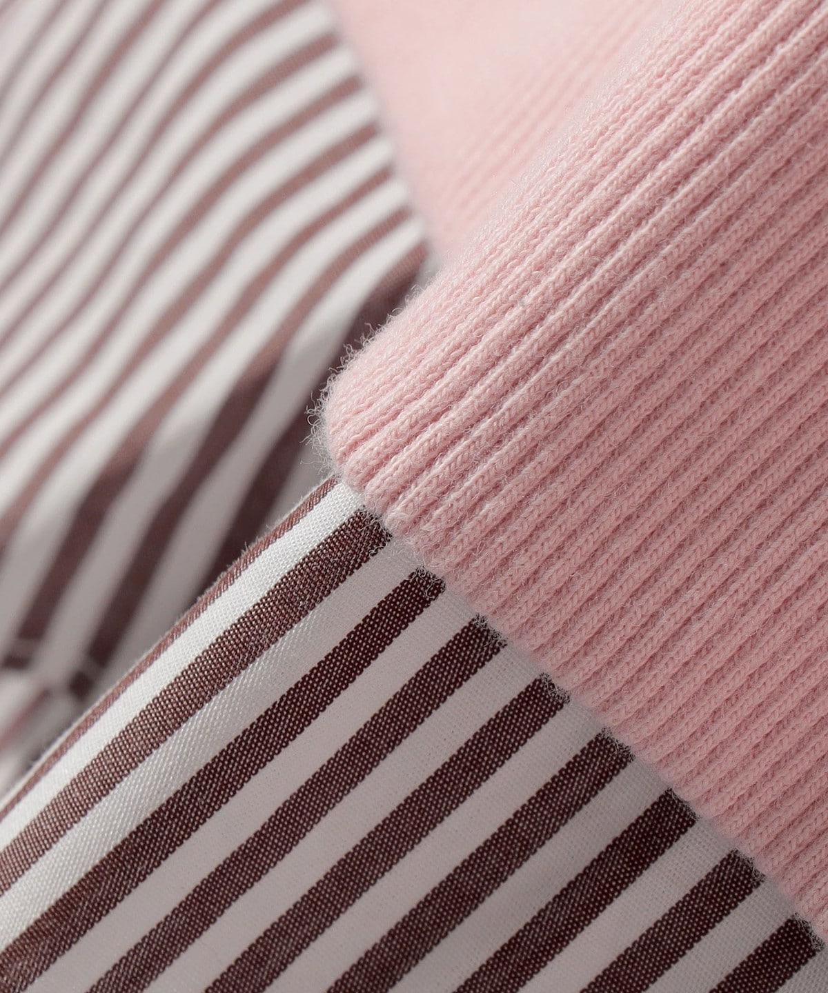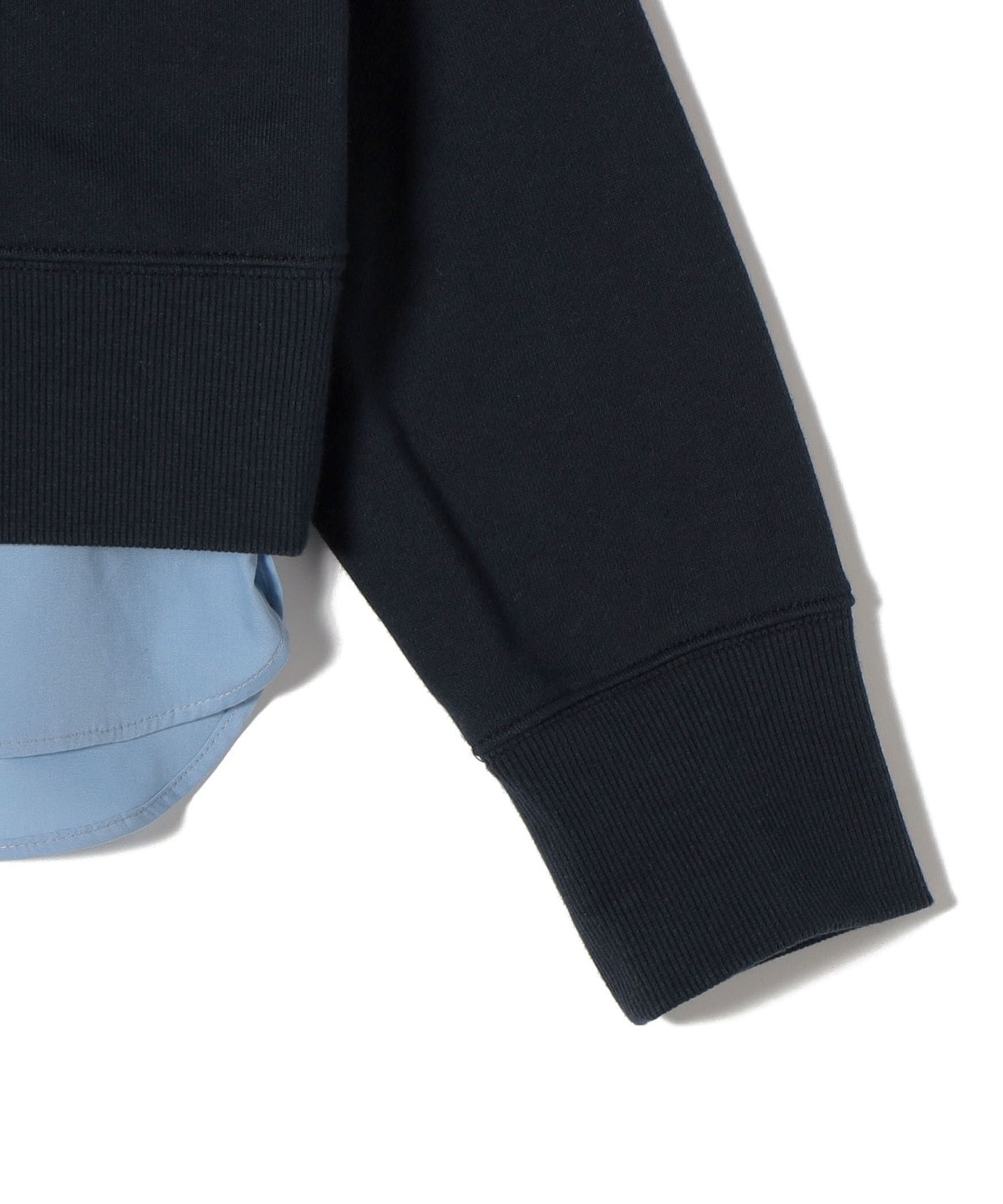 裏毛と布帛素材をドッキングさせたレイヤード風デザインのプルオーバーです。