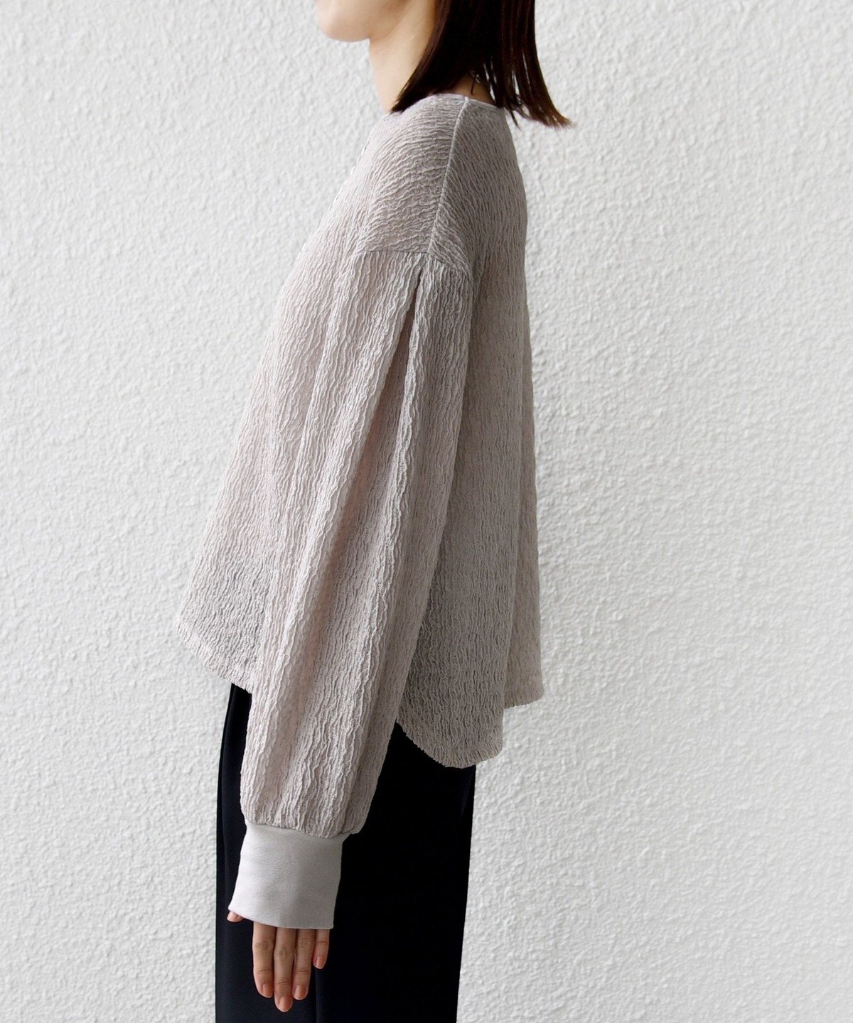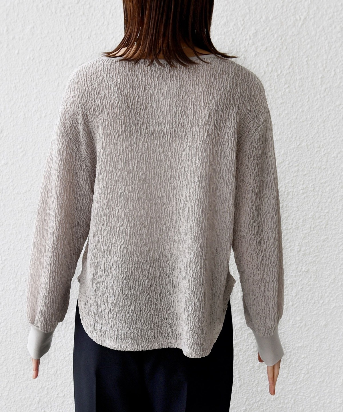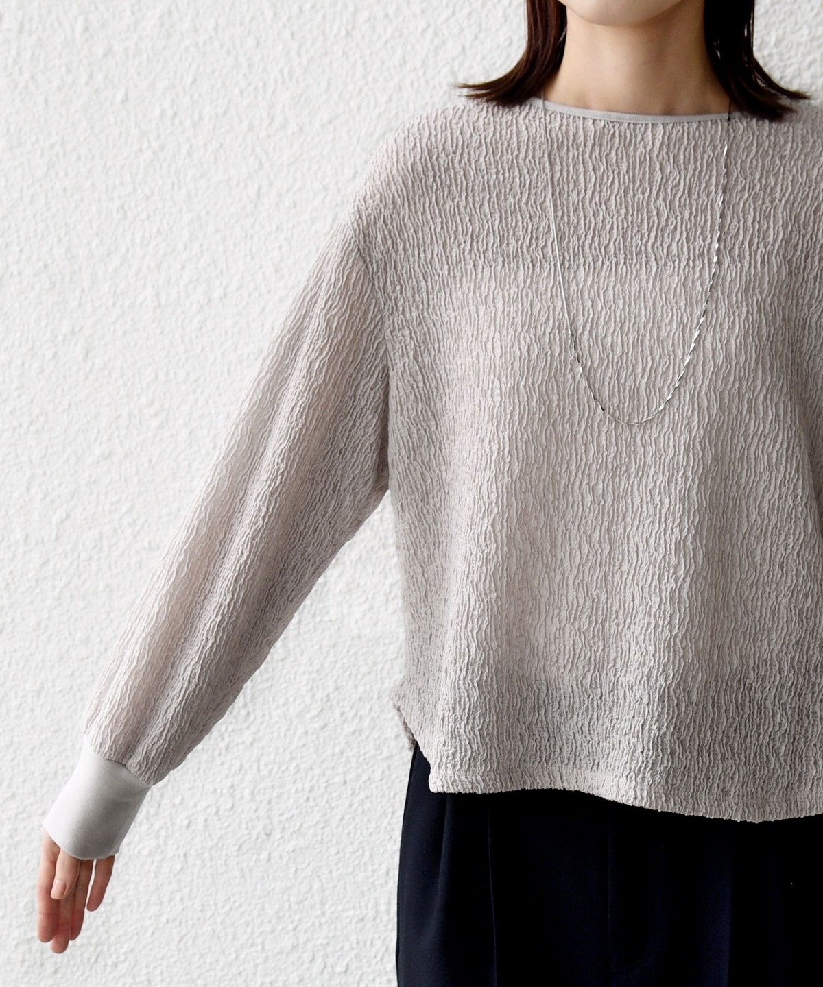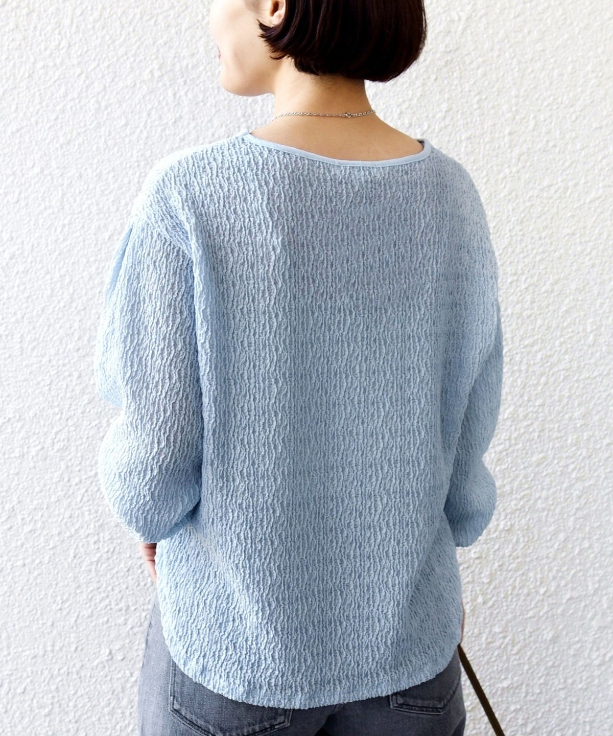 ポコポコとした表面感が魅力のブラウスライクカットソー