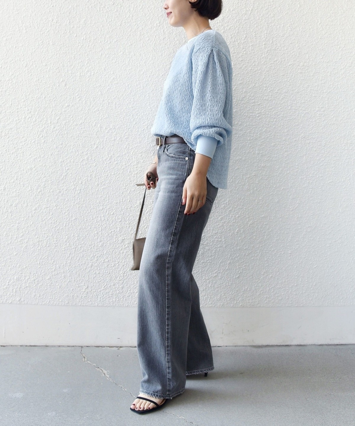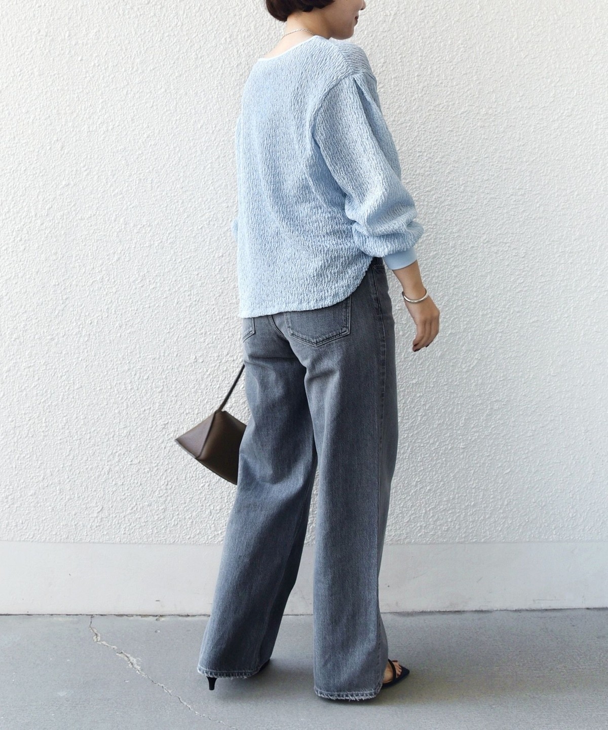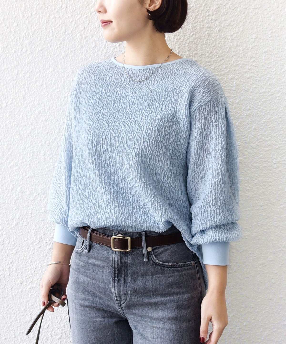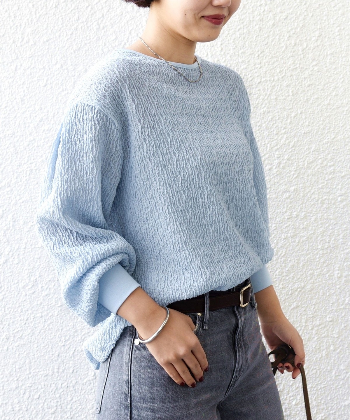 ポコポコとした表面感が魅力のブラウスライクカットソー