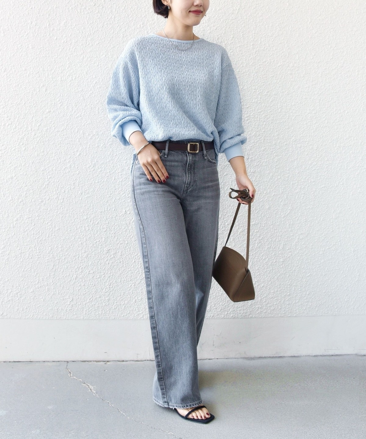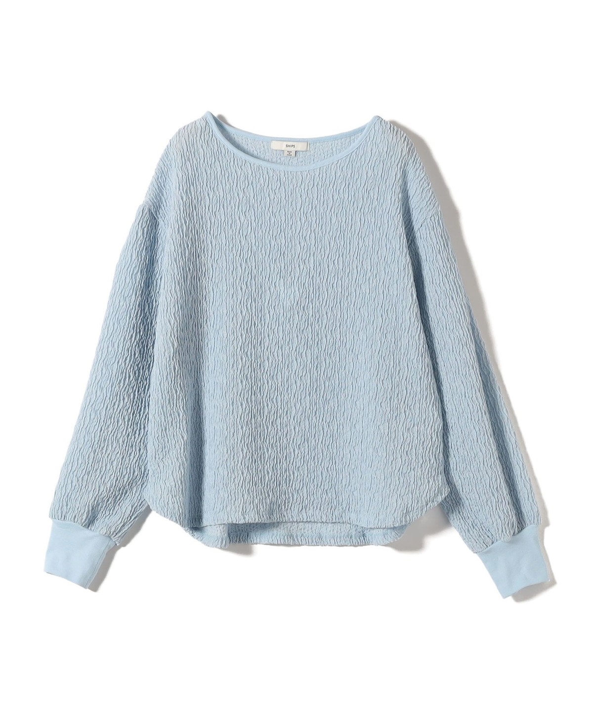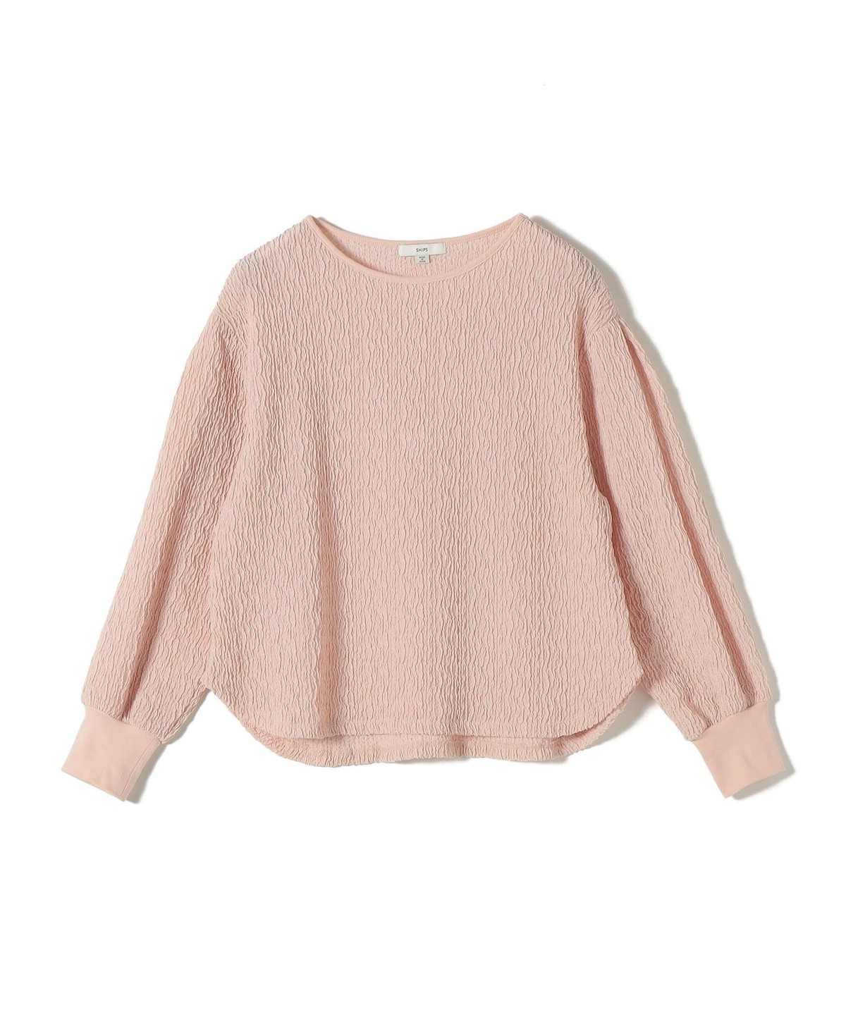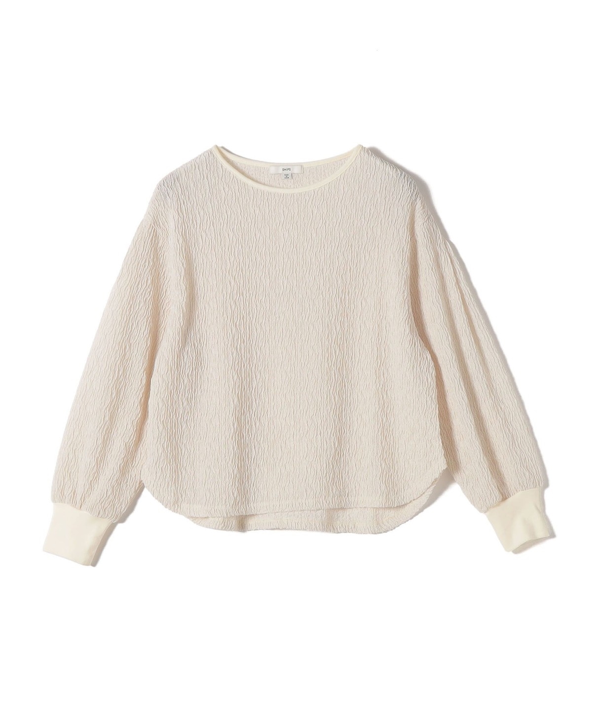 ポコポコとした表面感がかわいく、1枚で着映えするトップスです。