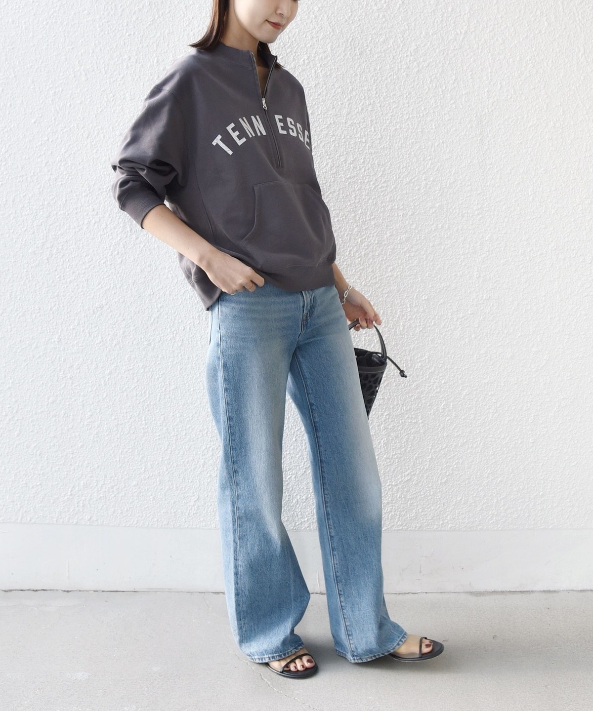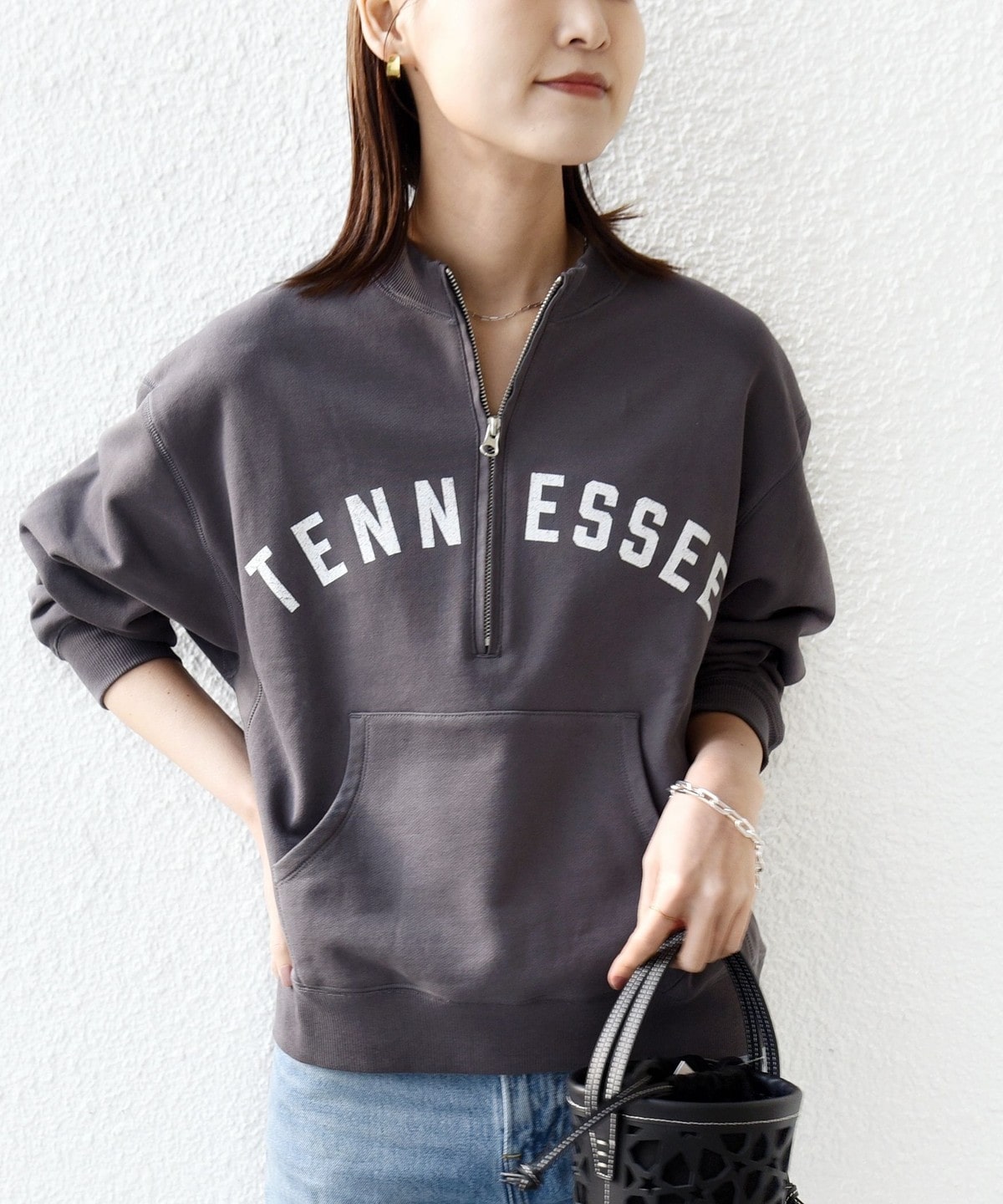 レイヤードを楽しめるハーフジップスウェット