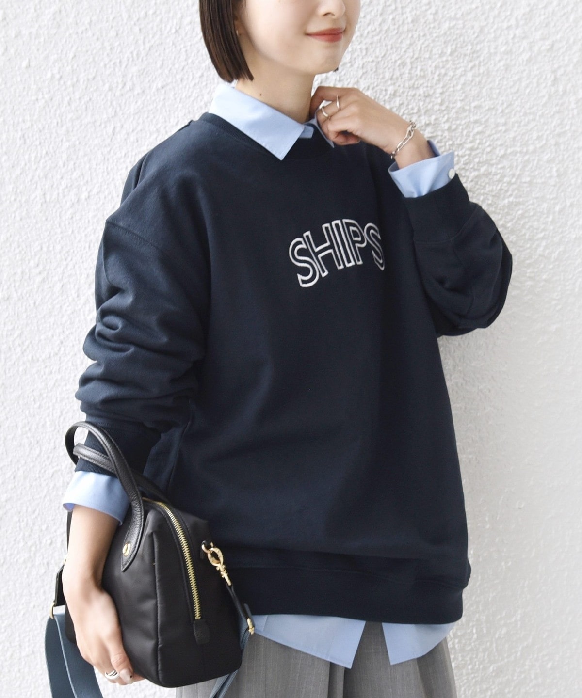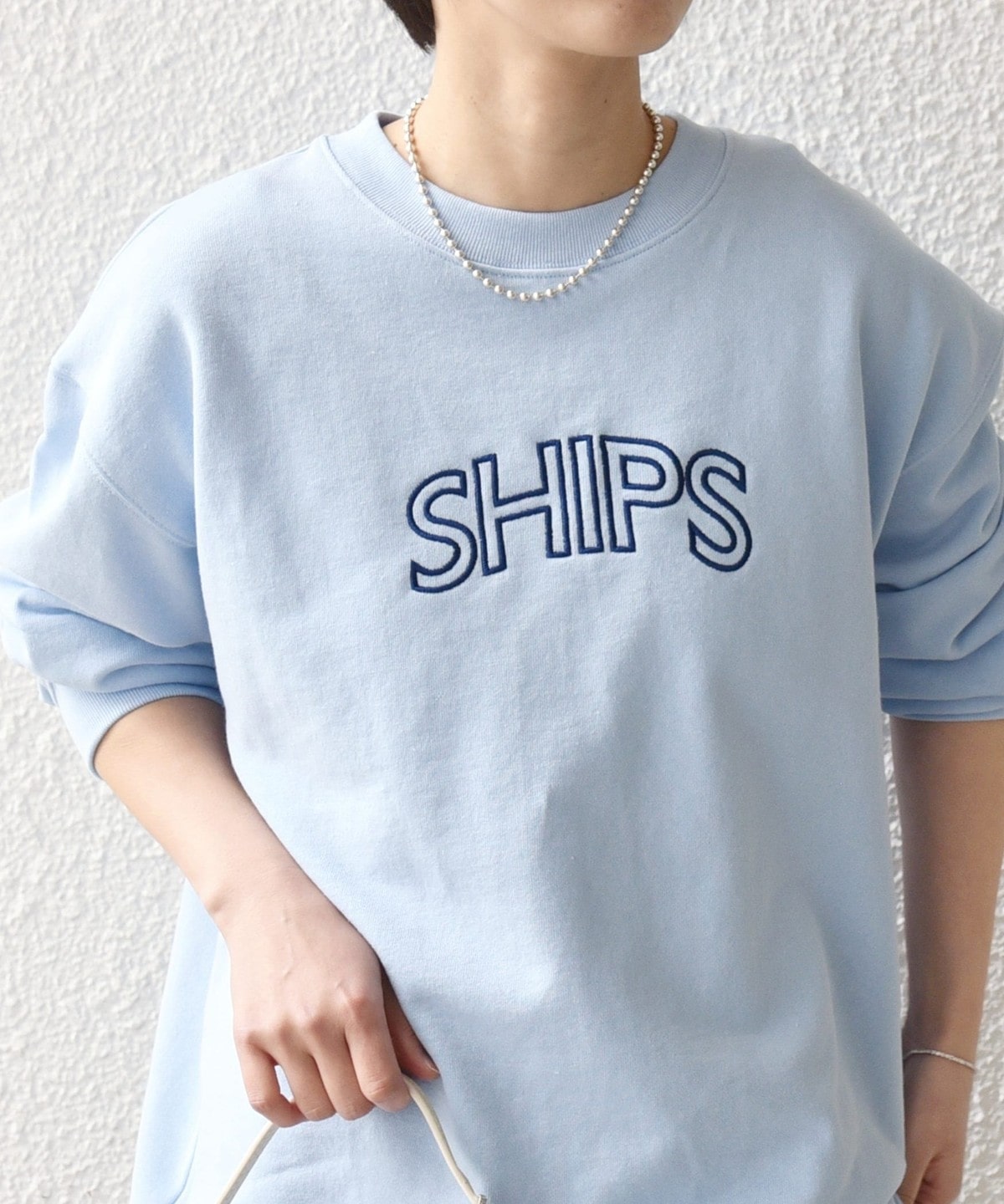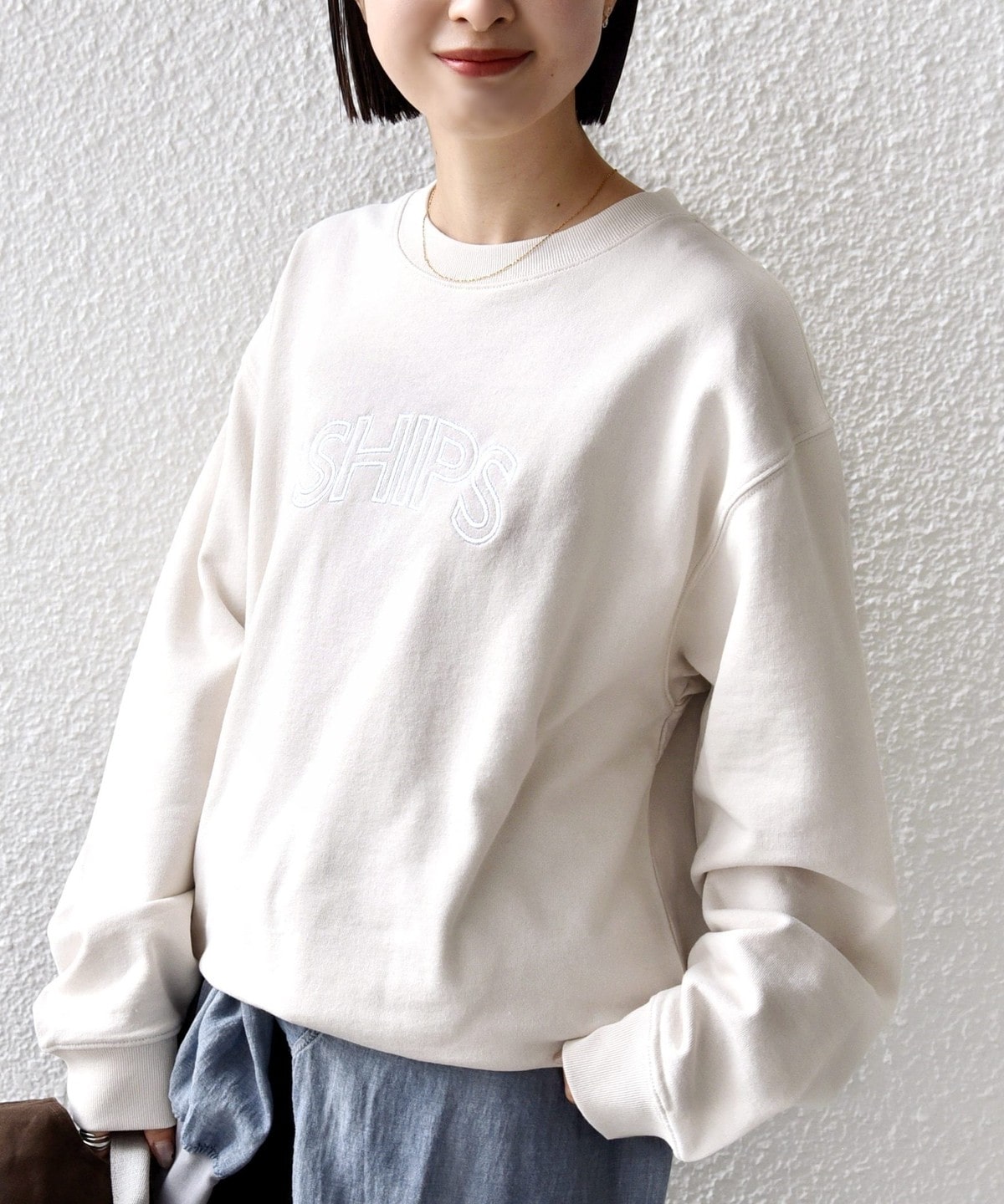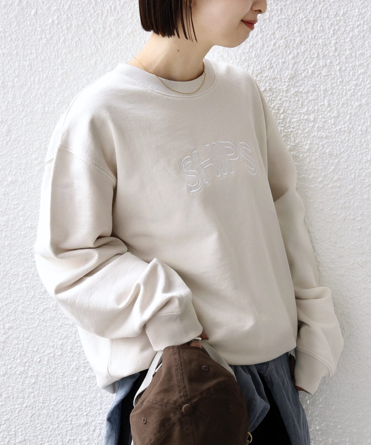 SHIPS定番のラウンドロゴを刺繍であしらったスウェットプルオーバー。