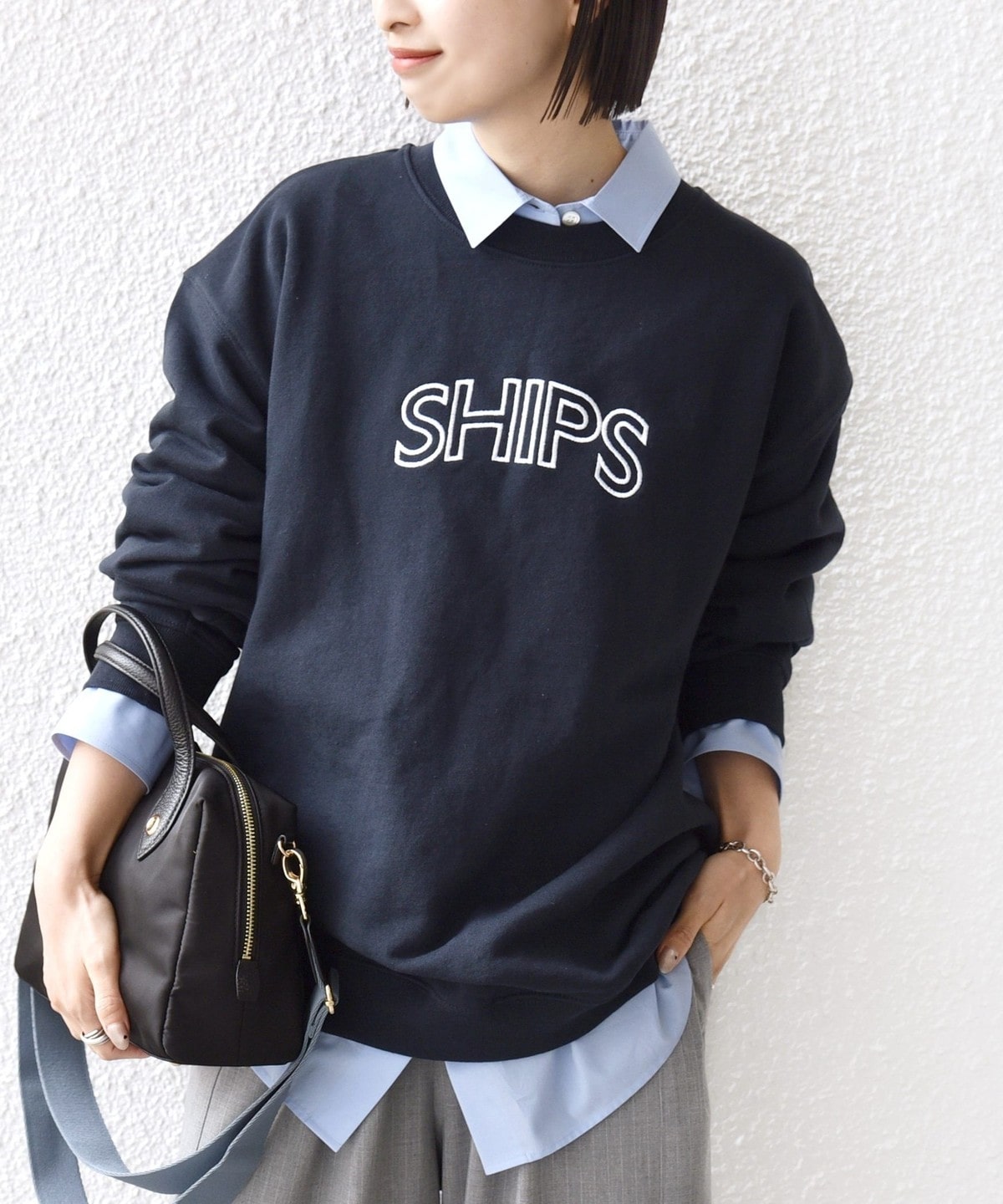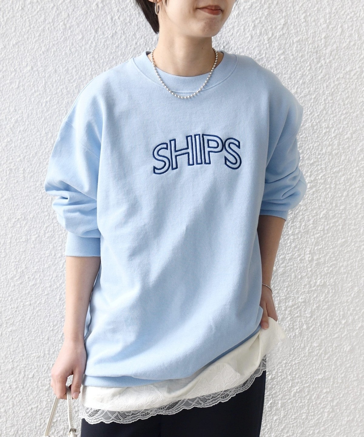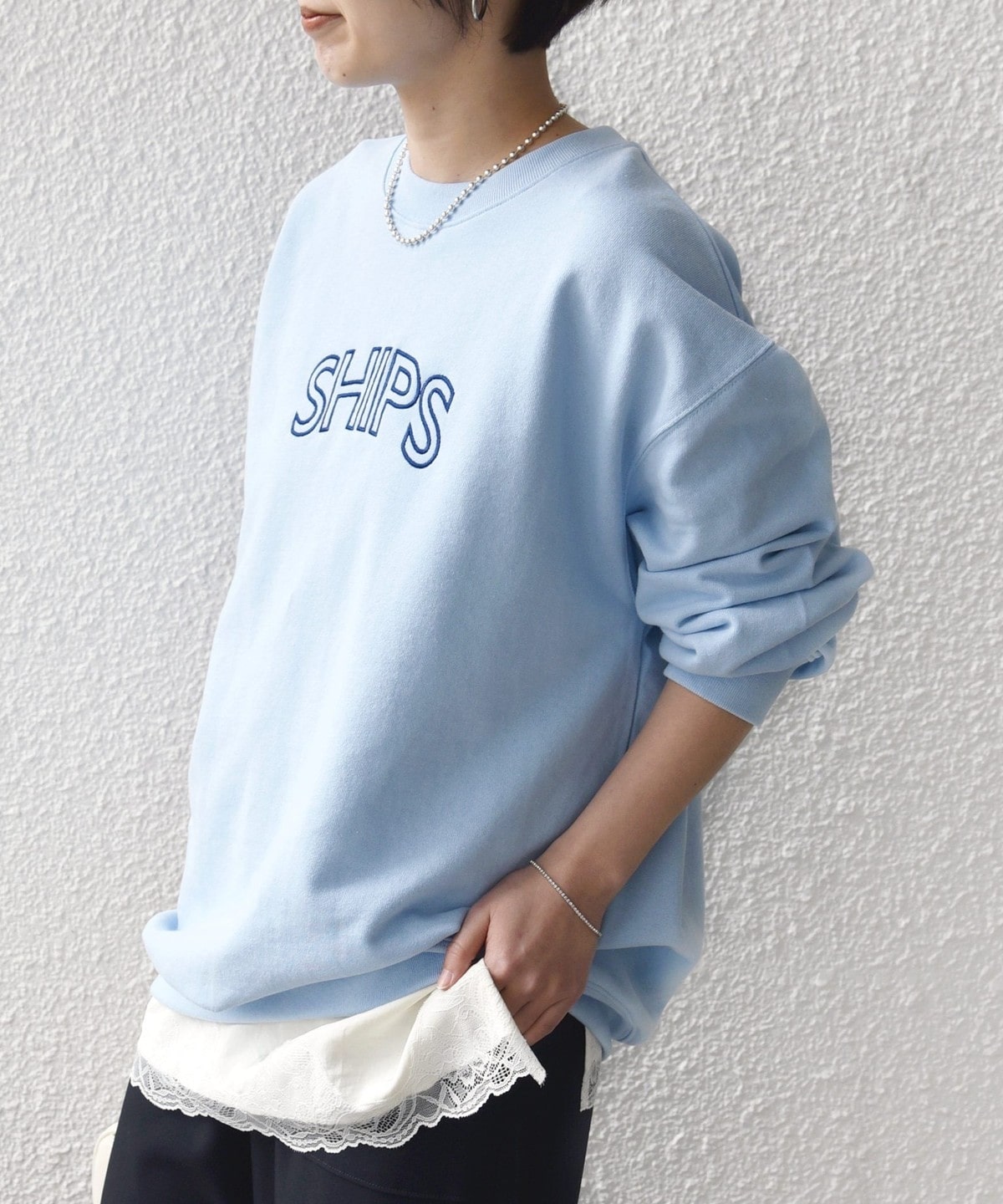 SHIPS定番のラウンドロゴを刺繍であしらったスウェットプルオーバー。