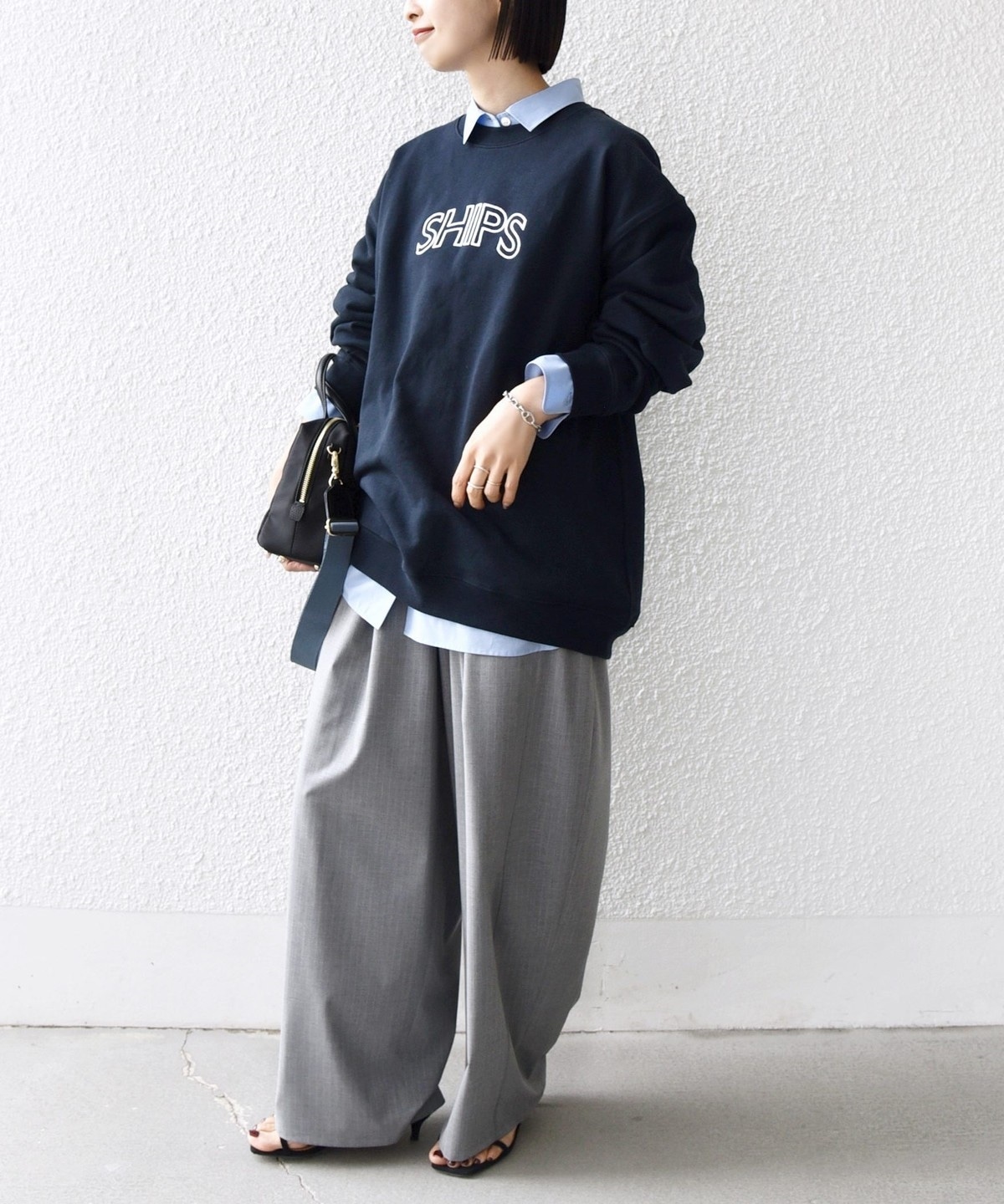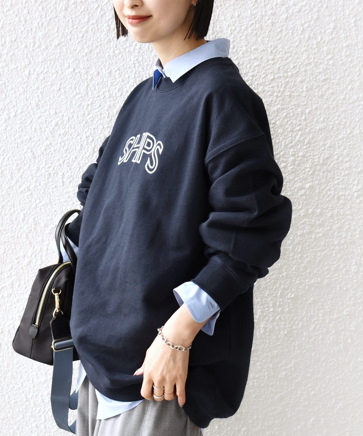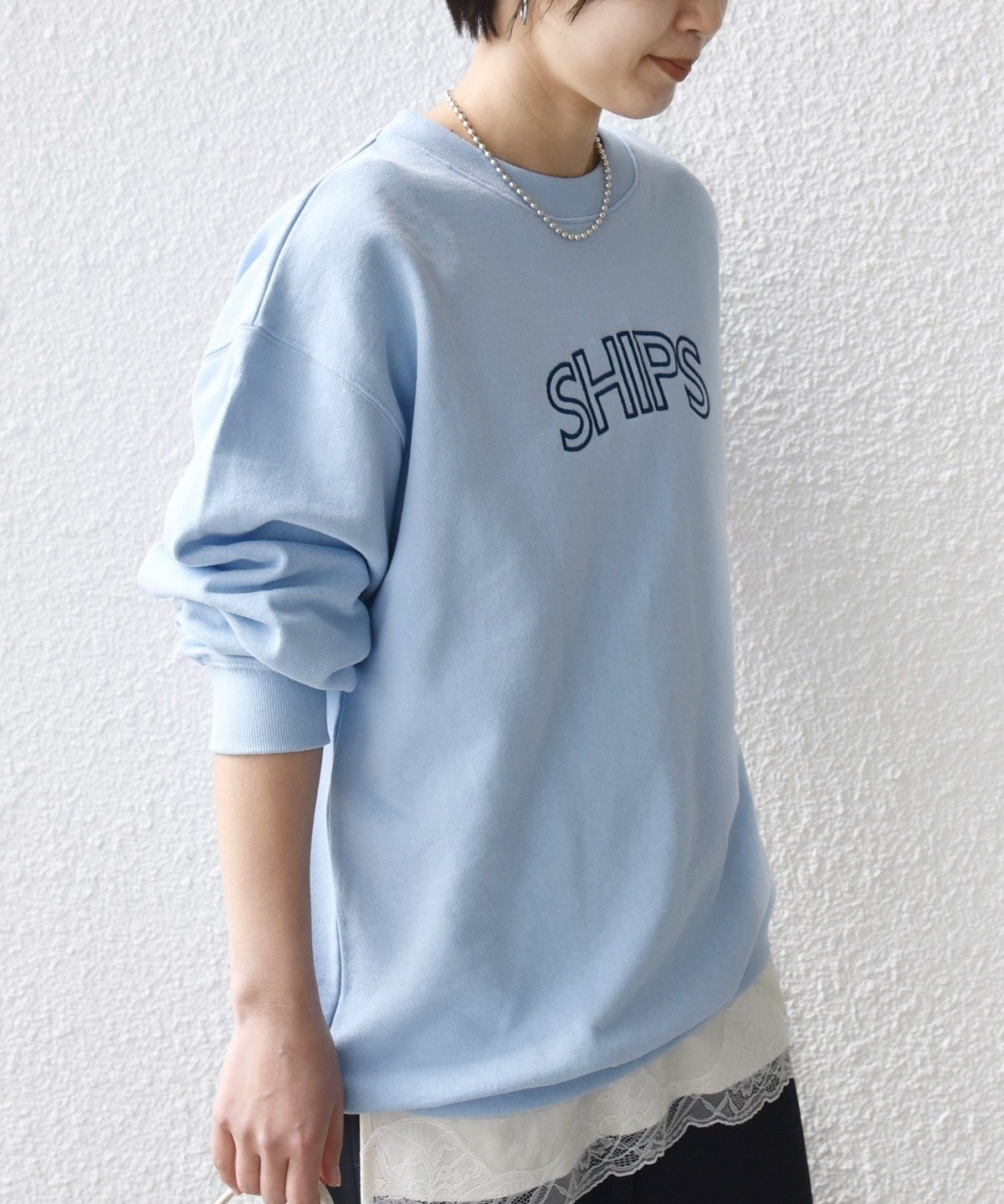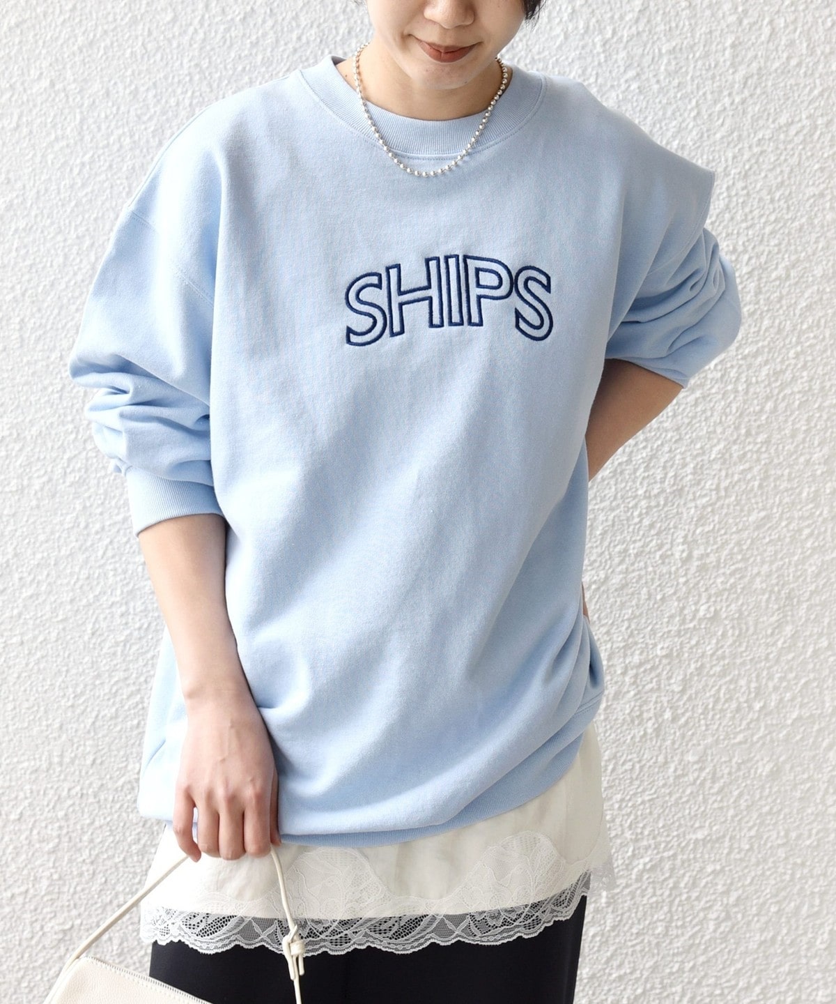 SHIPS定番のラウンドロゴを刺繍であしらったスウェットプルオーバー。