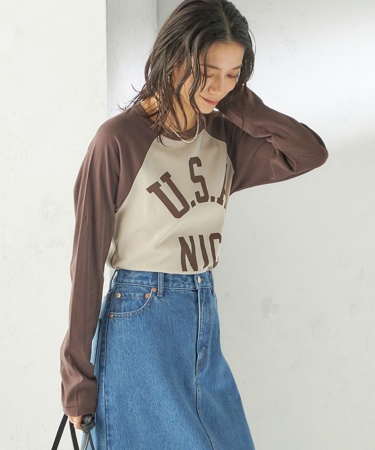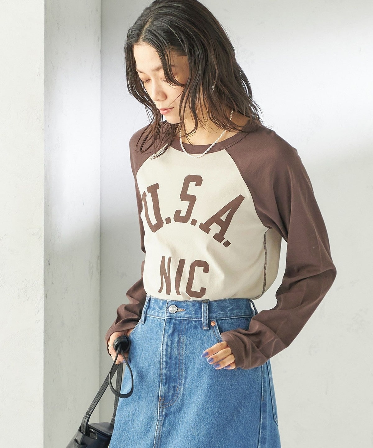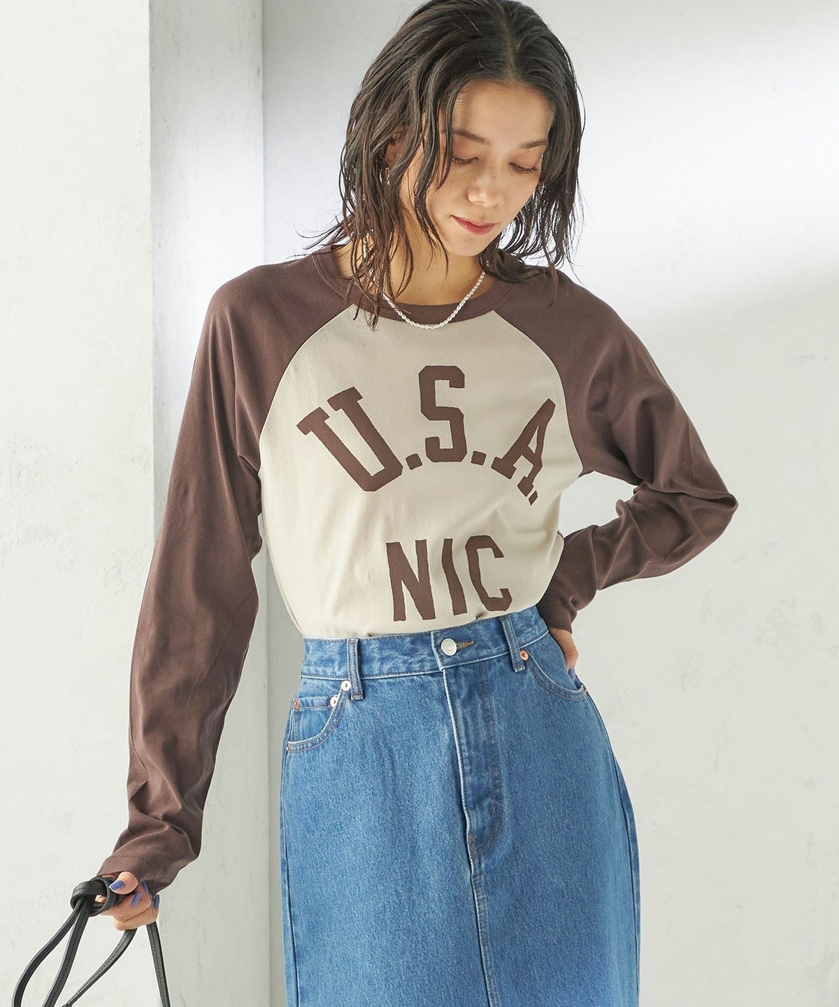1. 《予約》NINE CASE:〈手洗い可能〉シアー ラグラン TEE ブラウン