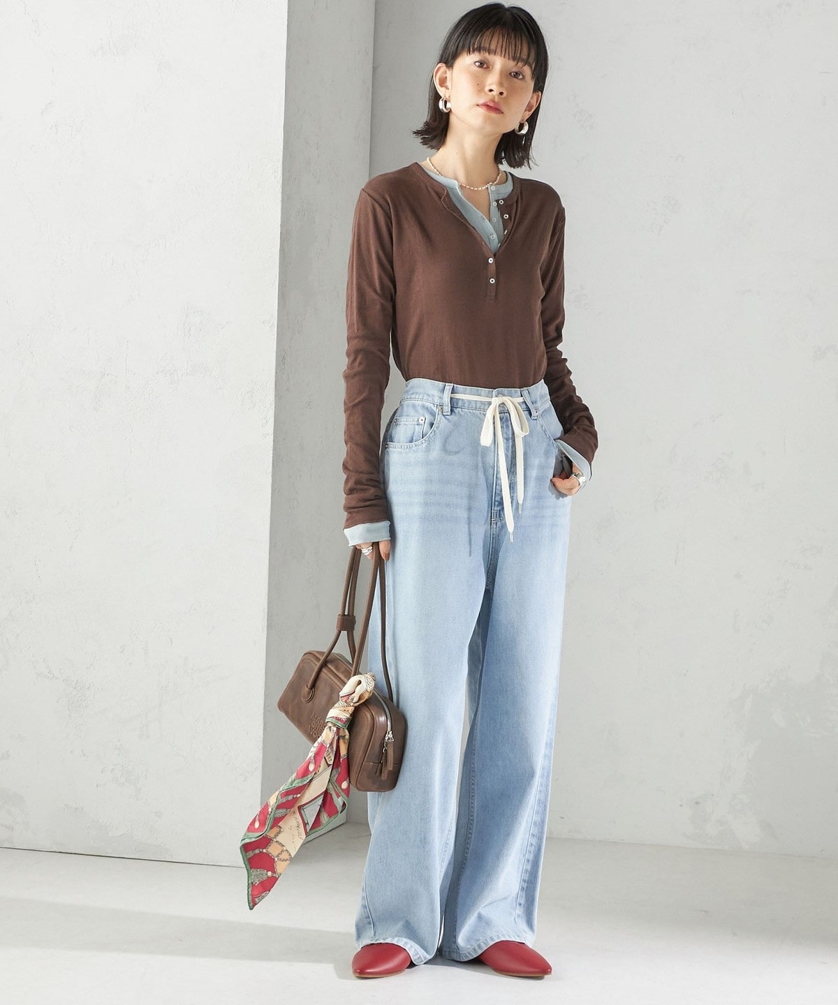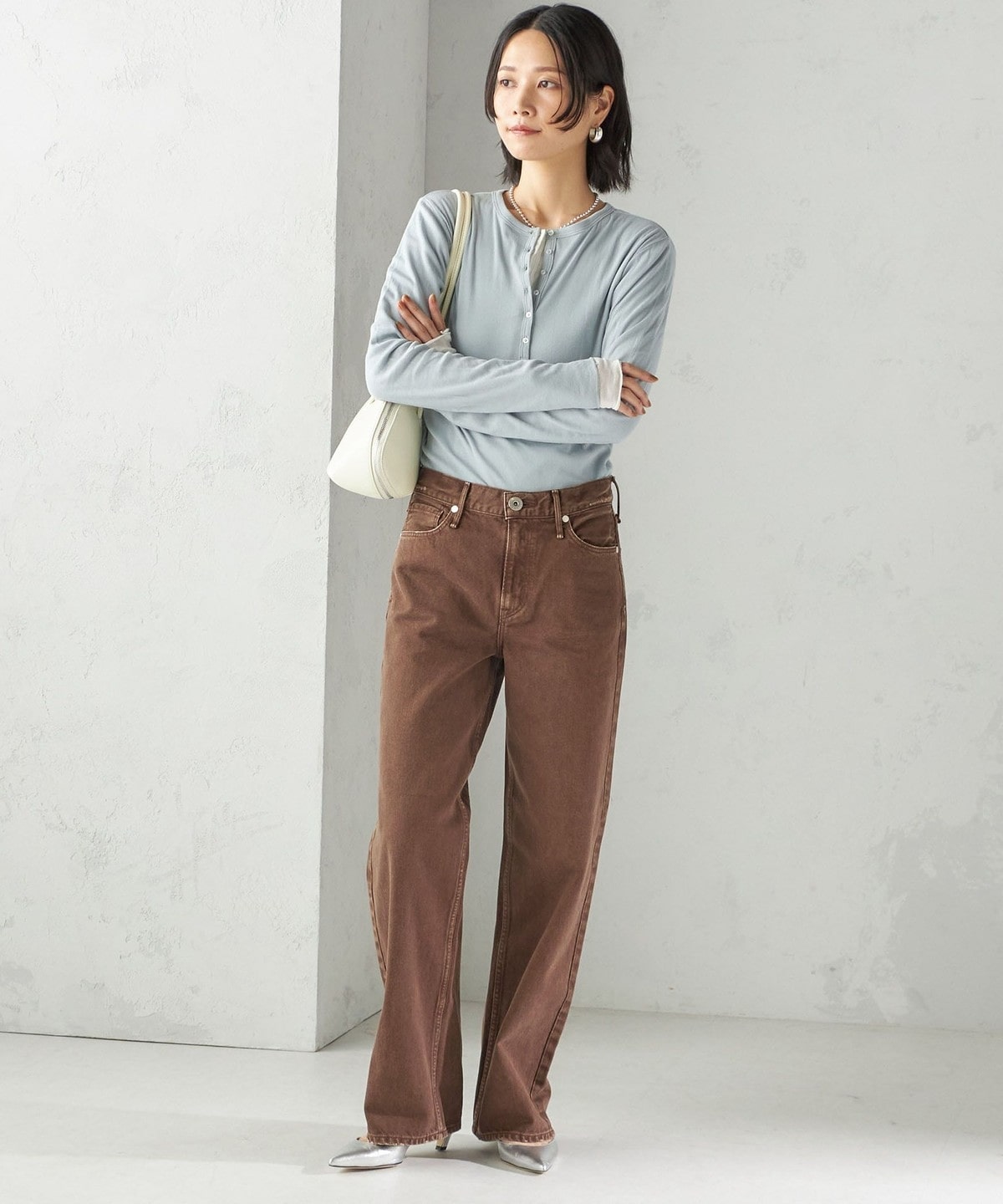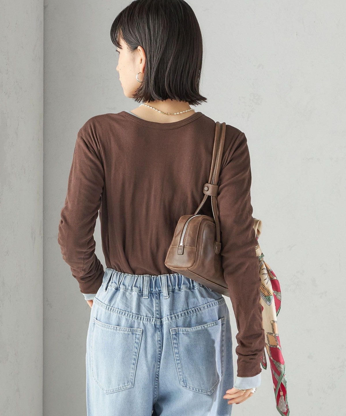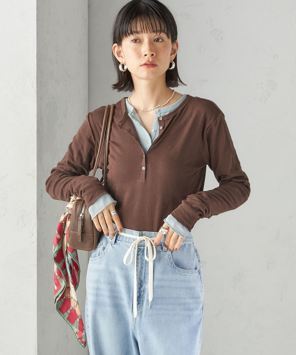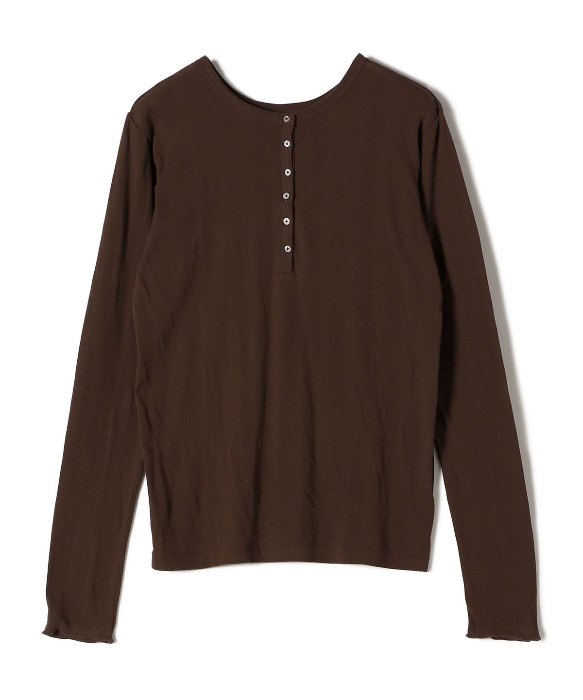 2. 《一部追加予約》【SHIPS別注】miller: シアー ヘンリー ネック ロング スリーブ TEE ブラウン
