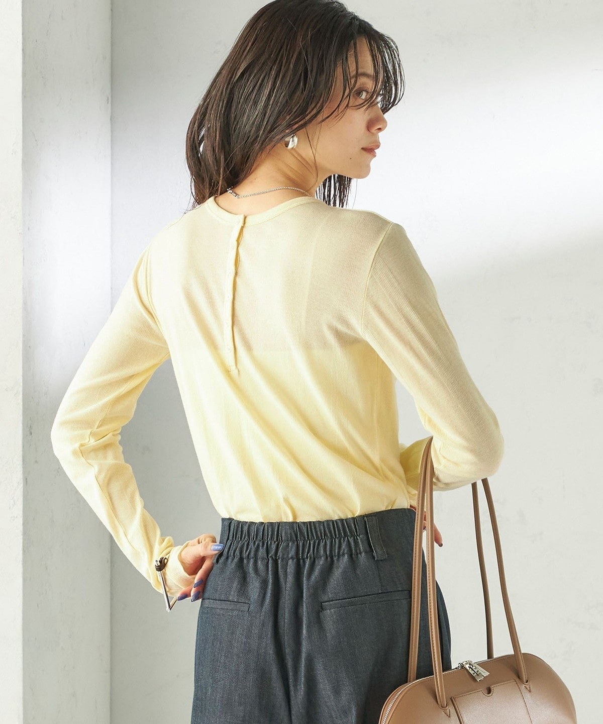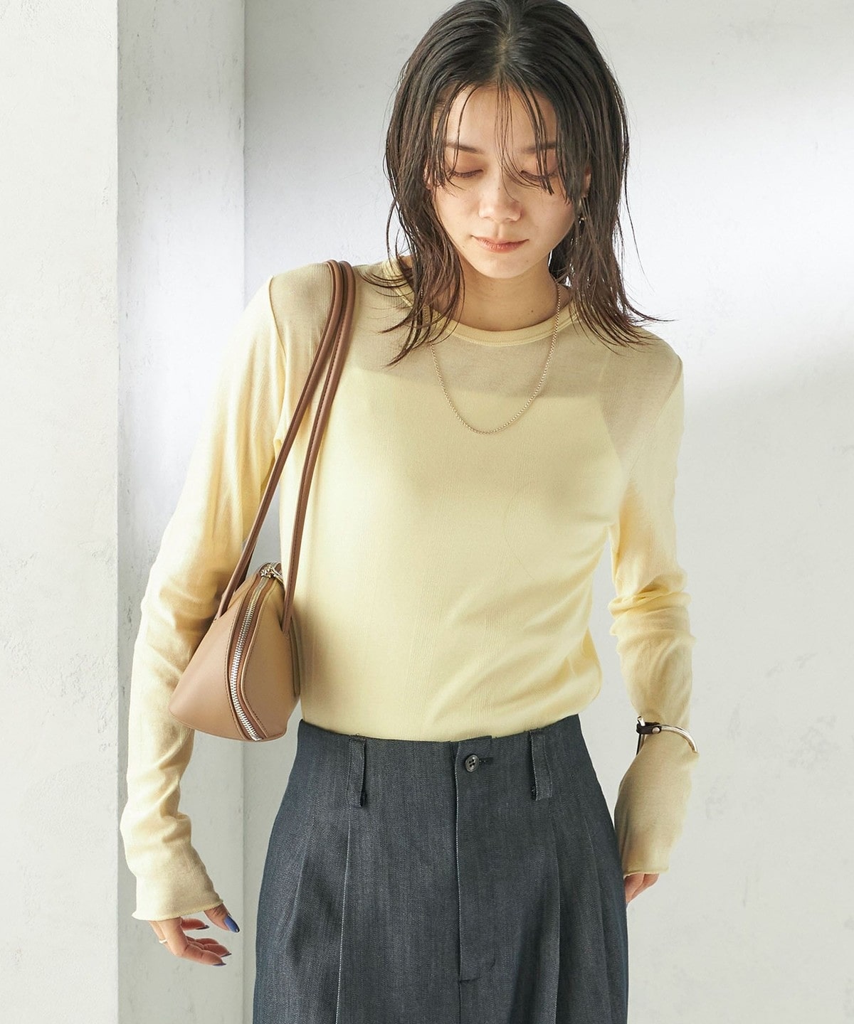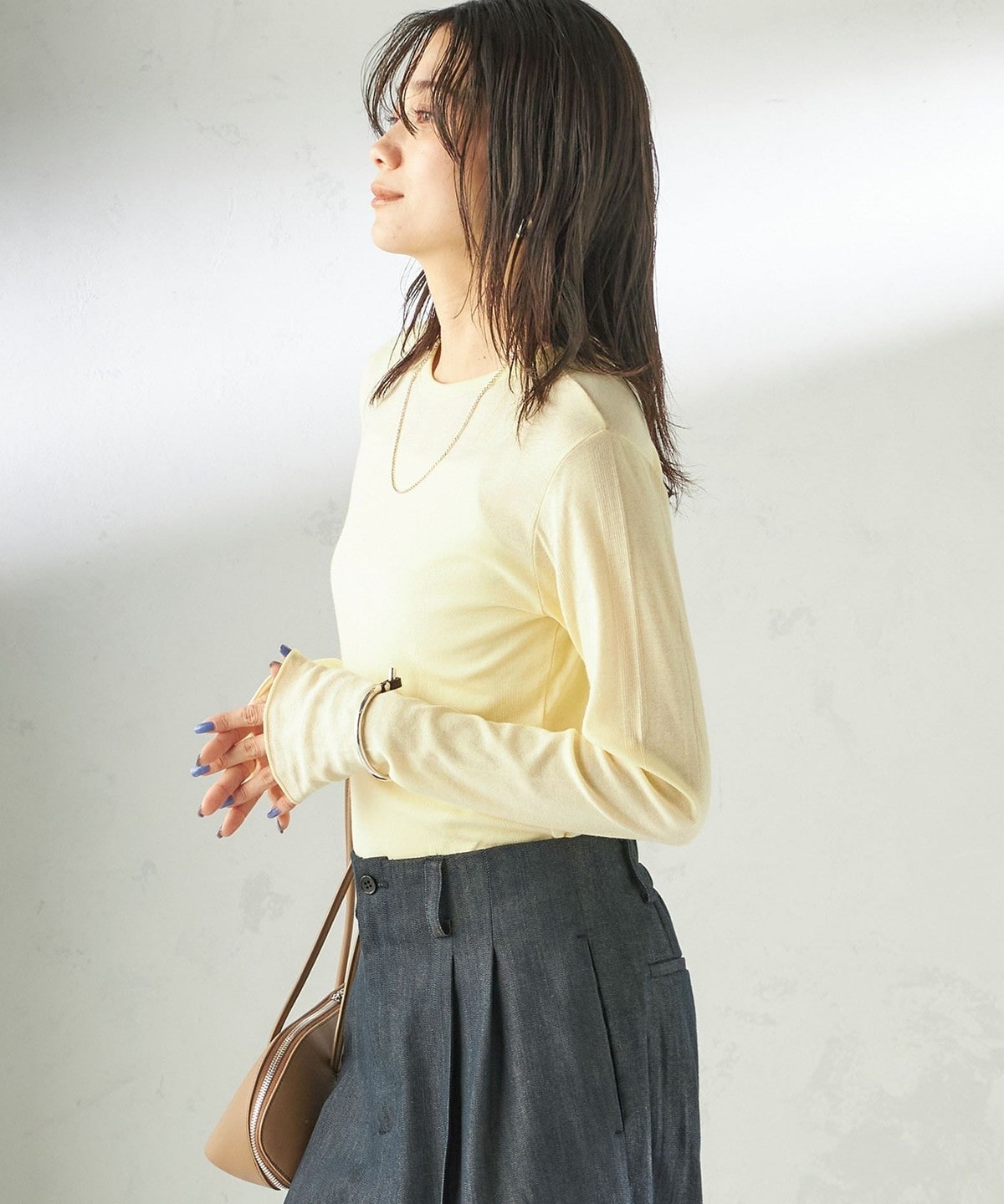 4. 《一部追加予約》【SHIPS別注】miller: シアー ヘンリー ネック ロング スリーブ TEE イエロー