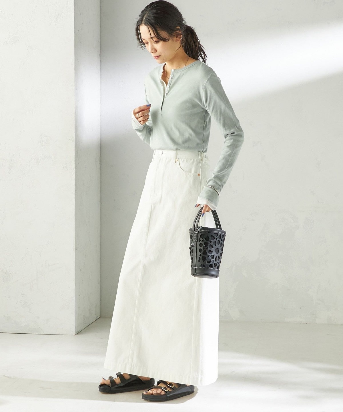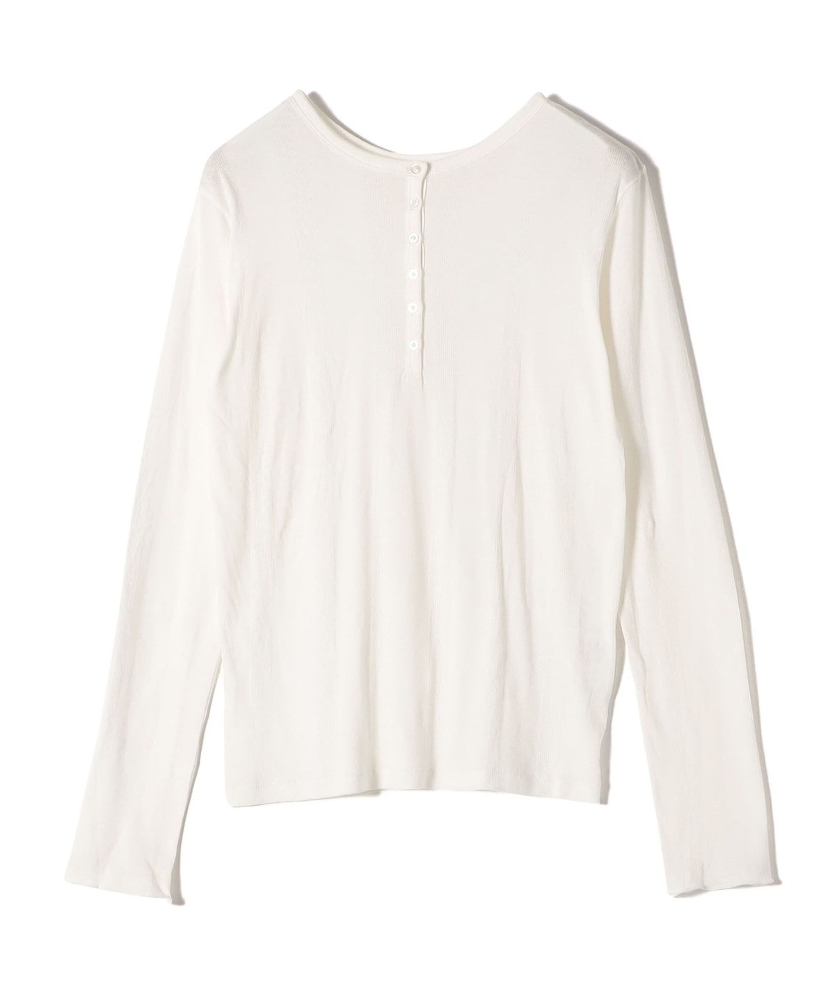 1. 《一部追加予約》【SHIPS別注】miller: シアー ヘンリー ネック ロング スリーブ TEE ホワイト
