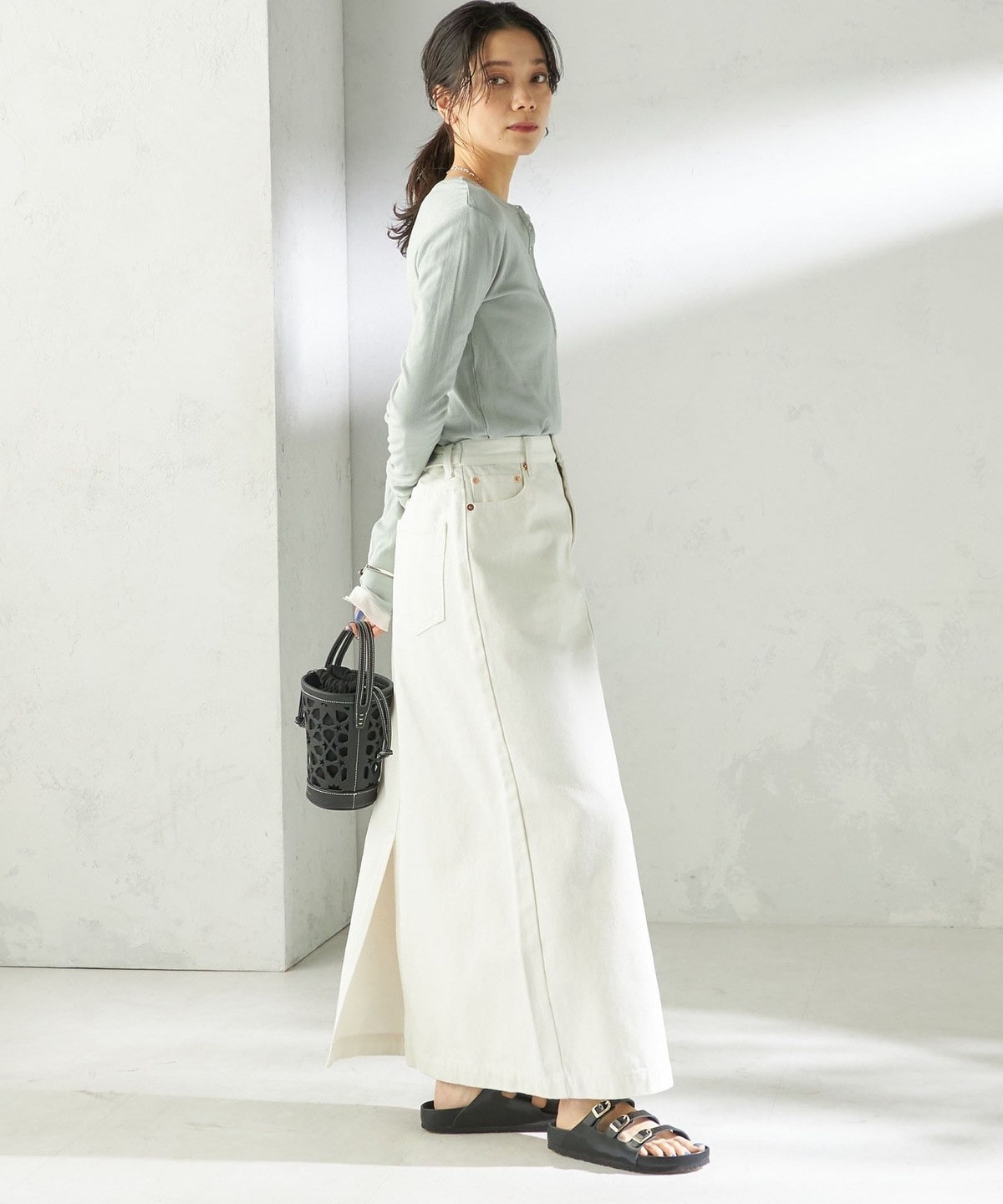 21. 《一部追加予約》【SHIPS別注】miller: シアー ヘンリー ネック ロング スリーブ TEE
