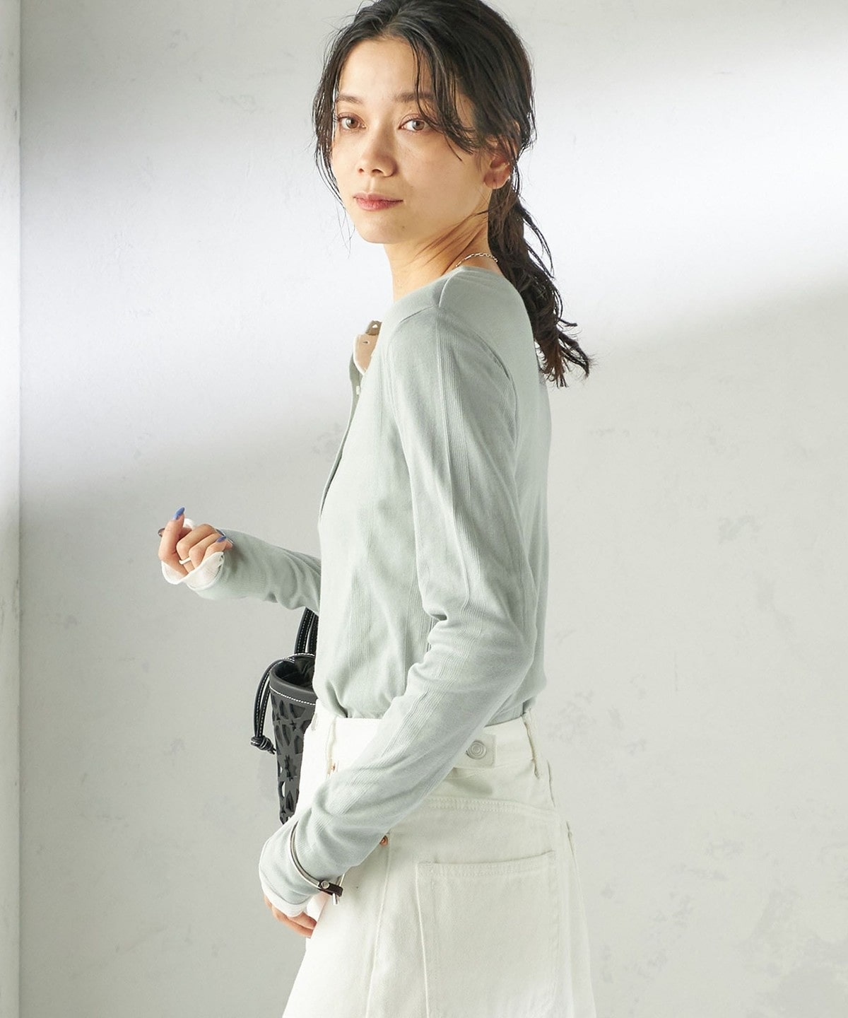 24. 《一部追加予約》【SHIPS別注】miller: シアー ヘンリー ネック ロング スリーブ TEE
