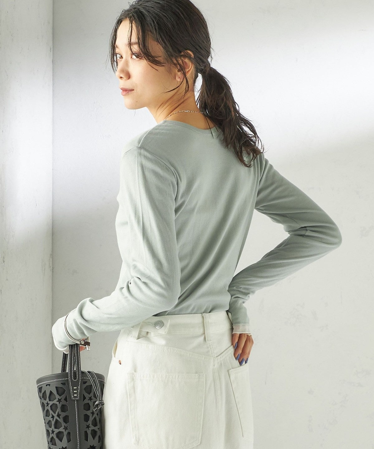 12. 《一部追加予約》【SHIPS別注】miller: シアー ヘンリー ネック ロング スリーブ TEE