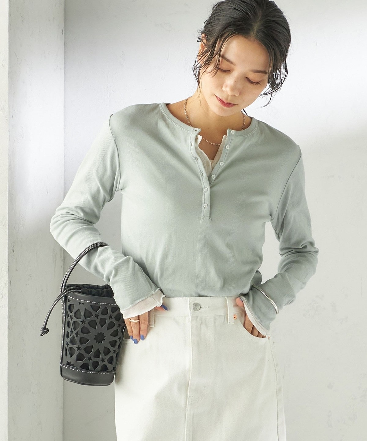 millerで人気のシアー素材を使用した、SHIPSだけのヘンリーネックシアーロンT。