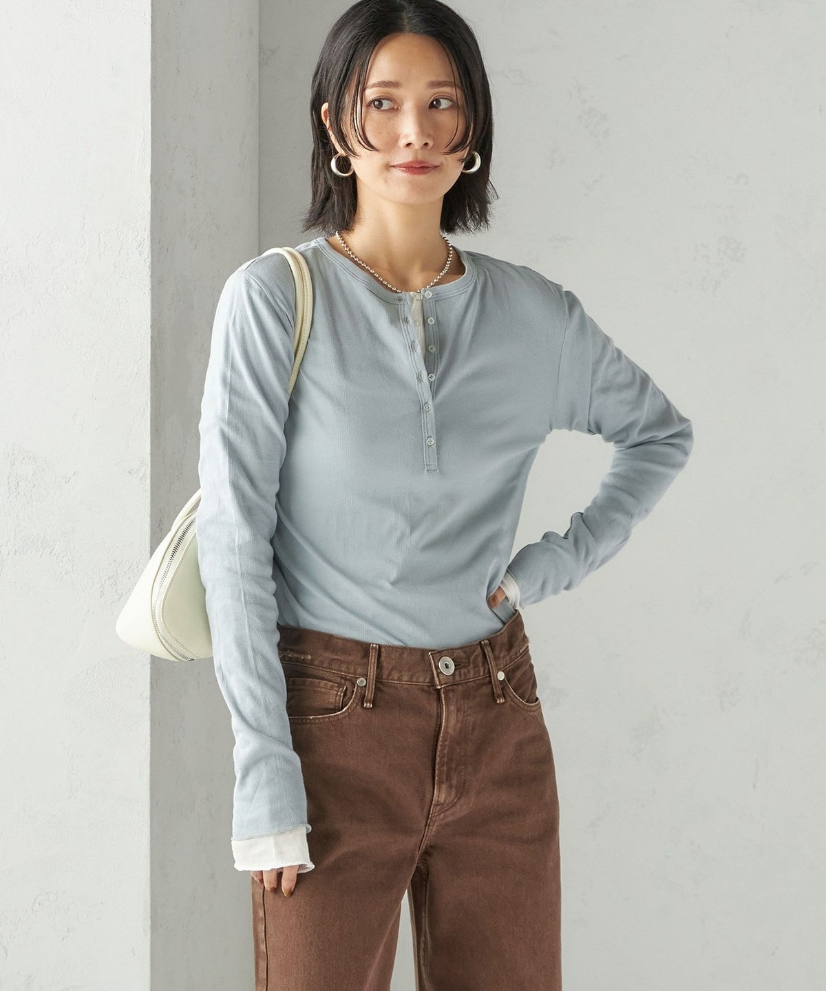 6. 《一部追加予約》【SHIPS別注】miller: シアー ヘンリー ネック ロング スリーブ TEE ライトブルー
