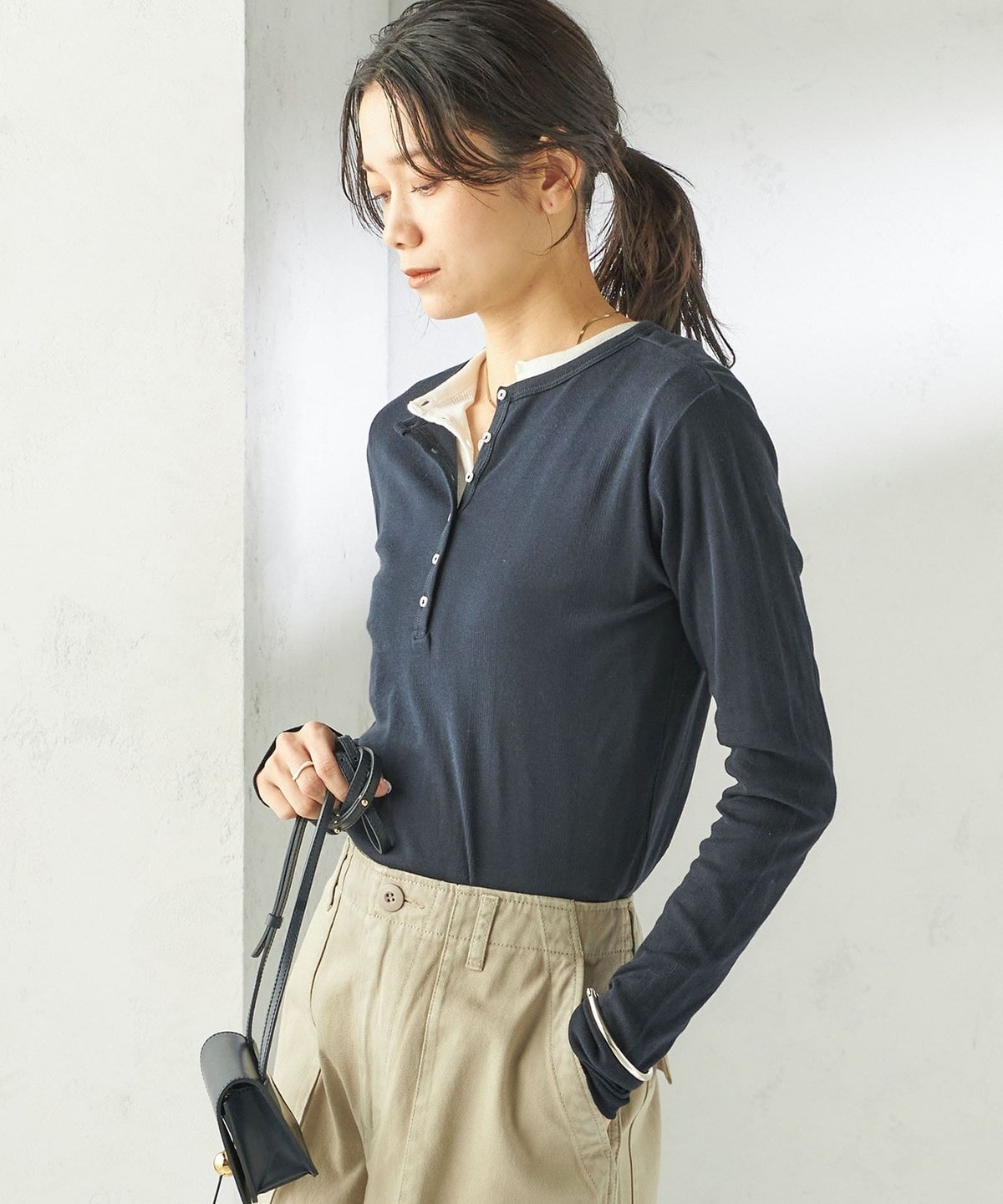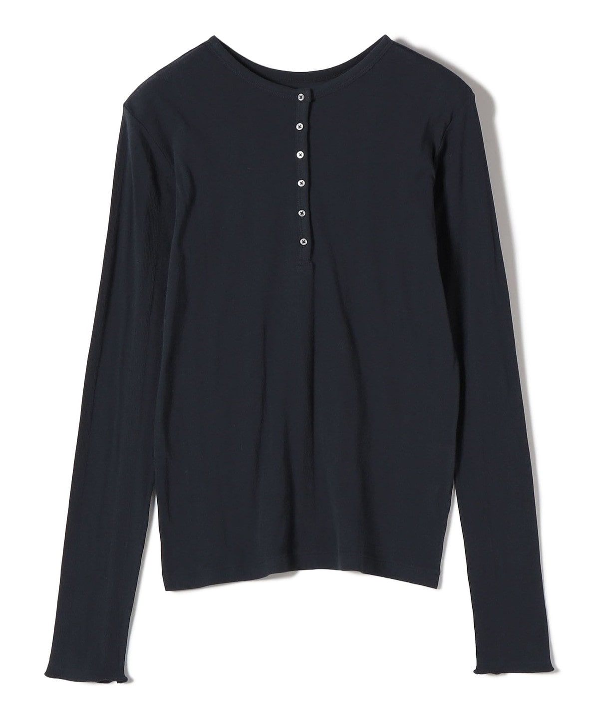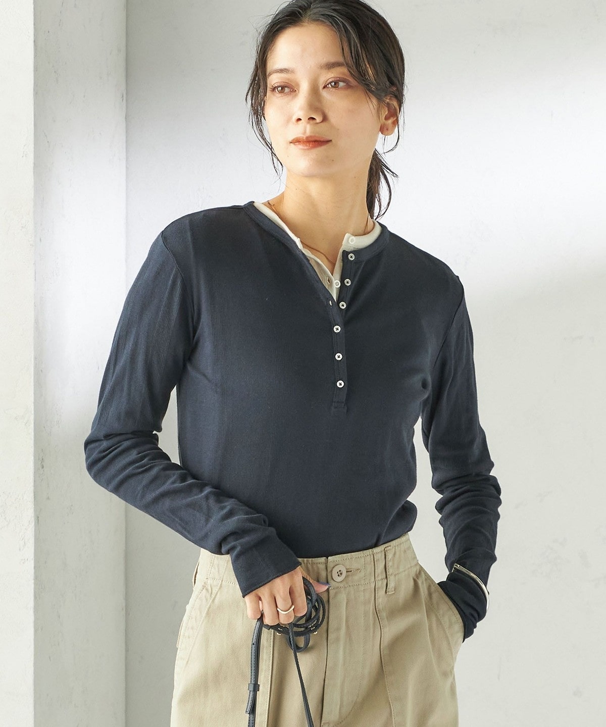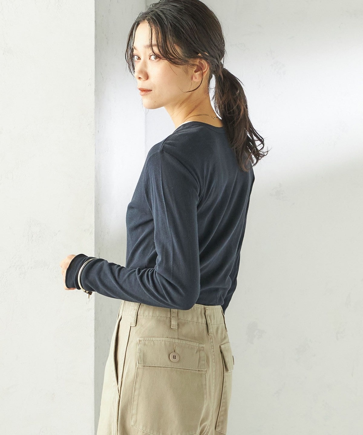 7. 《一部追加予約》【SHIPS別注】miller: シアー ヘンリー ネック ロング スリーブ TEE ネイビー