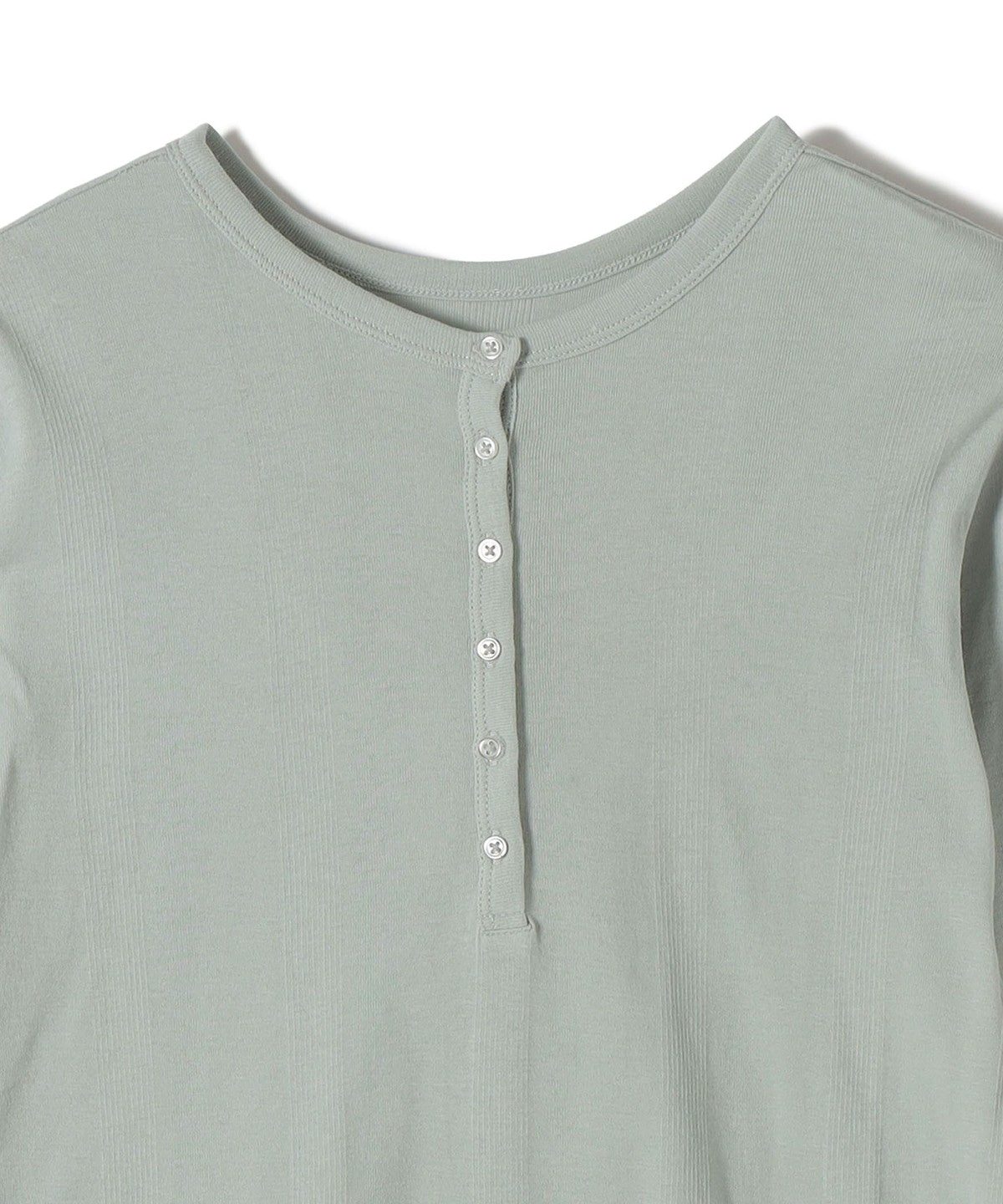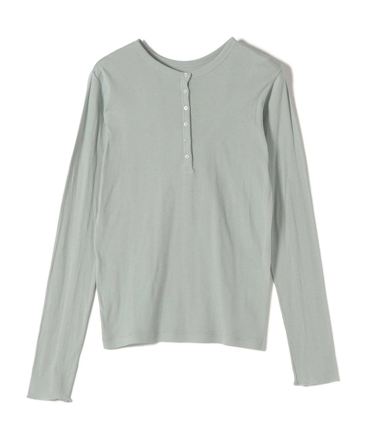 5. 《一部追加予約》【SHIPS別注】miller: シアー ヘンリー ネック ロング スリーブ TEE ライトグリーン