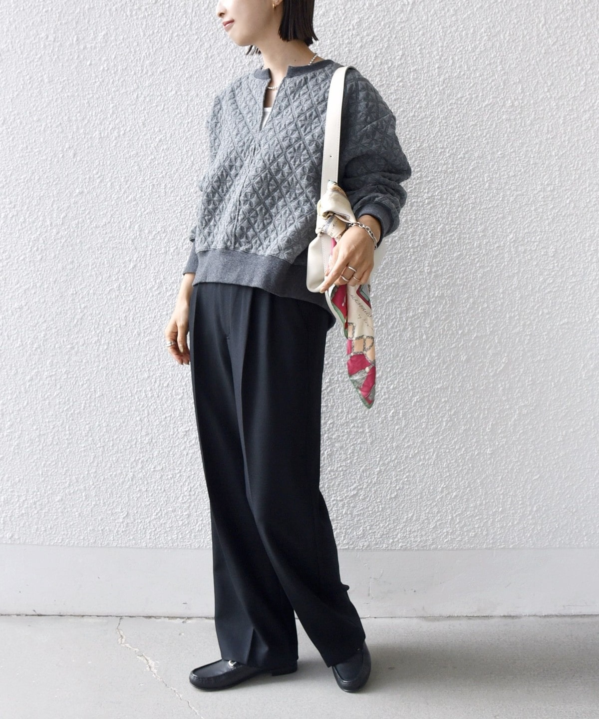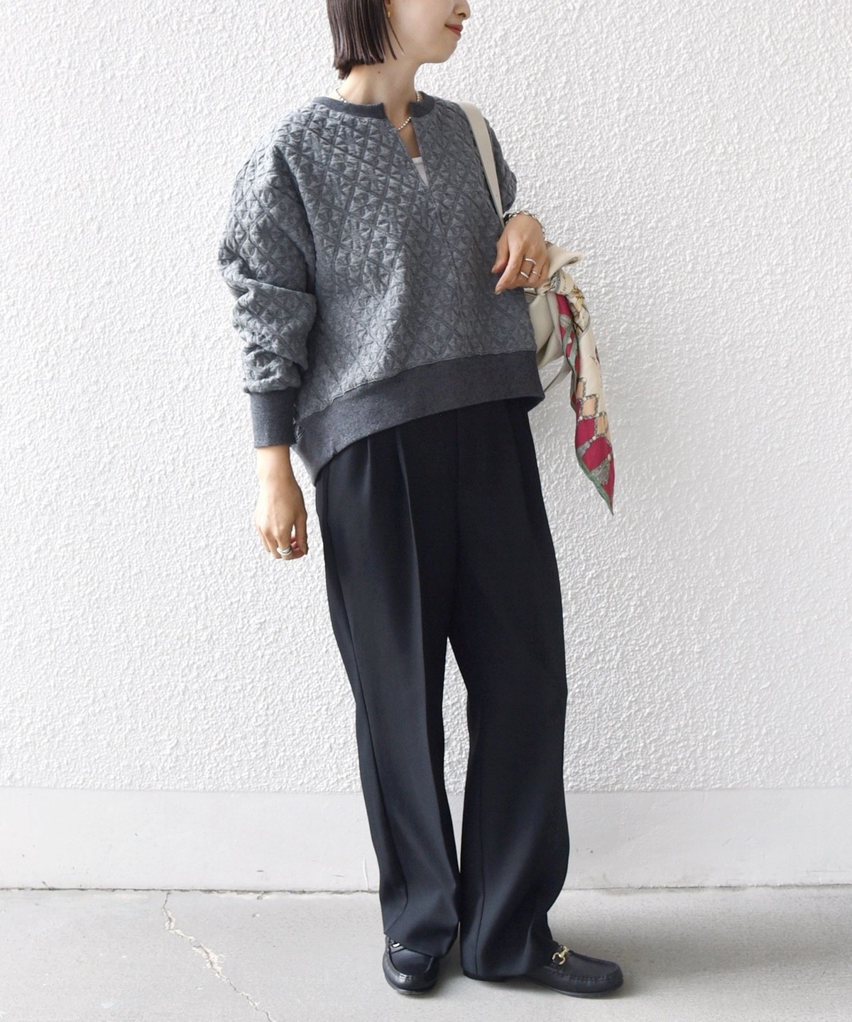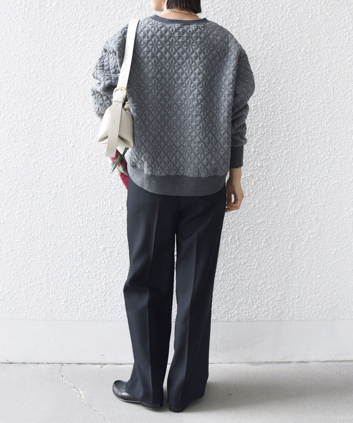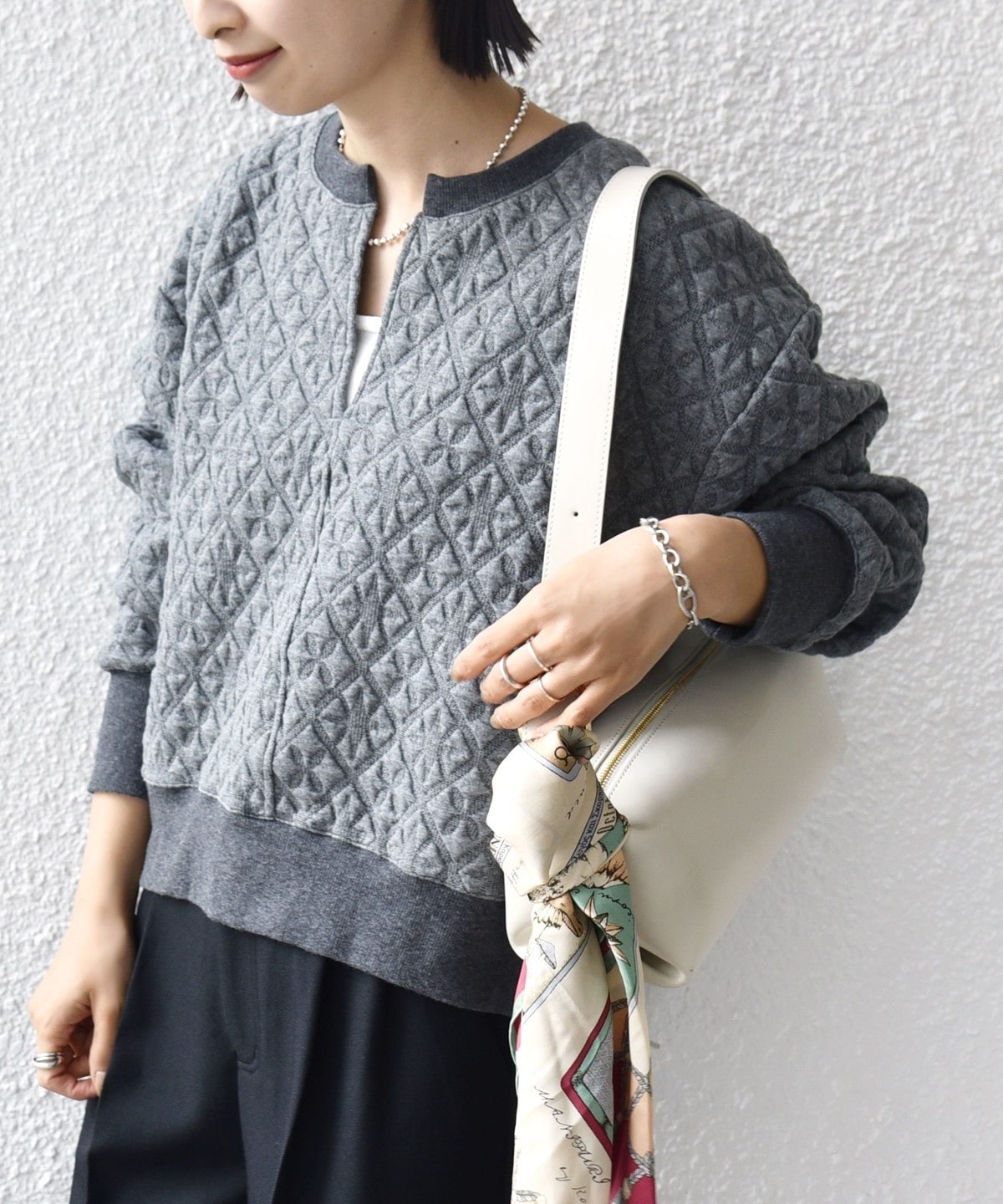 2. 【WEB限定】〈手洗い可能〉キルティング ジャカード キーネック プルオーバー グレー