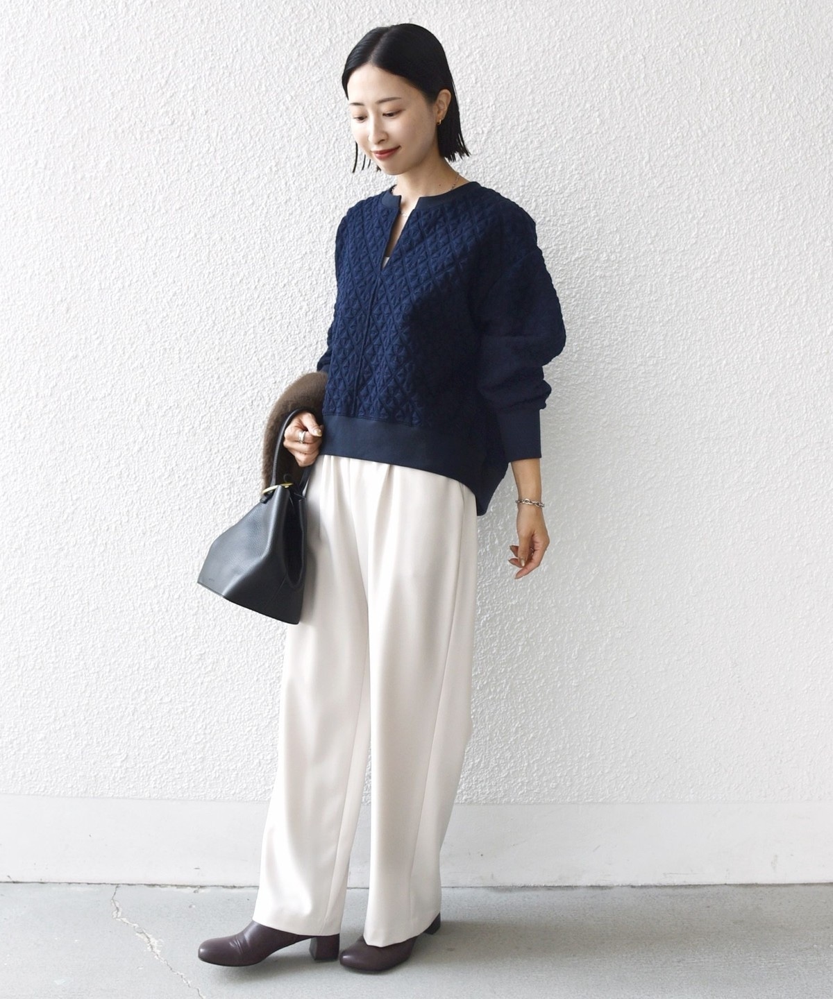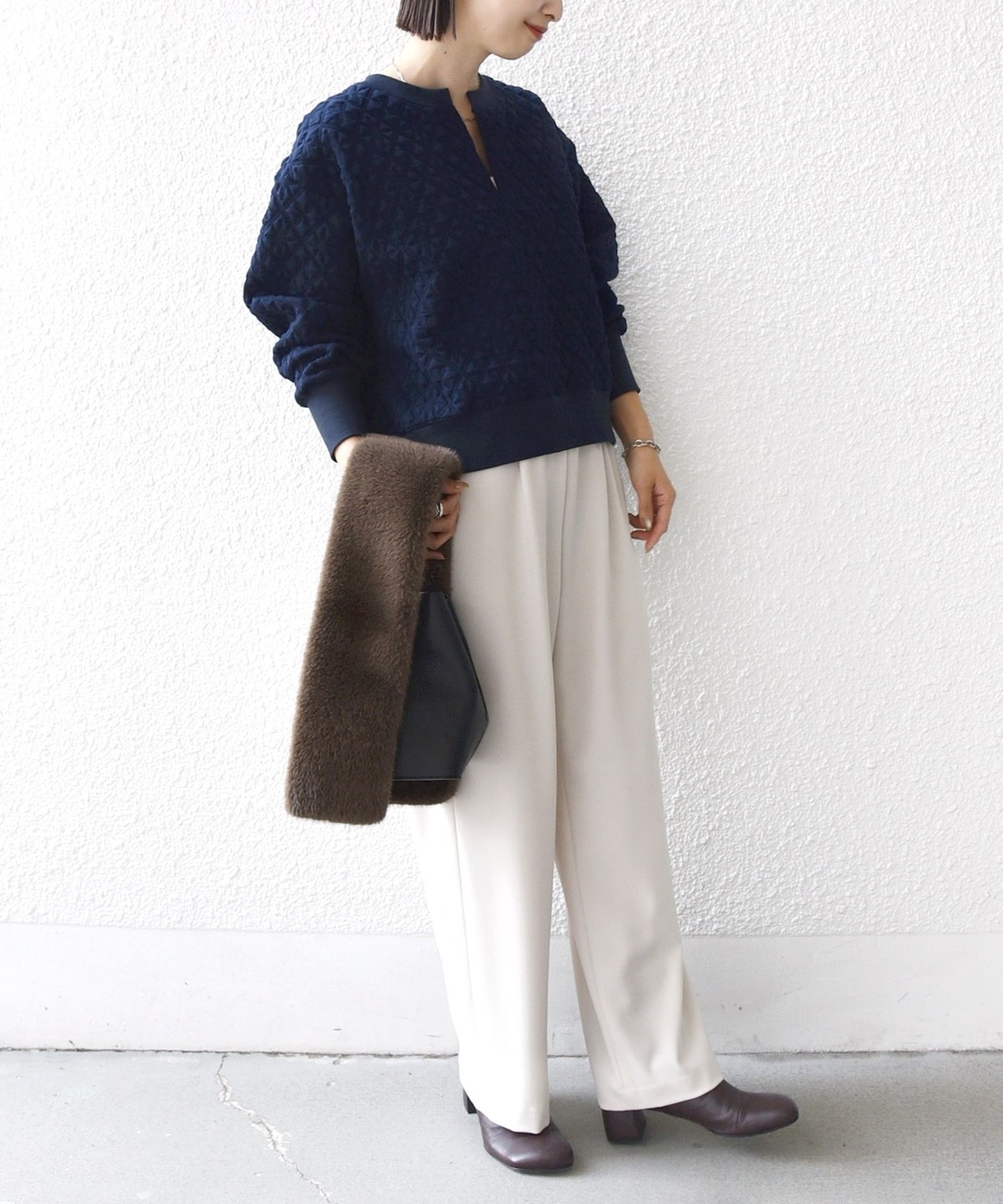 5. 【WEB限定】〈手洗い可能〉キルティング ジャカード キーネック プルオーバー