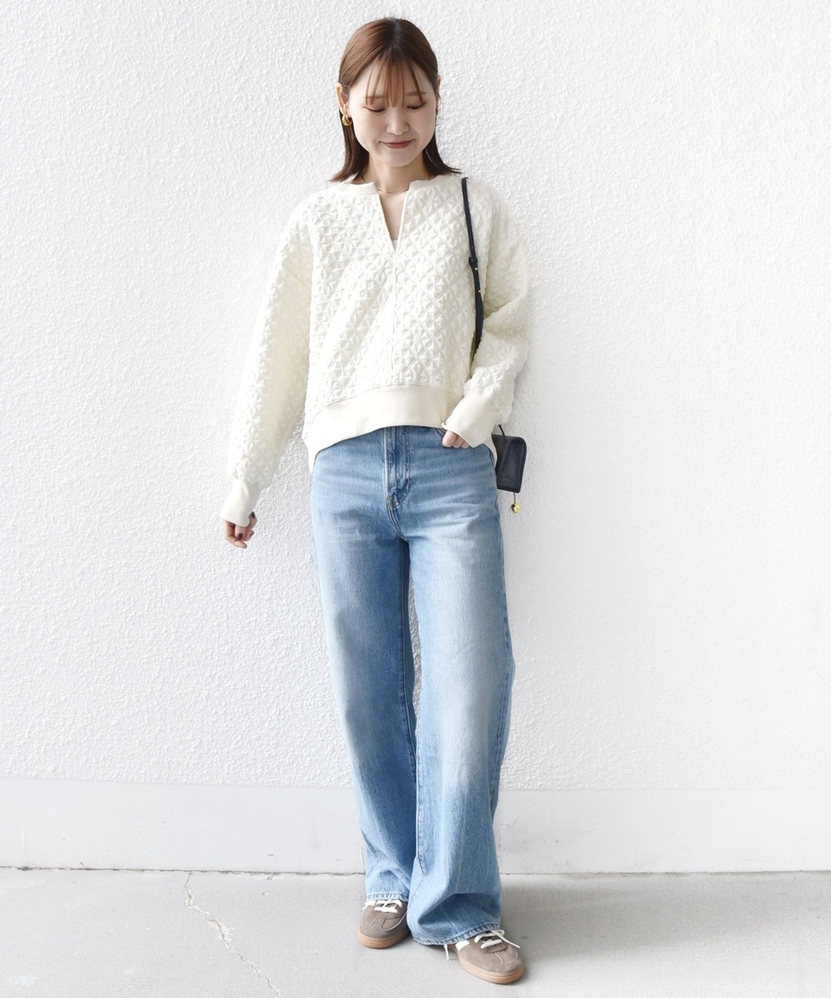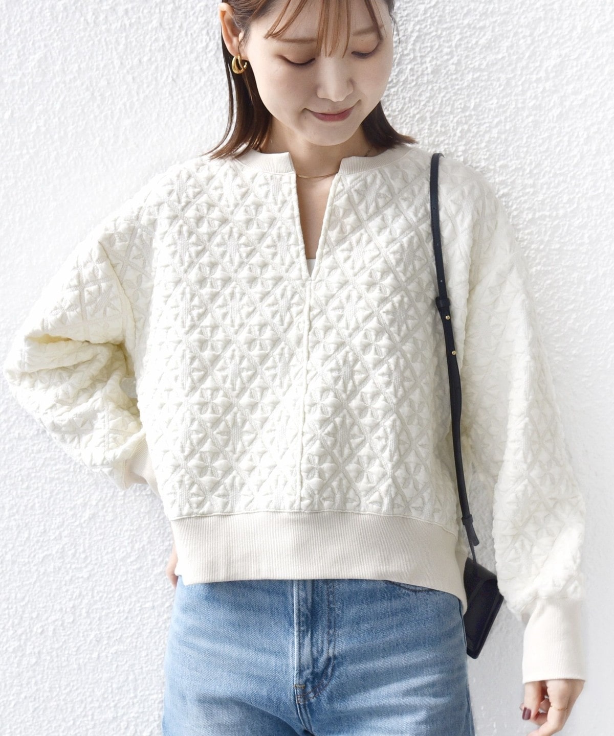 1. 【WEB限定】〈手洗い可能〉キルティング ジャカード キーネック プルオーバー オフホワイト