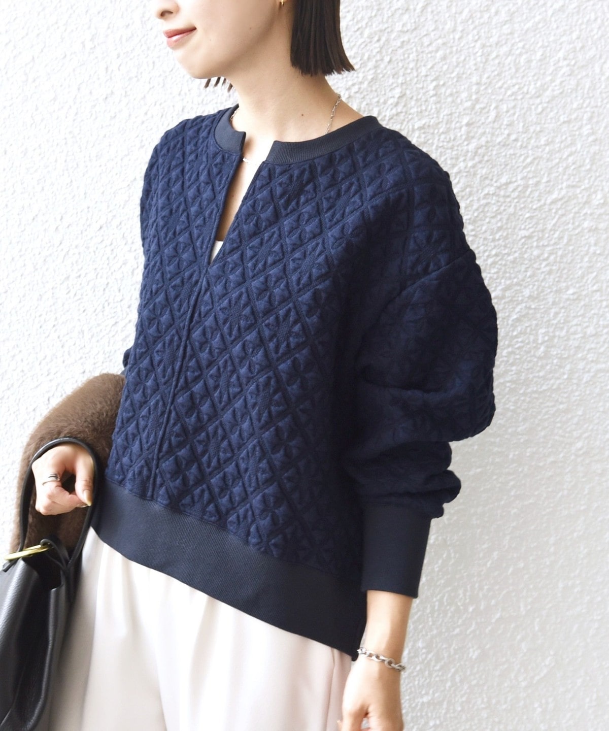 6. 【WEB限定】〈手洗い可能〉キルティング ジャカード キーネック プルオーバー