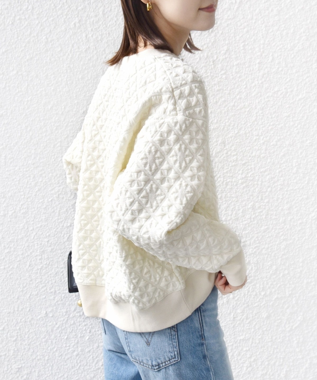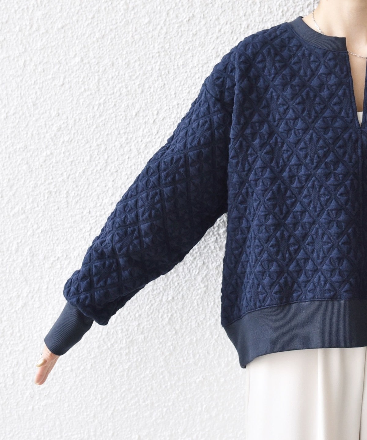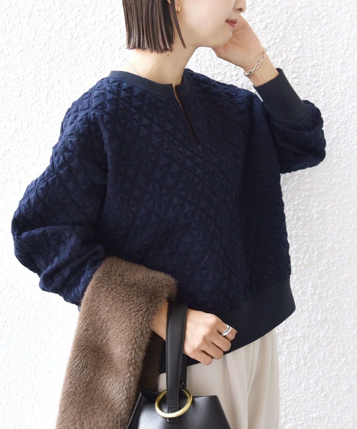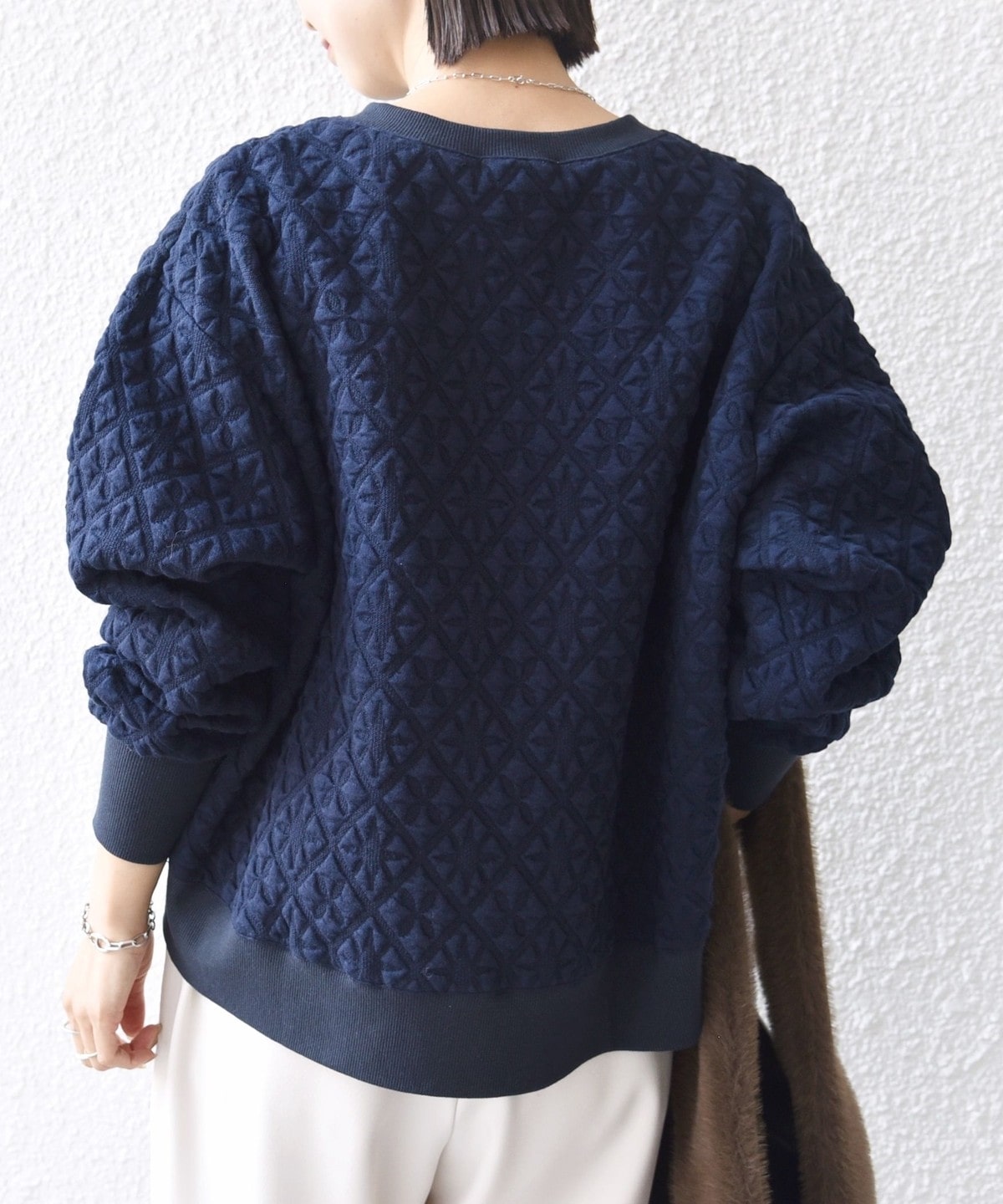 表面感のあるキルティングジャカード生地が可愛いプルオーバー。