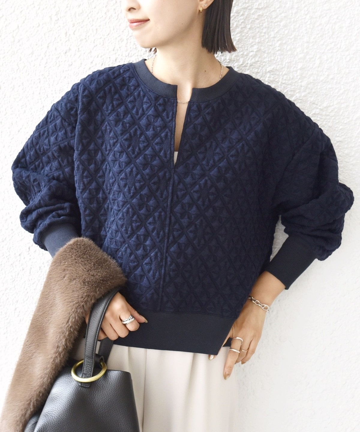 34. 【WEB限定】〈手洗い可能〉キルティング ジャカード キーネック プルオーバー