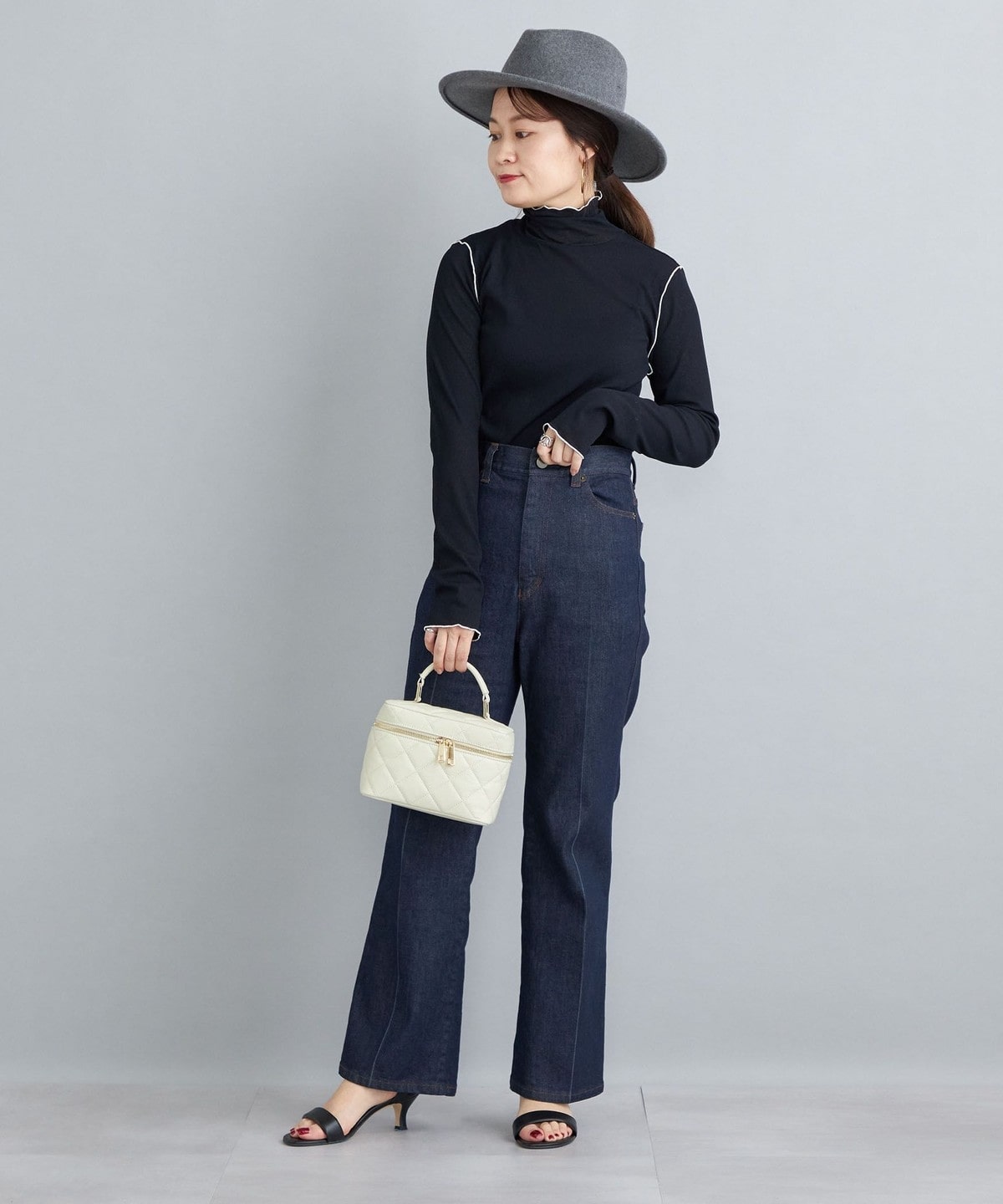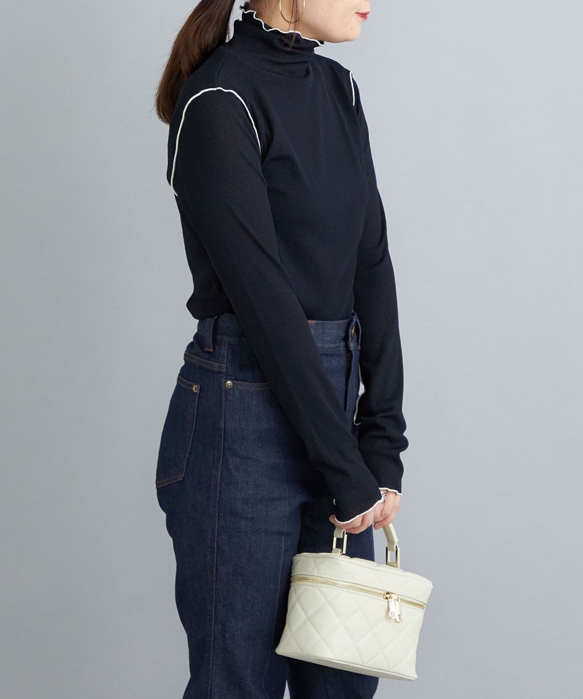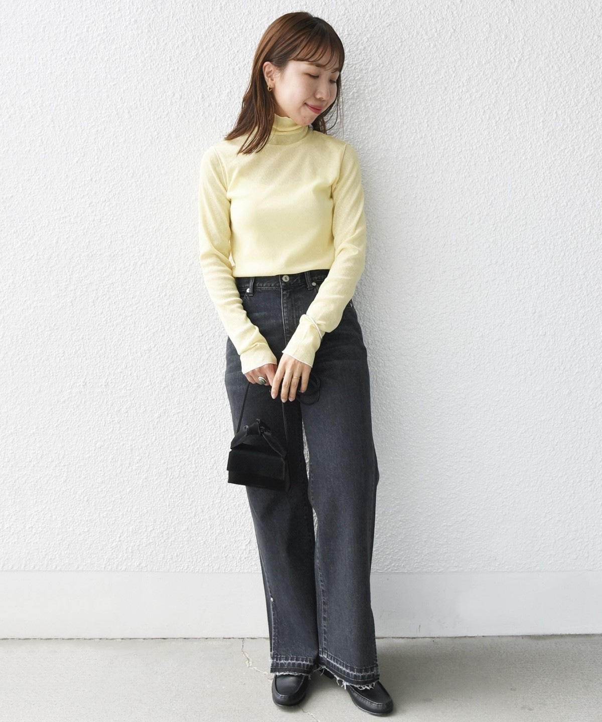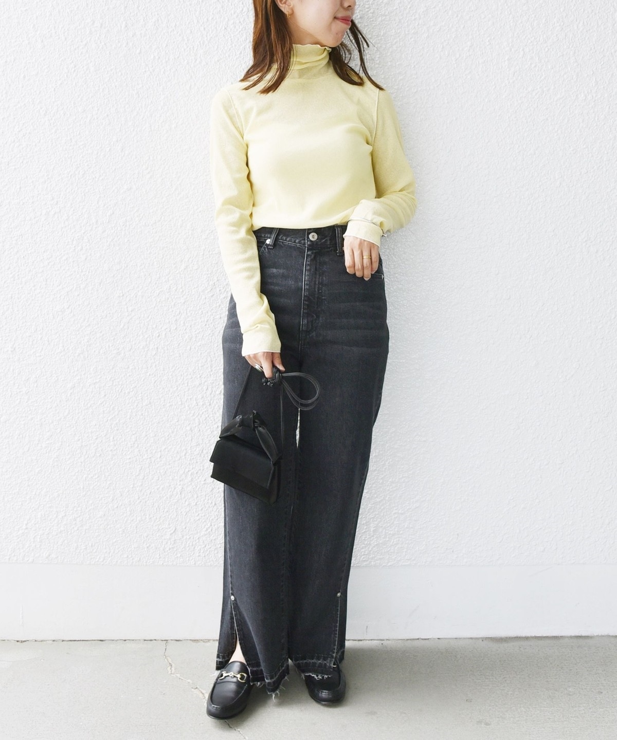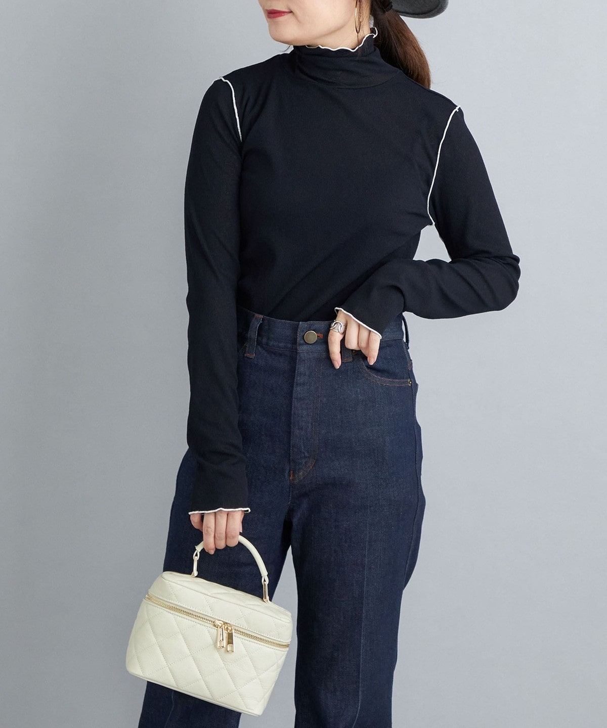 オフホワイトとブラックは同色のメローがシンプルで着回しやすさ◎