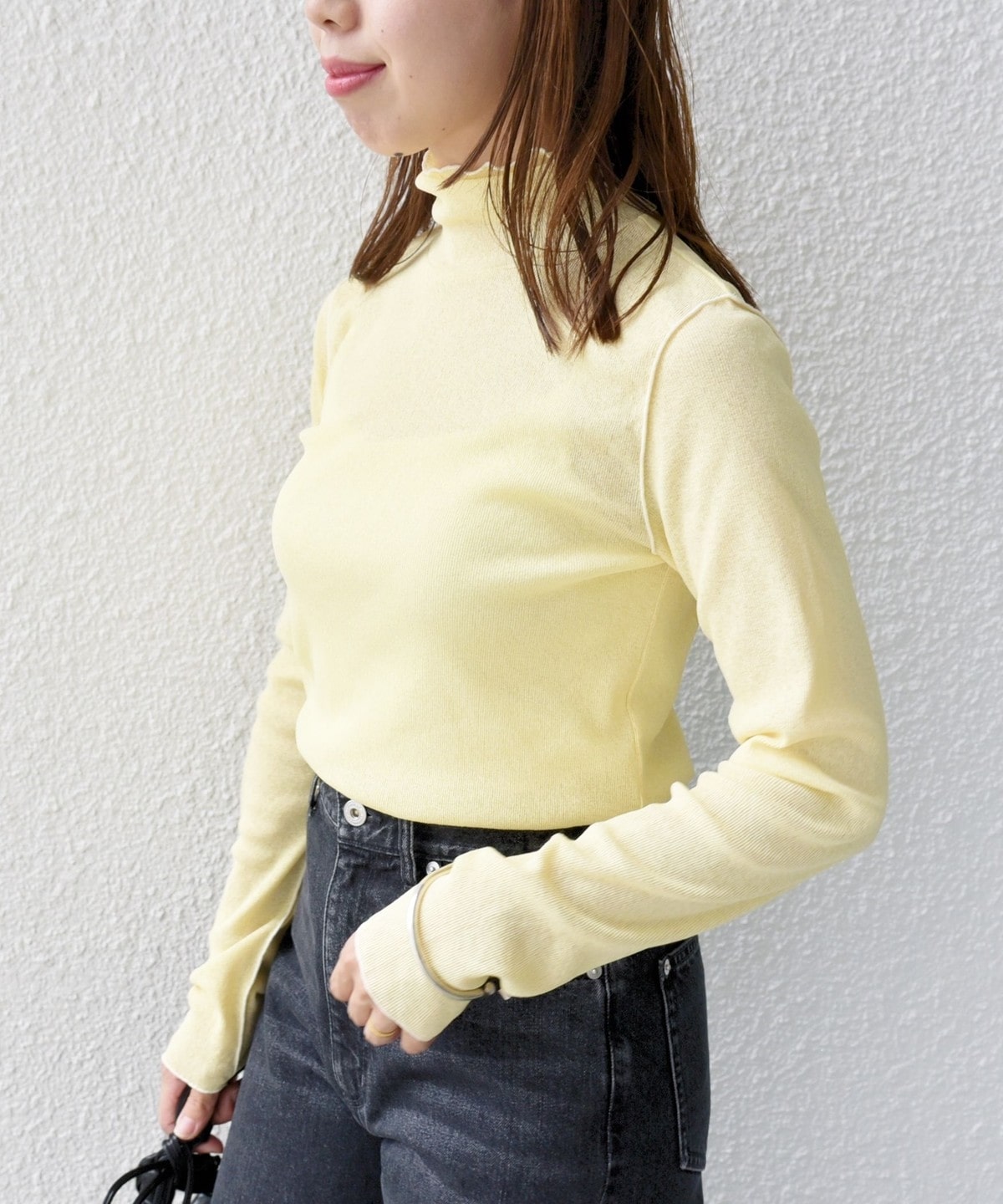 ドライタッチのリブ素材を使用しているので、シーズン問わずご着用いただけます。