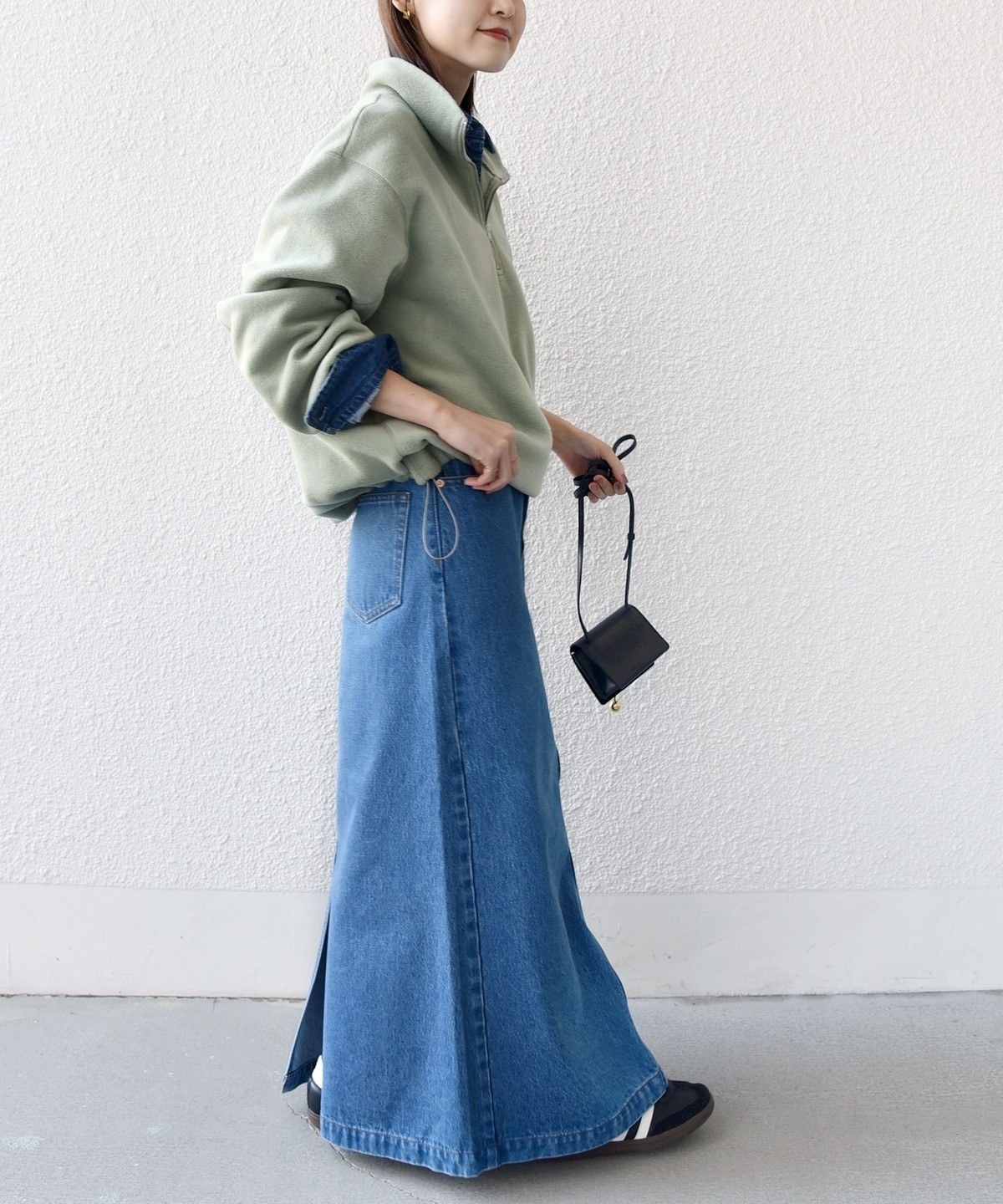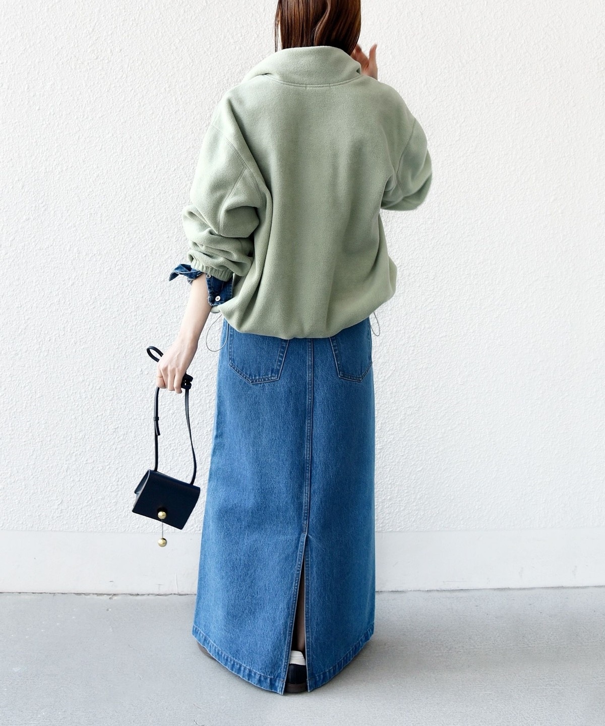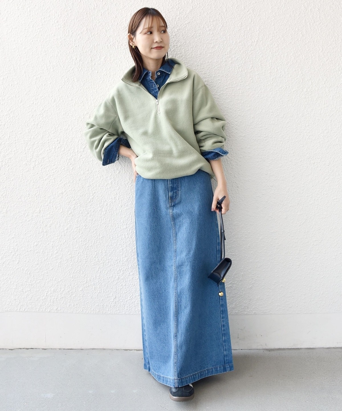 ボトムはワイドなスラックスやロングスカートなどリラックス感のあるキレイ目アイテムとの合わせがおすすめです。