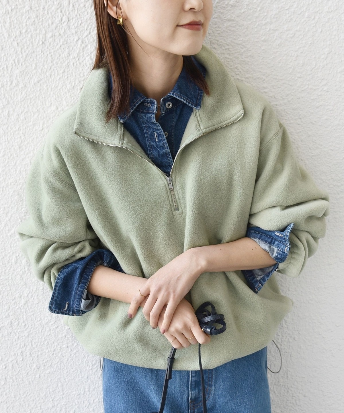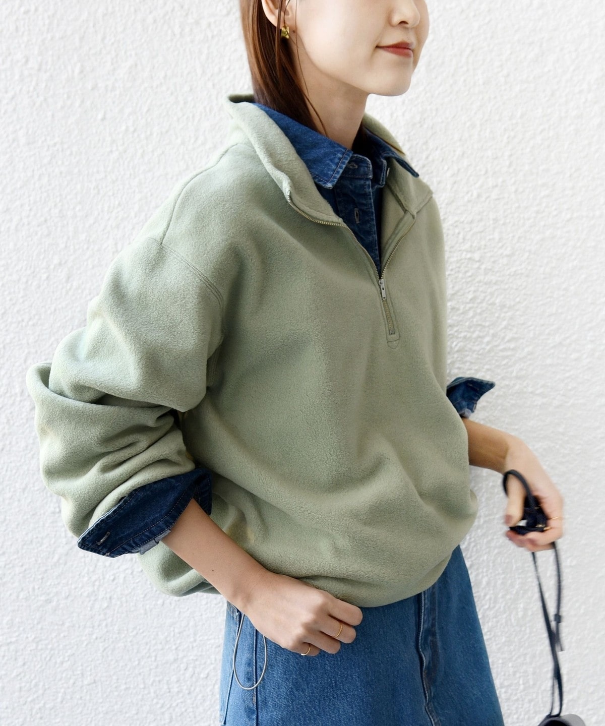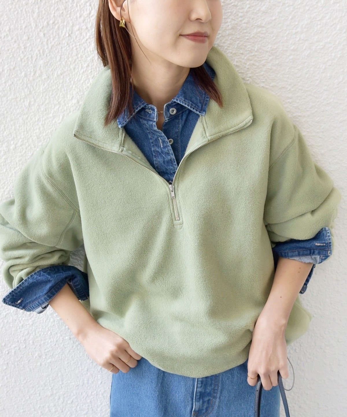 シャツ、Tシャツやタートルネックなどさまざまなトップスとのレイヤードが楽しめるハーフジップ。