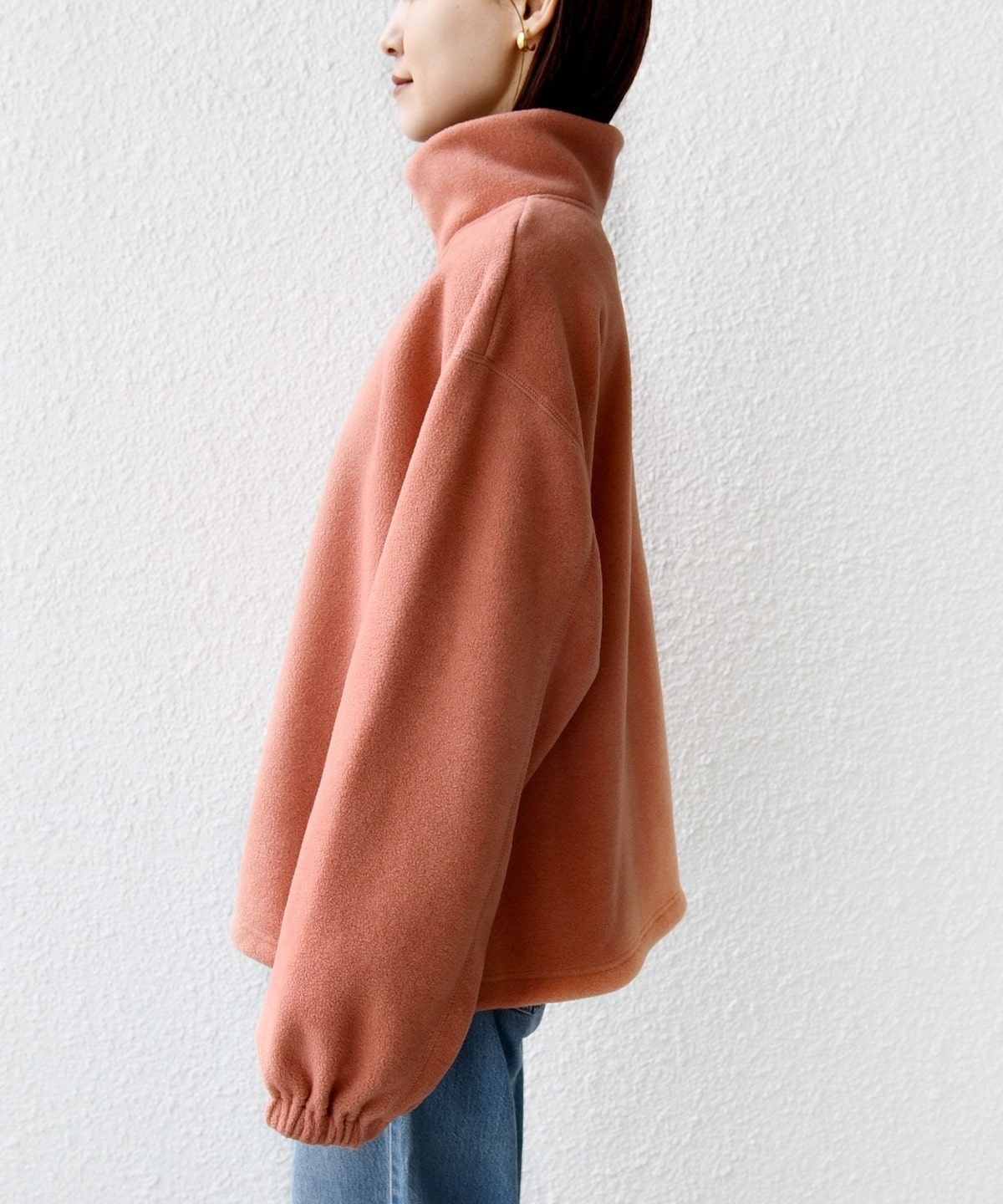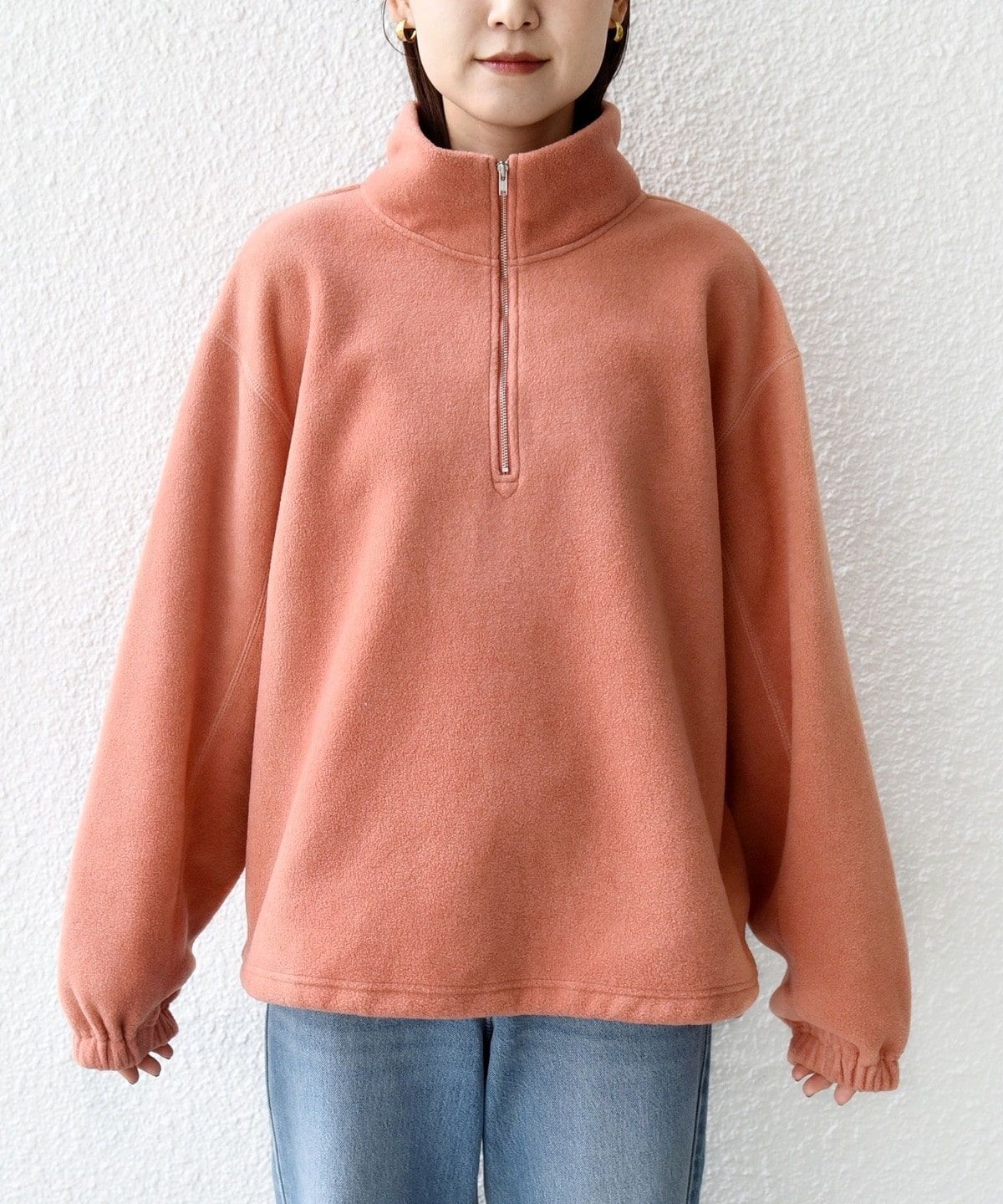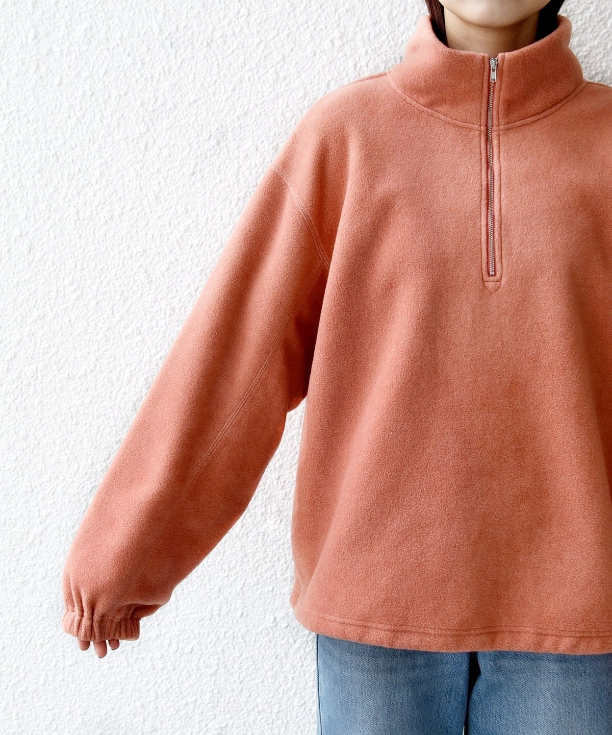 身幅をたっぷりと取り、抜け感のあるゆったりとしたシルエットに仕上げたハーフジッププルオーバー。