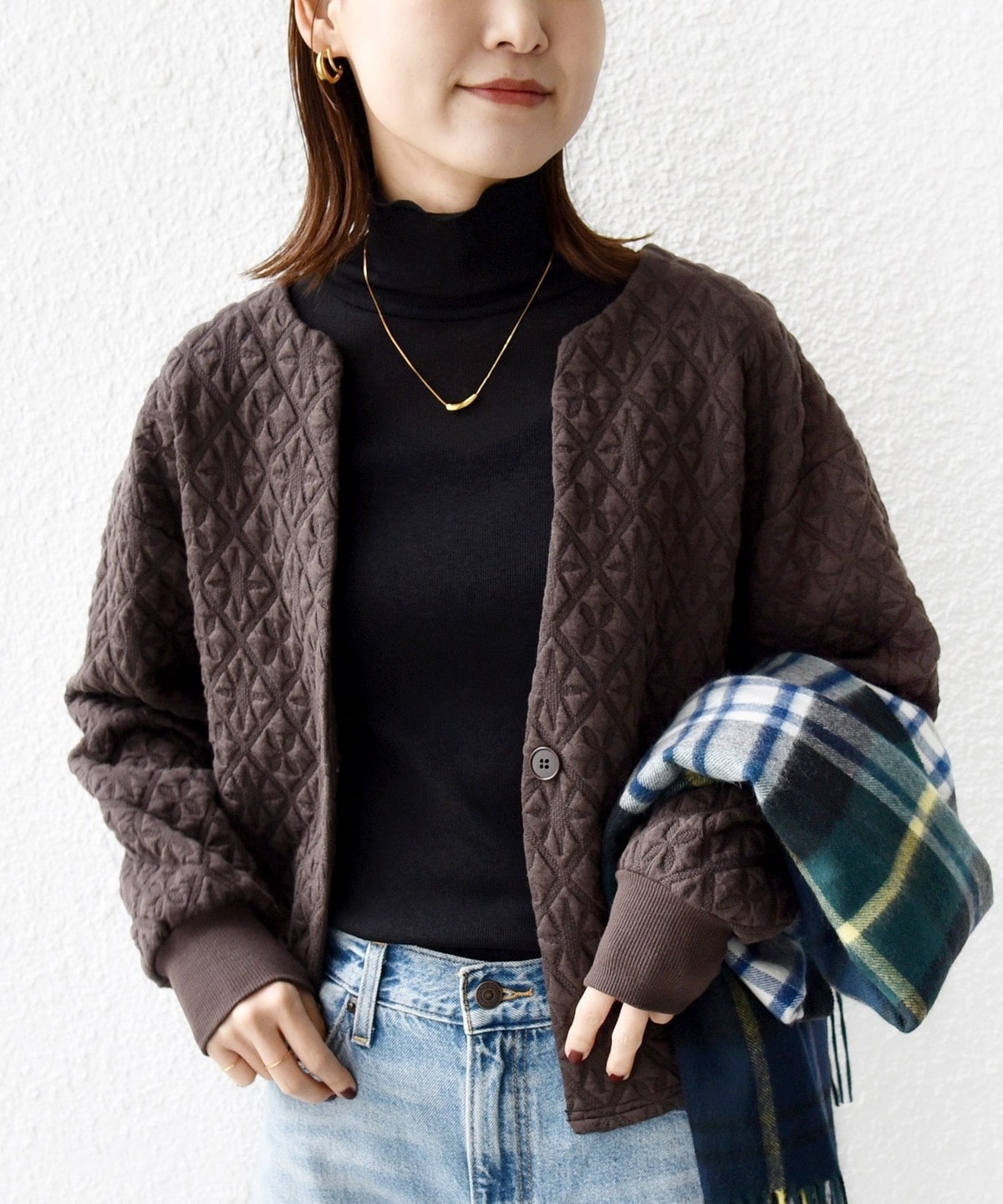 1. 《一部追加予約》【WEB限定】〈手洗い可能〉キルティング ジャカード カーディガン ブラウン