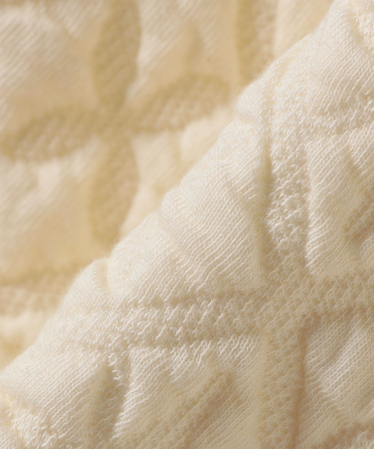 ポコポコとしたキルティングジャカードで、暖かさと着やすさを兼ね備えたカットソー素材です。