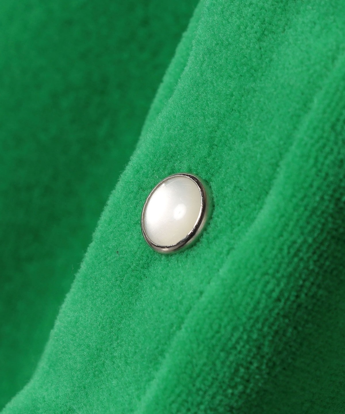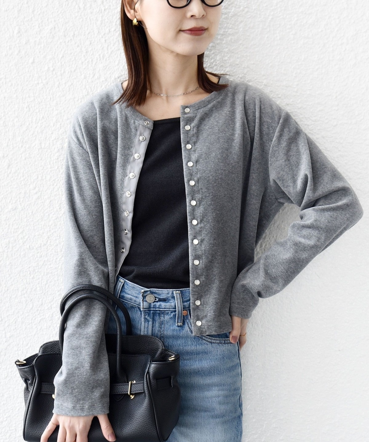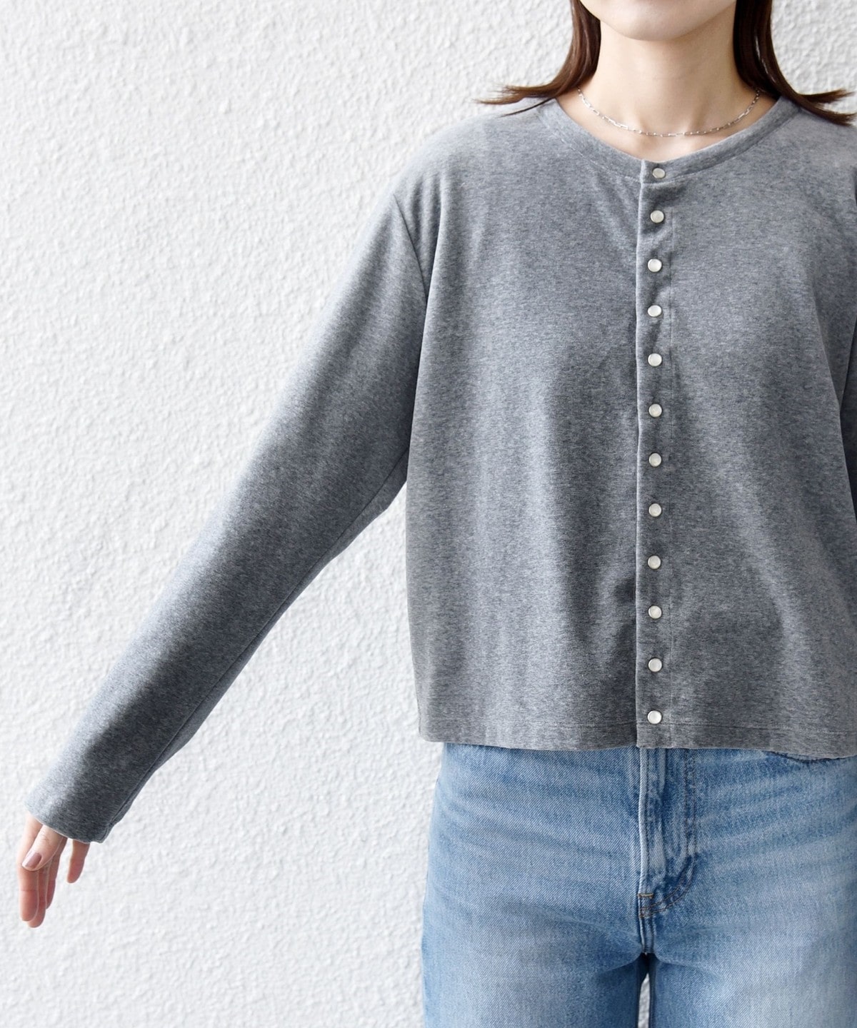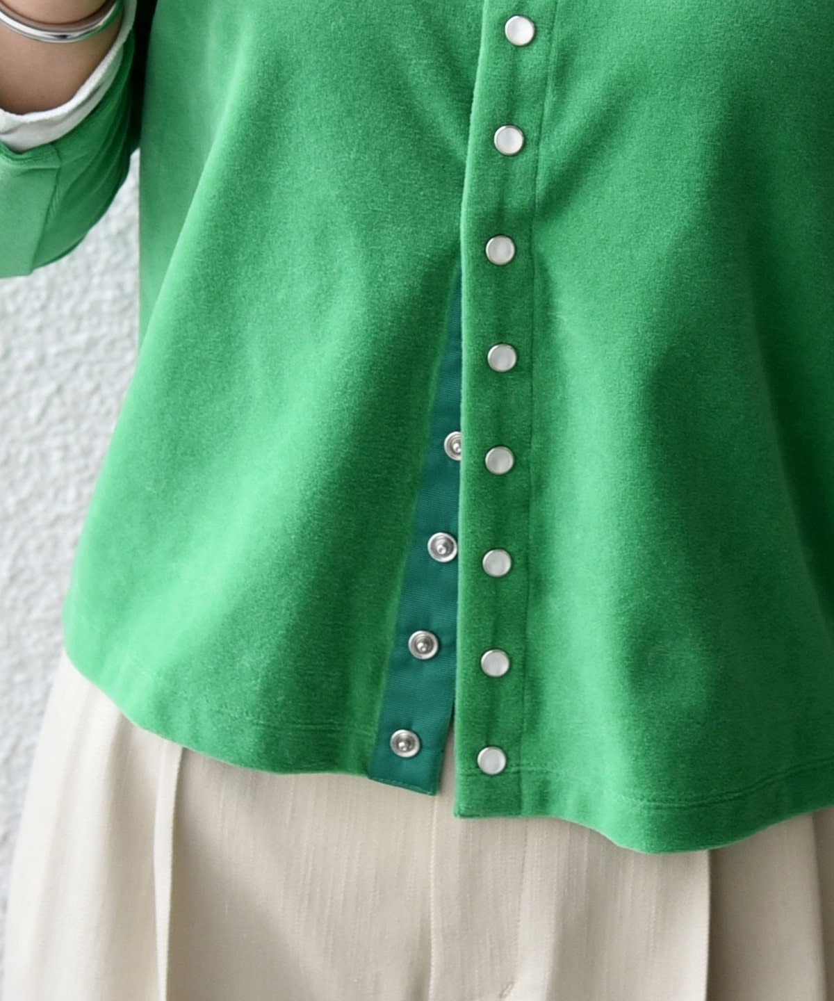 〈手洗い可能〉コットン ベロア パール モチーフ ボタン カーディガン