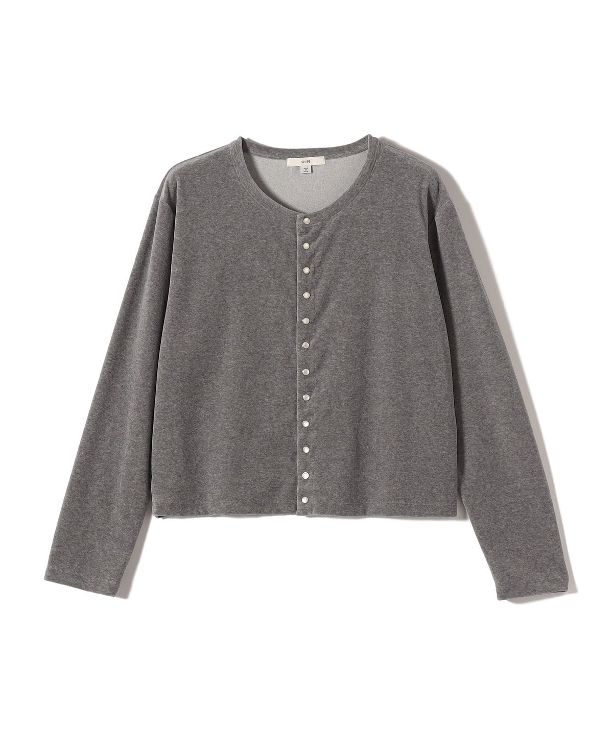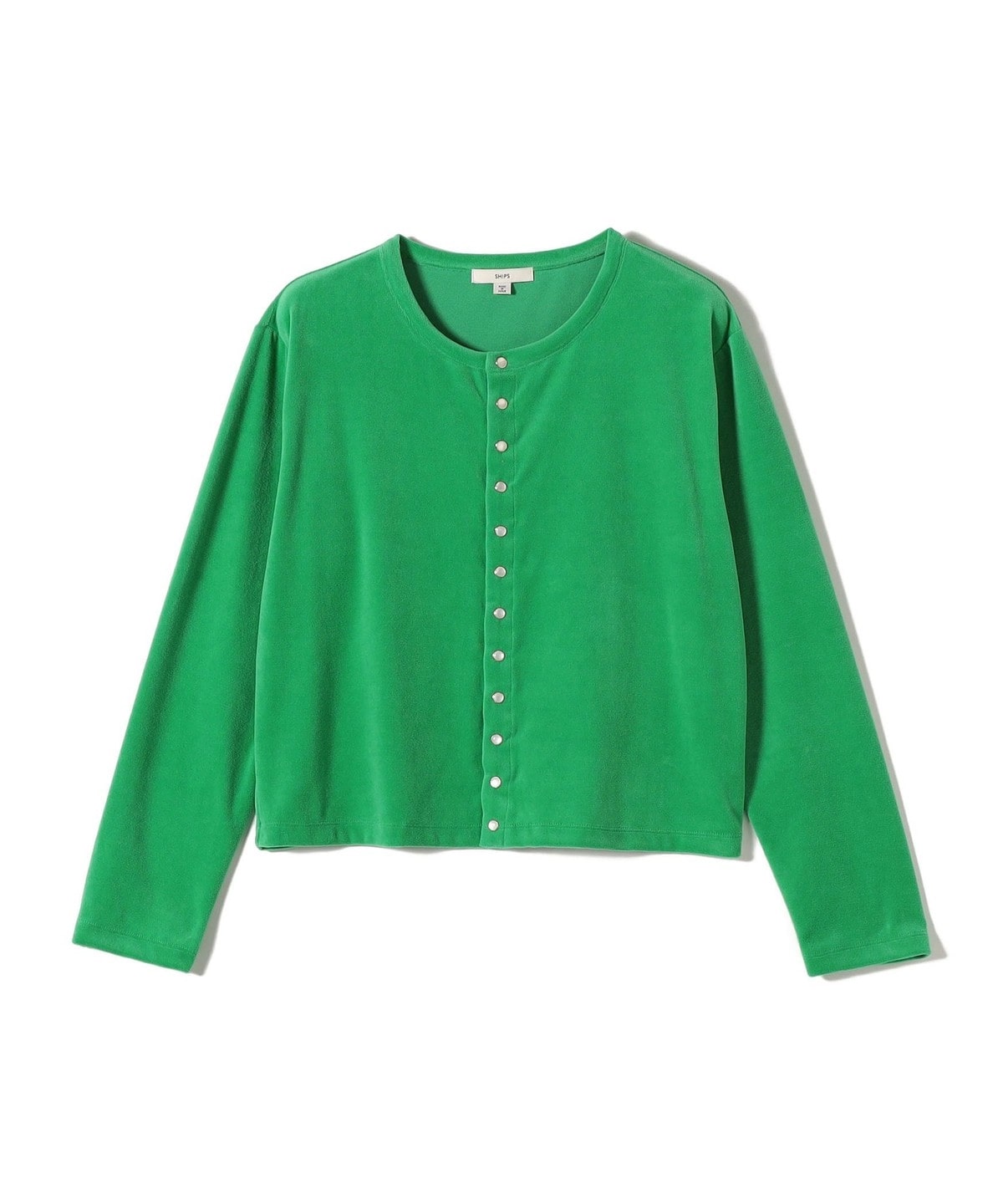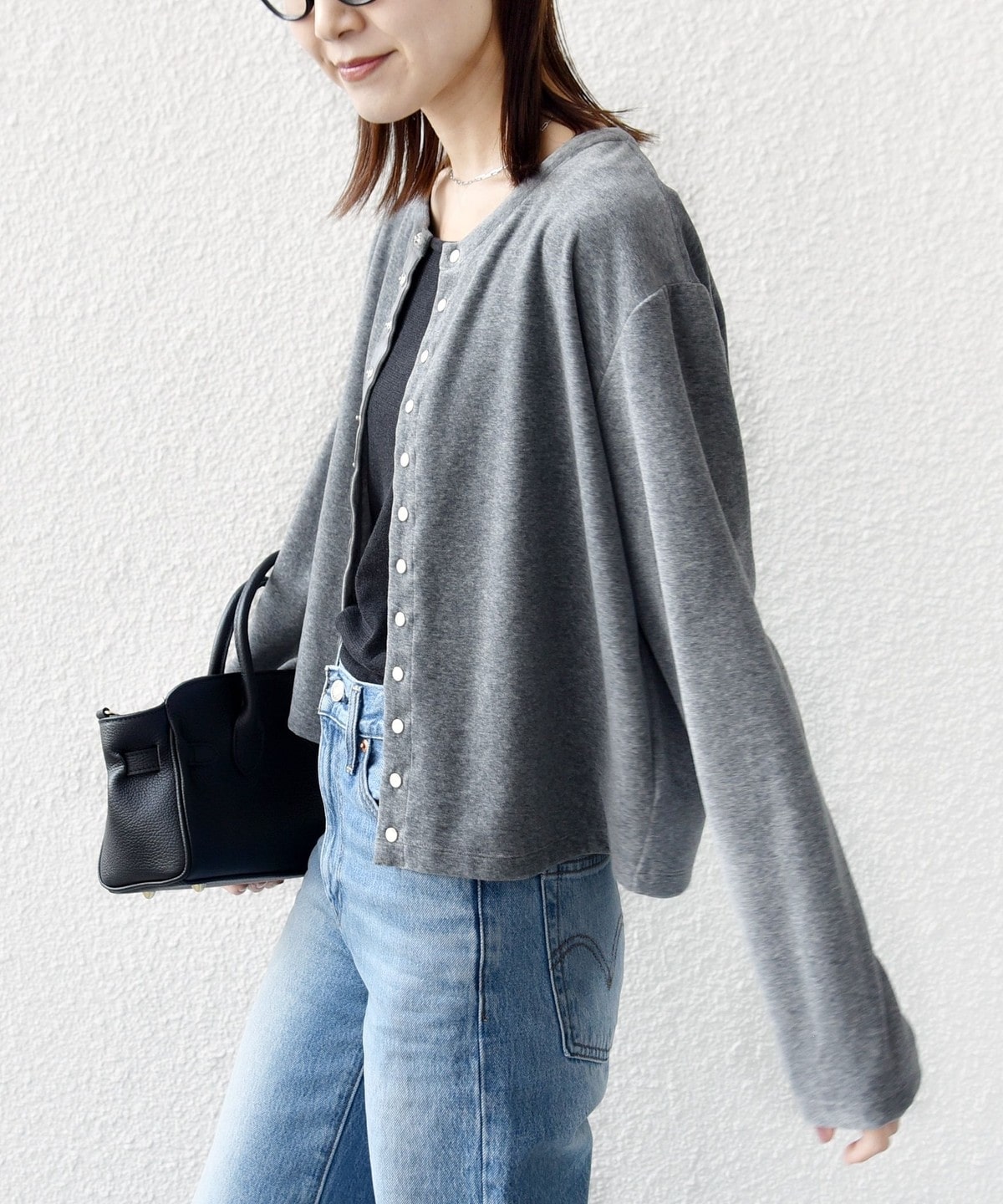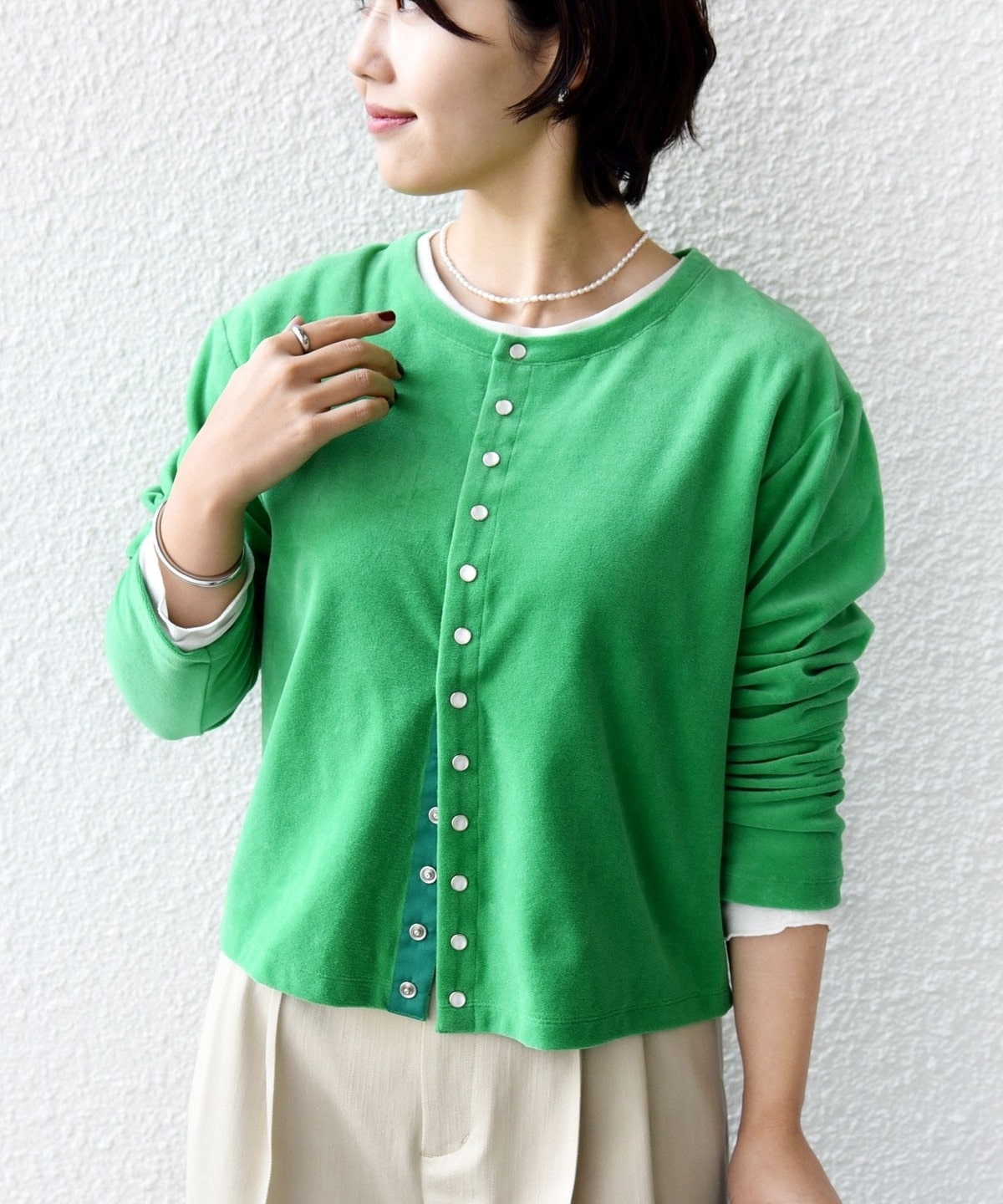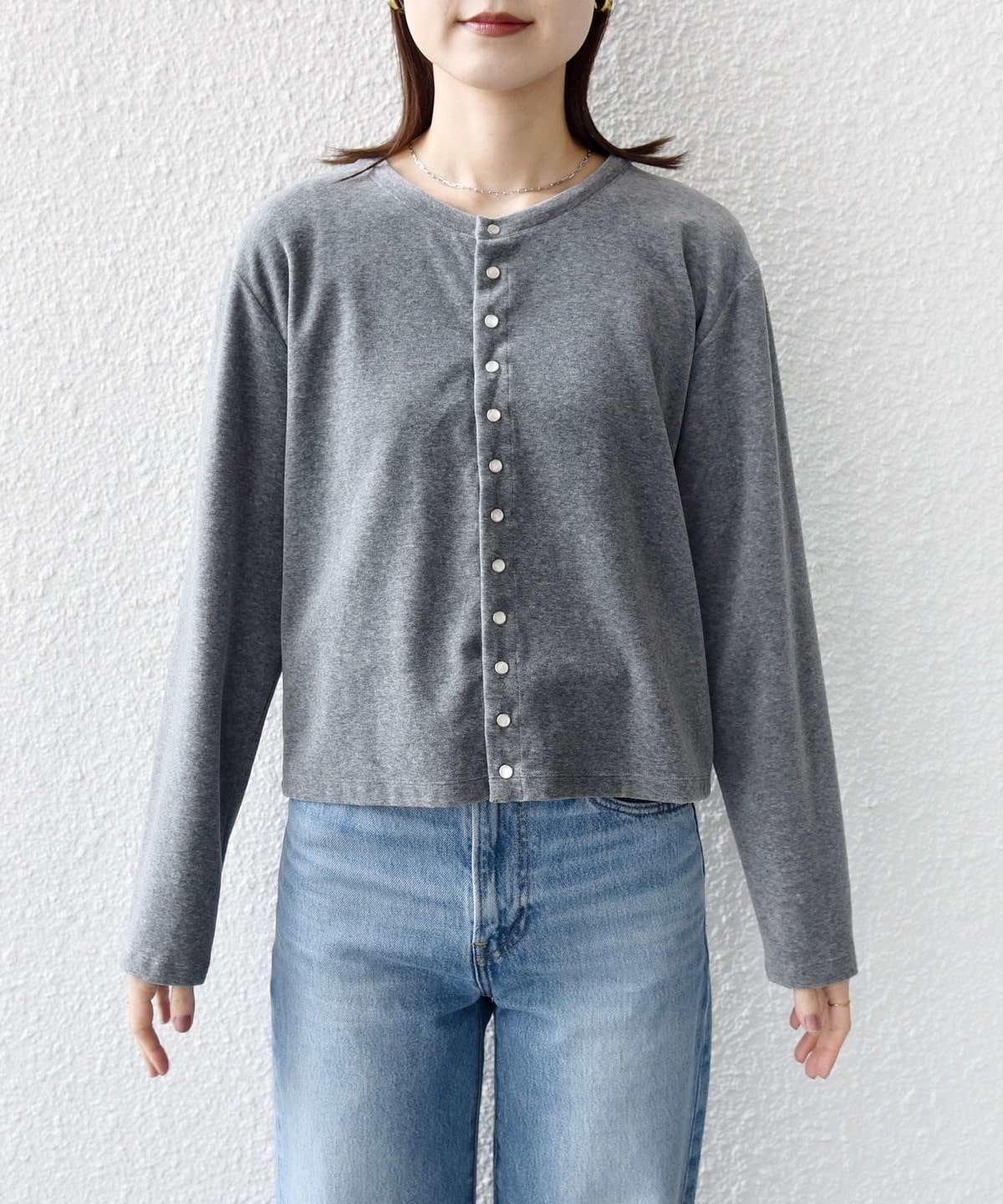 〈手洗い可能〉コットン ベロア パール モチーフ ボタン カーディガン