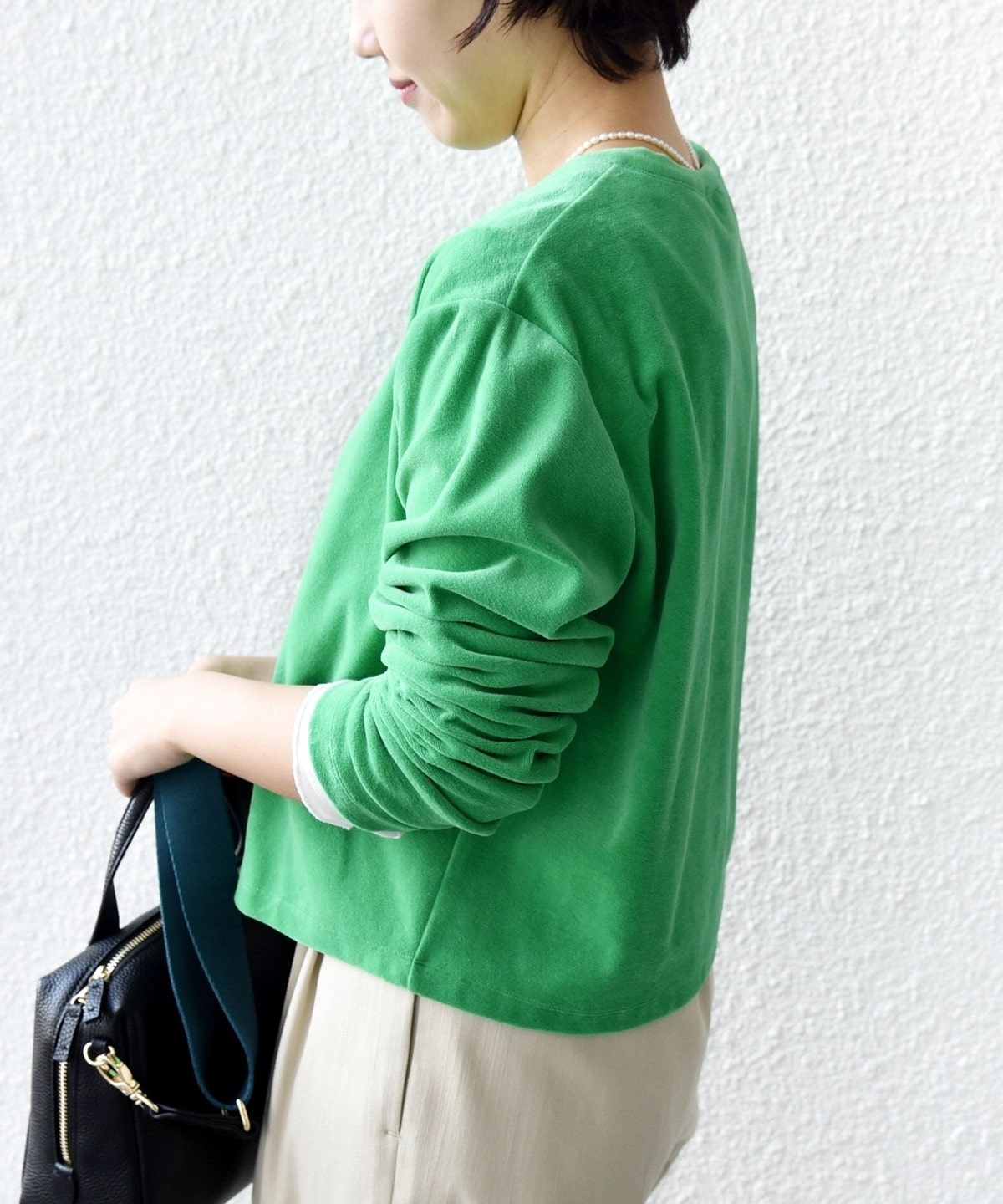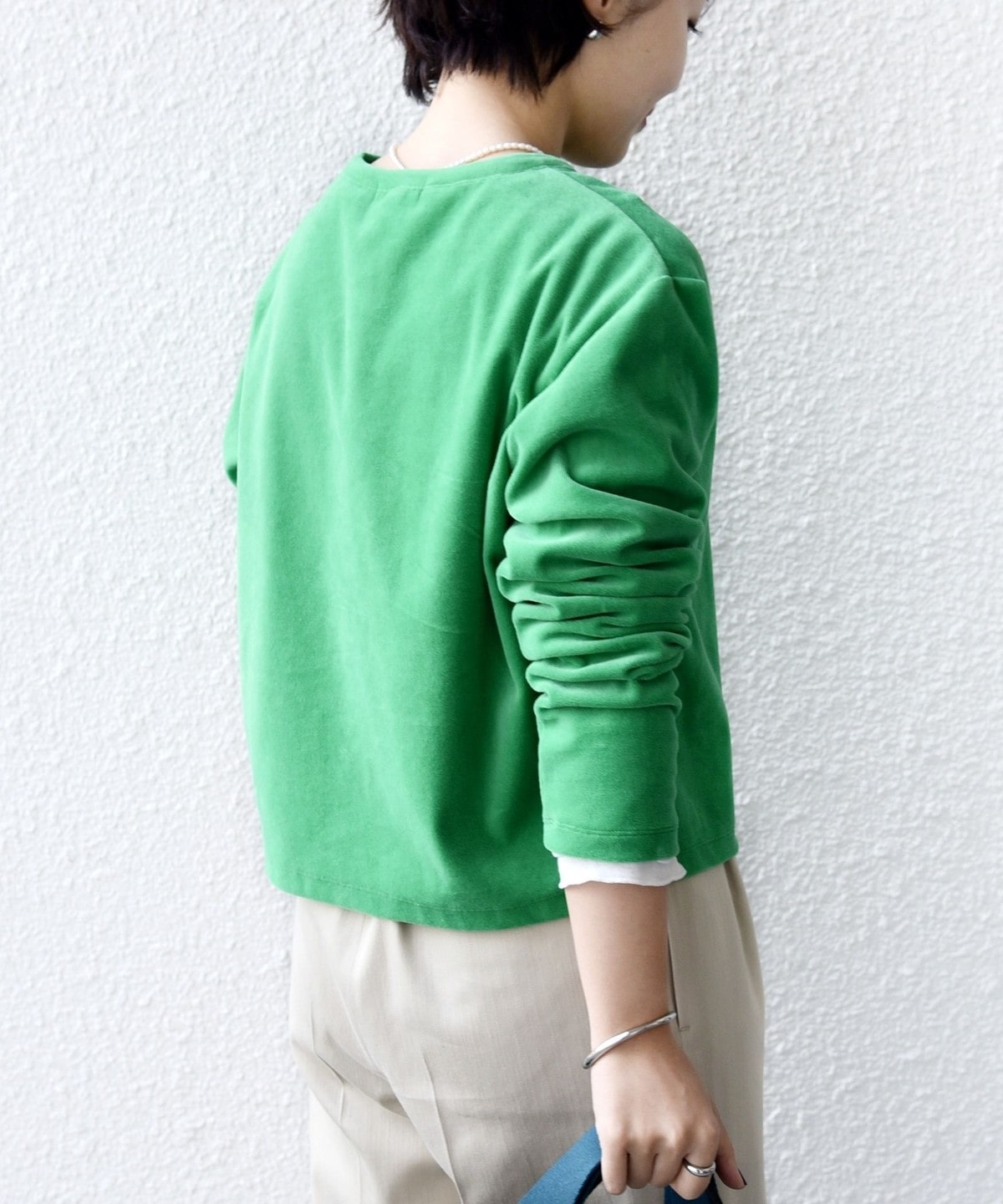 コットン ベロア ボートネック ロング スリーブ プルオーバー(品番:312-01-1179)