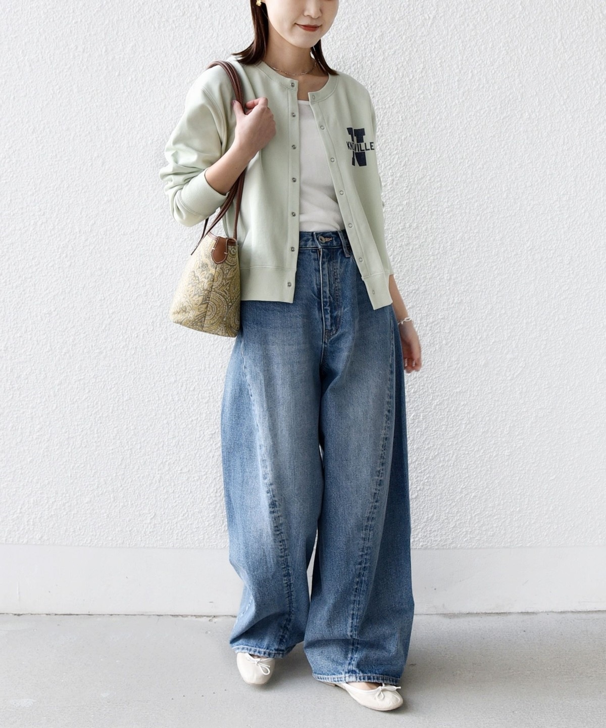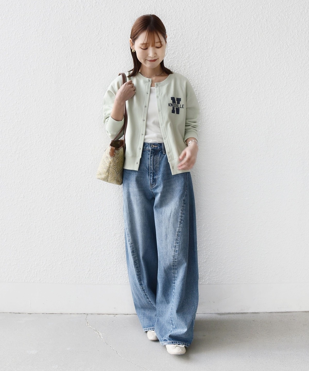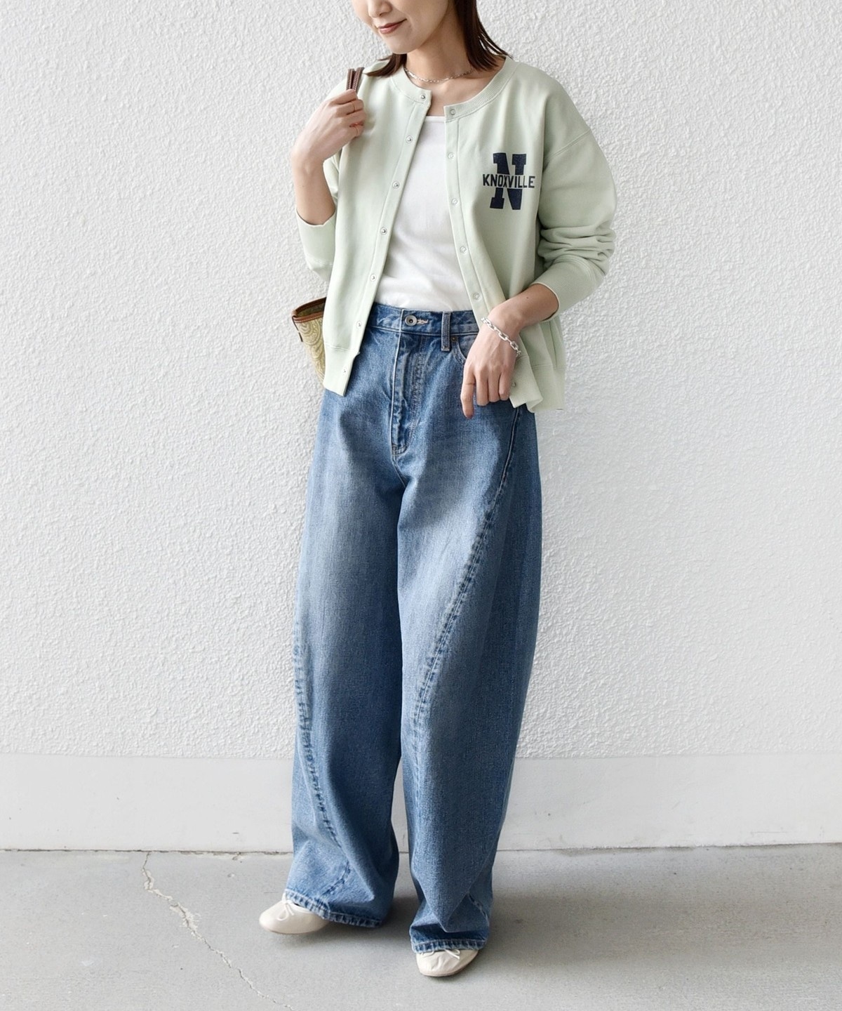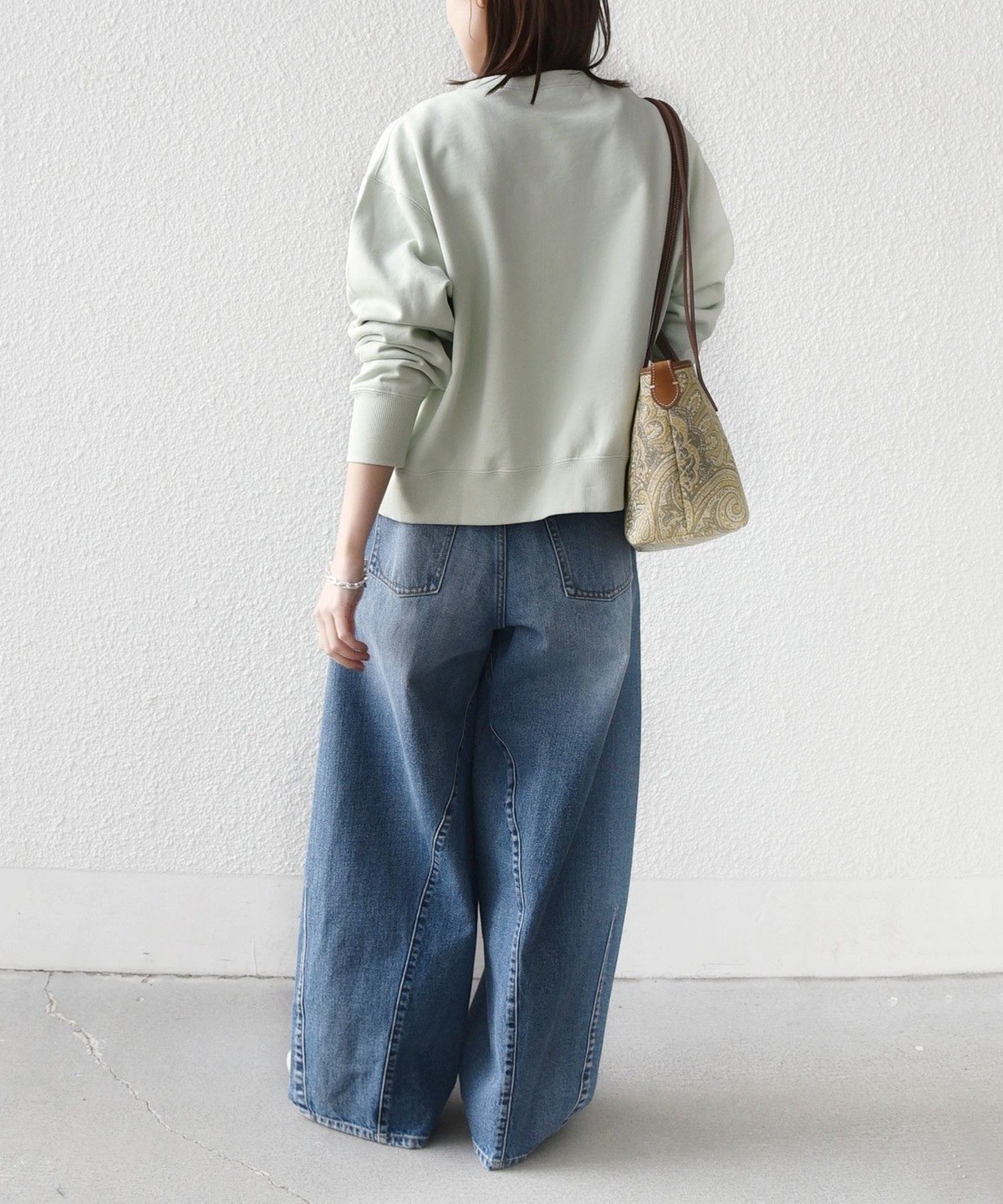 加工法は古着風にするなら「顔料染め(ピグメント)」を選びがちですが、あえて「反応染め」をセレクトし、きれいめなヴィンテージ感を演出しました。