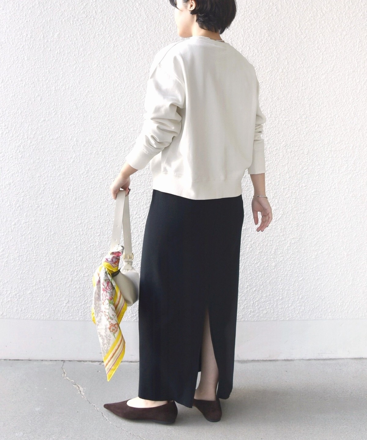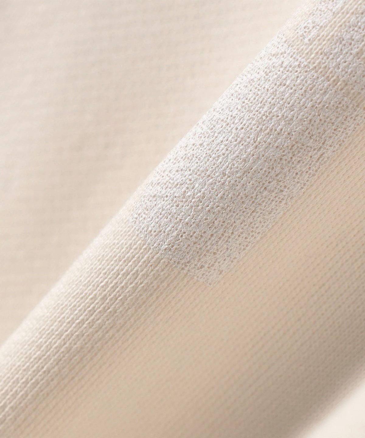 ドライな質感の糸を使用しており、薄すぎず厚すぎない「スタンダードなウェイト」の素材です。