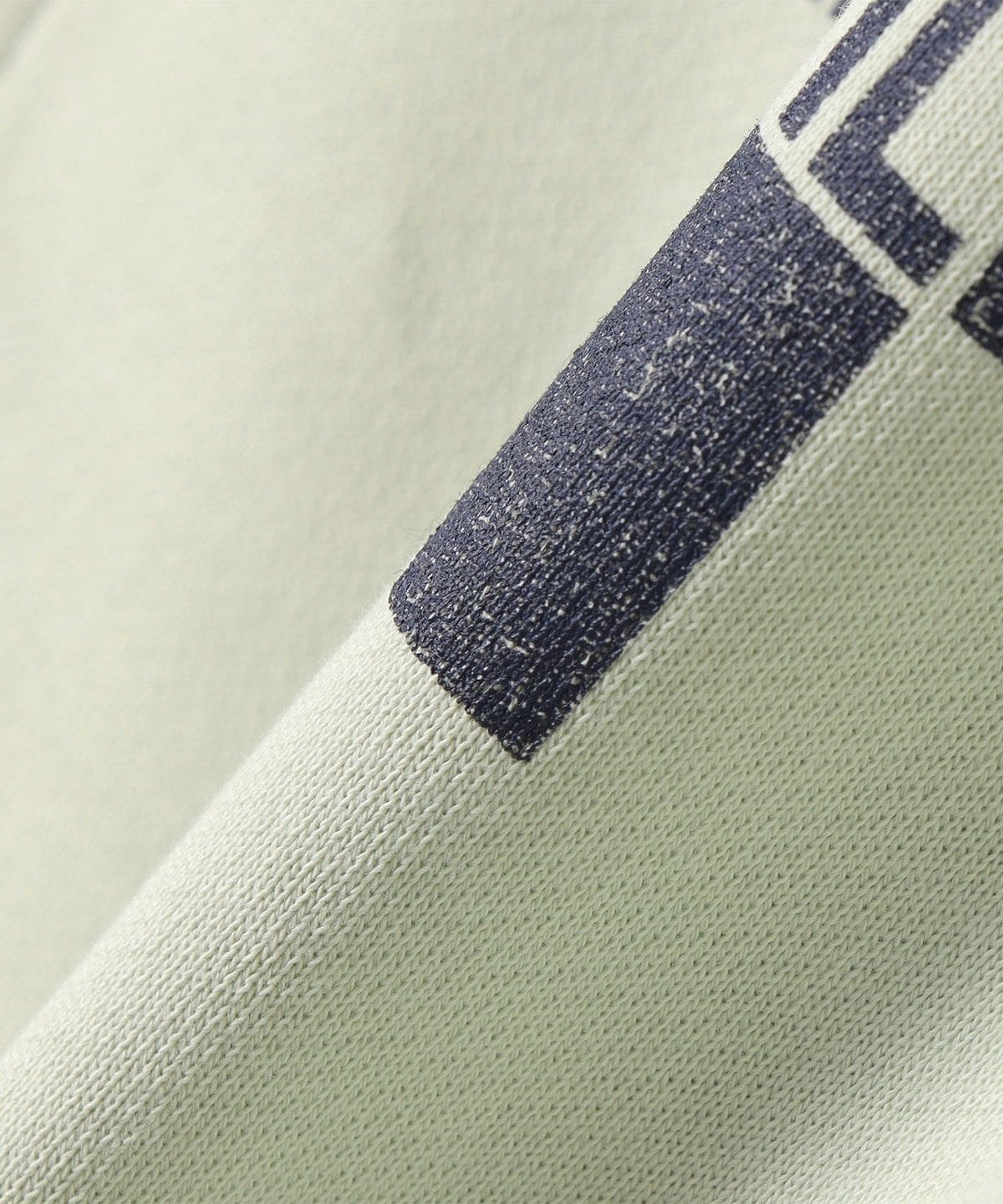 ロゴプリントとボディの加工感がポイントになり、一枚で着映えるデザインです◎
