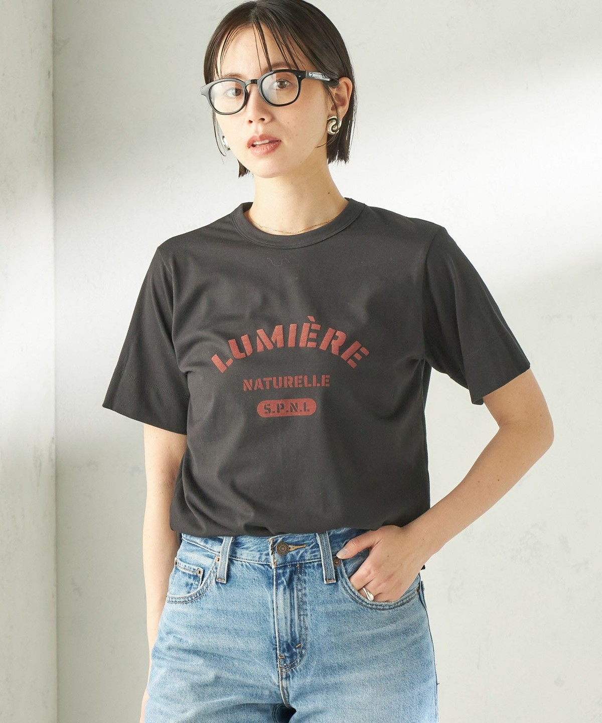 SHIPS Primary Navy Label:LUMIERE フロッキー プリント TEE