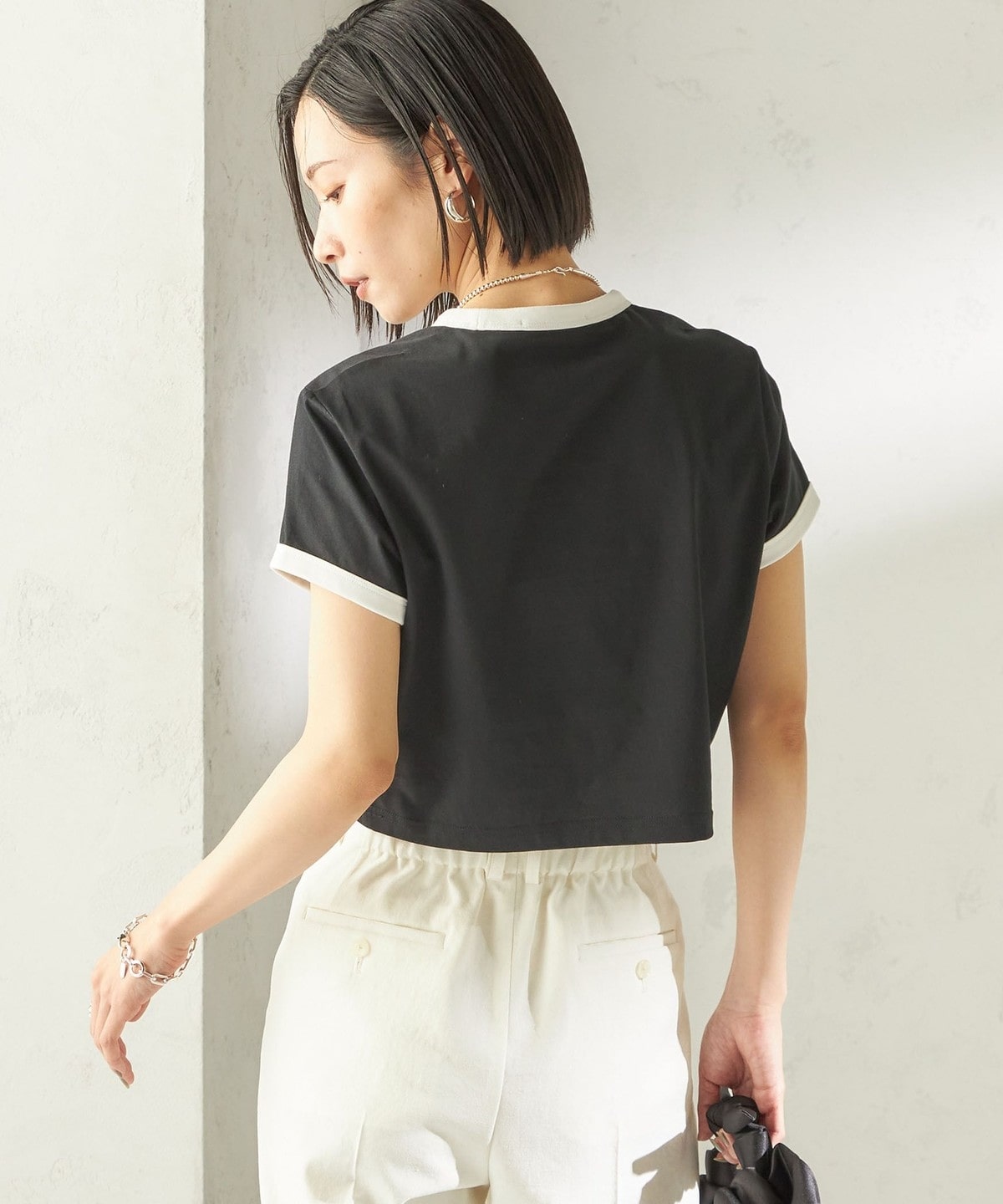 襟元・袖口に施したパイピング&クロップ丈が新鮮なリンガーTEEが登場!