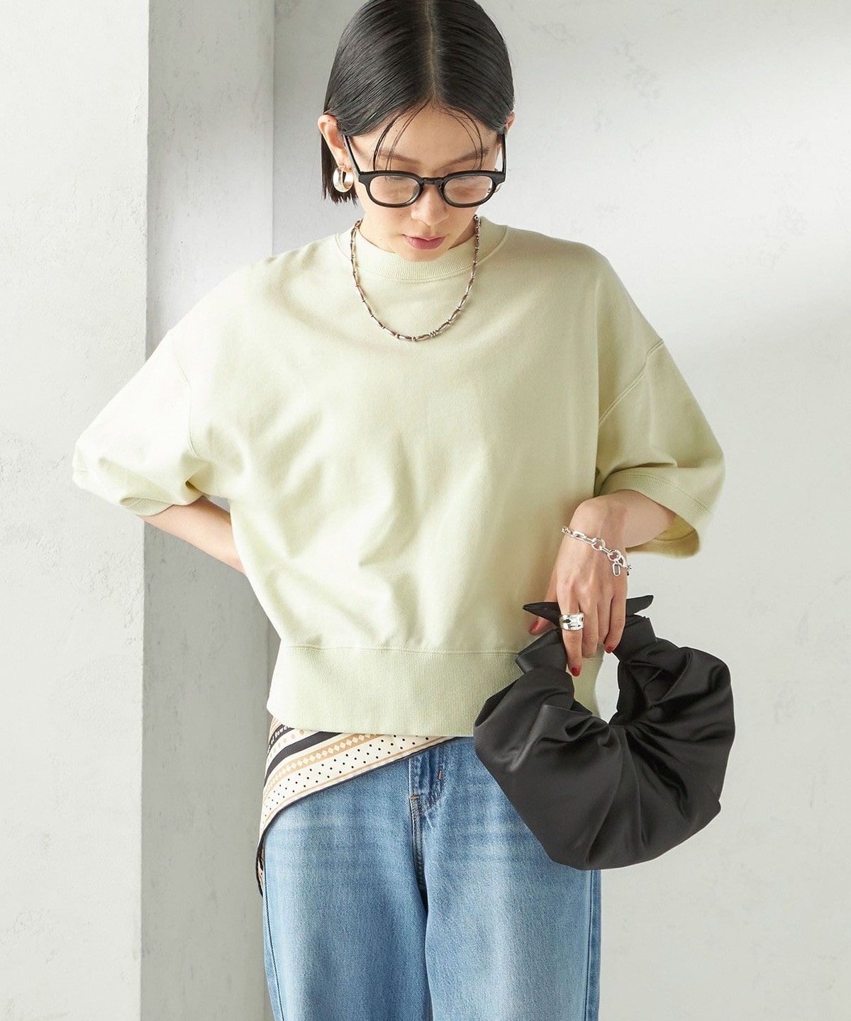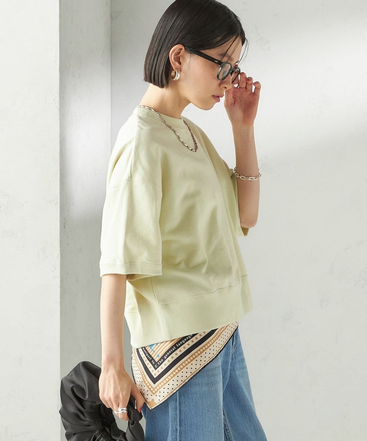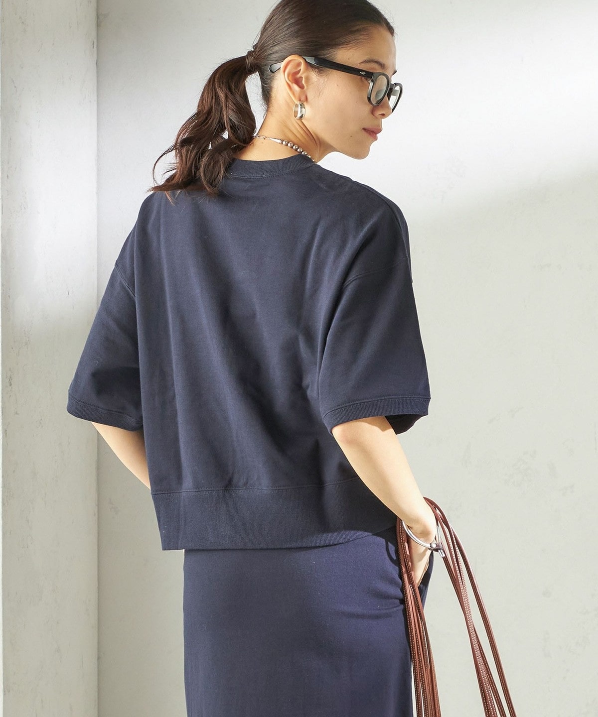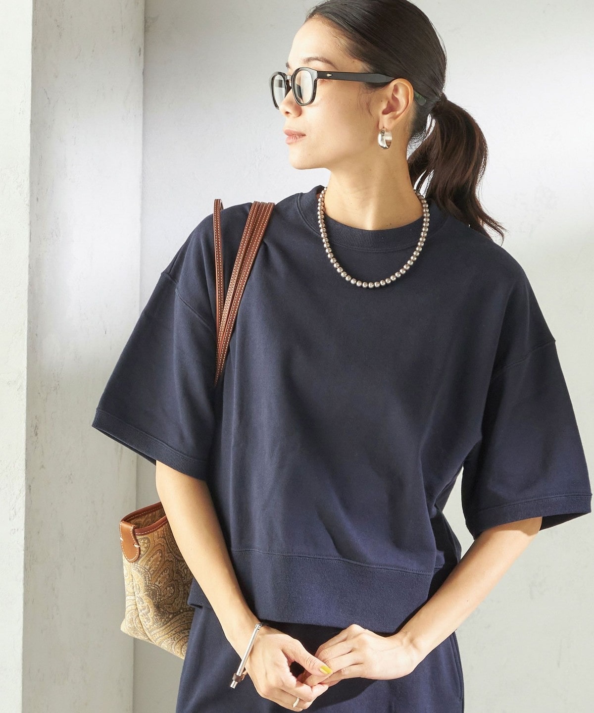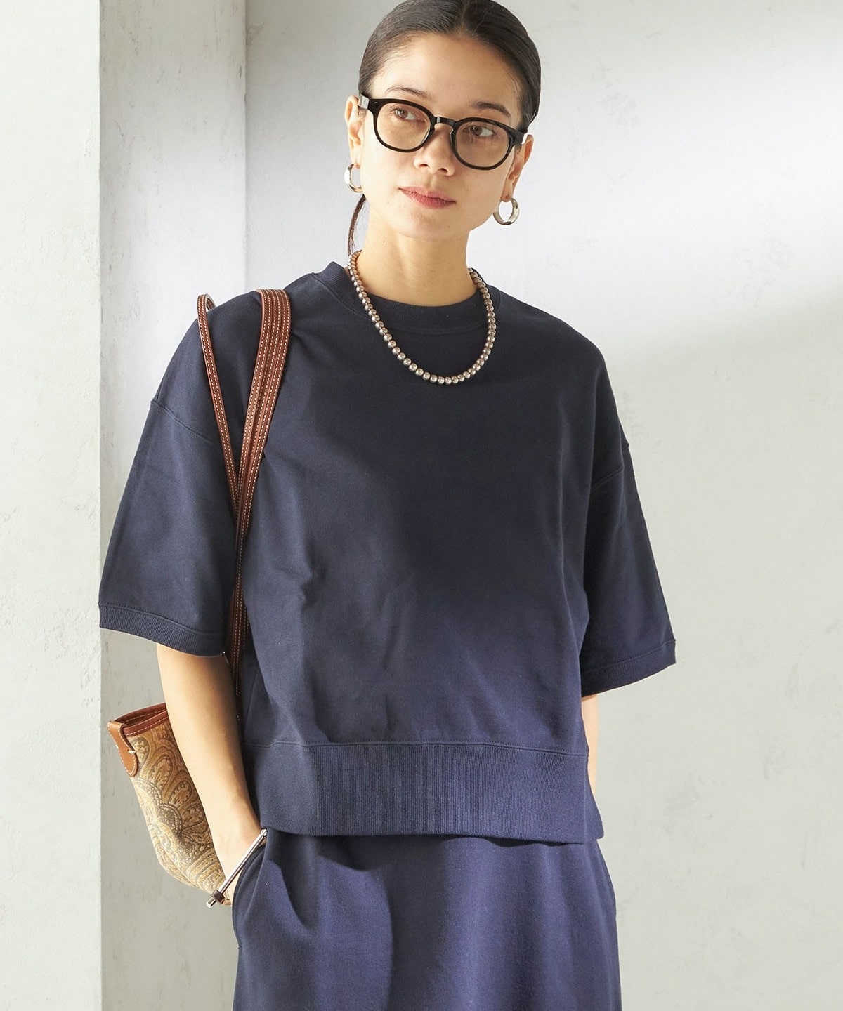 カジュアルすぎない生地感でスタイリッシュな雰囲気を生み出すスウェット